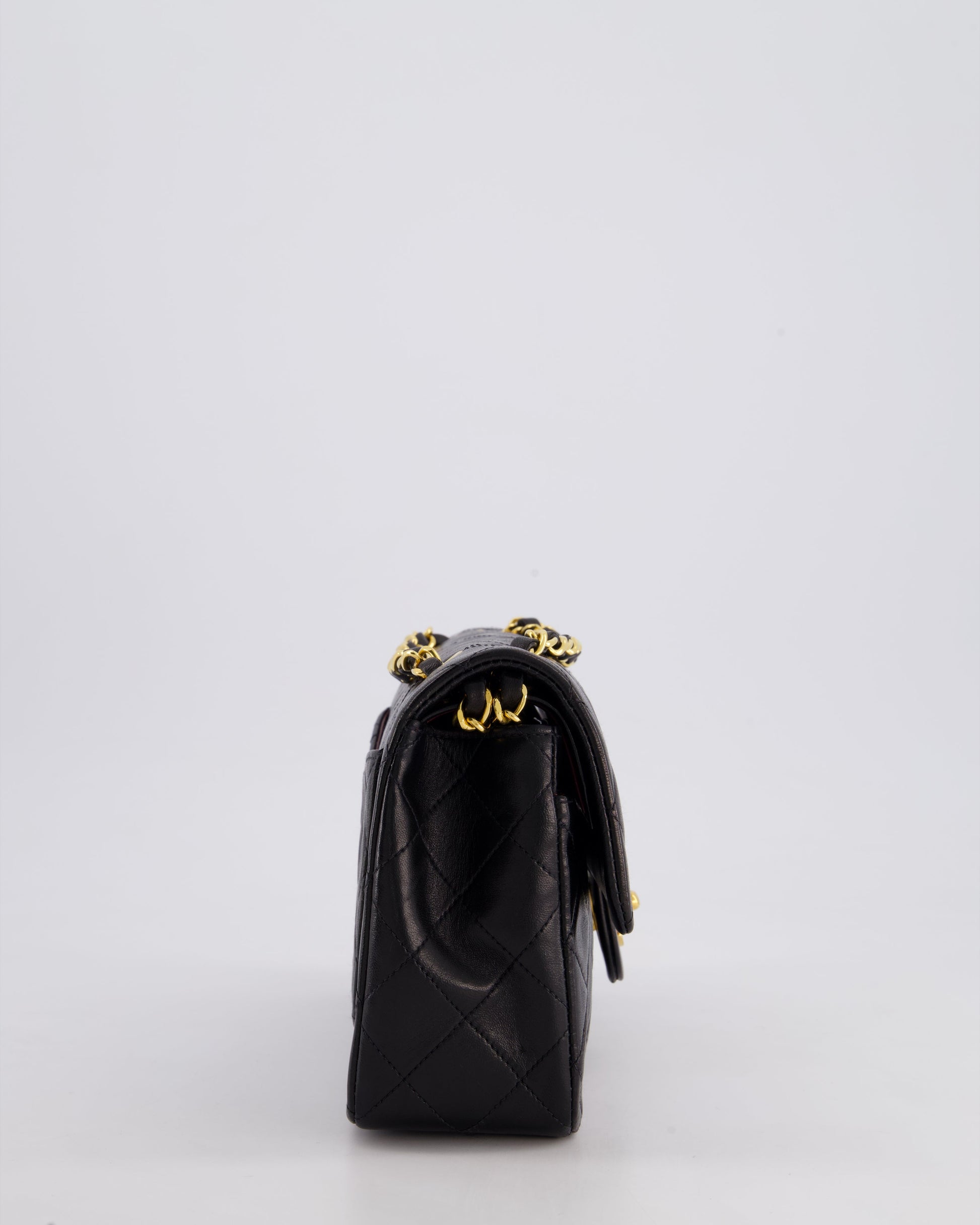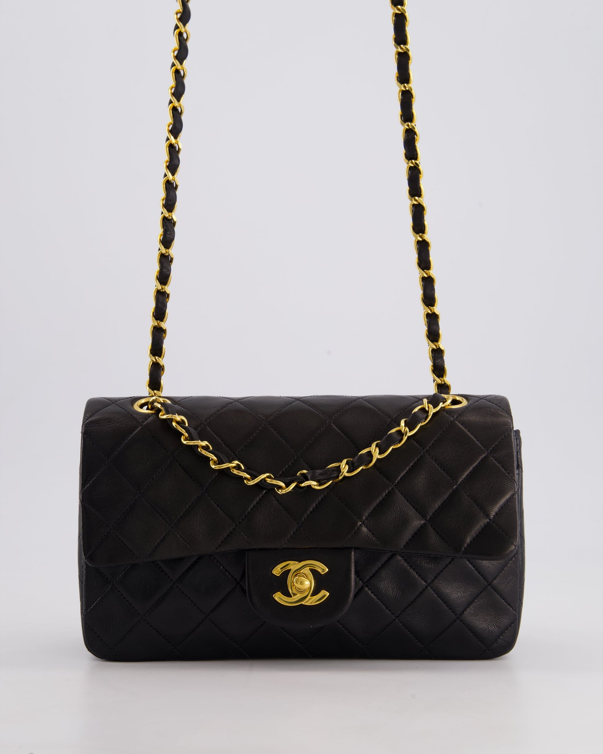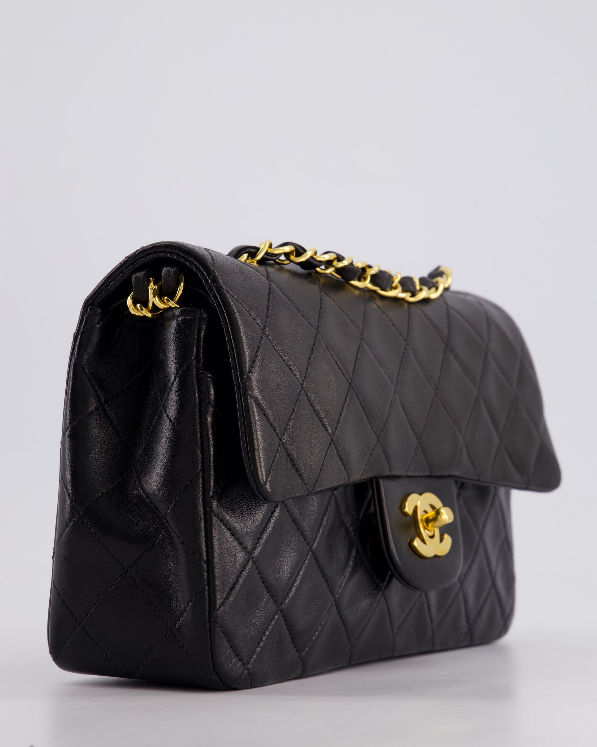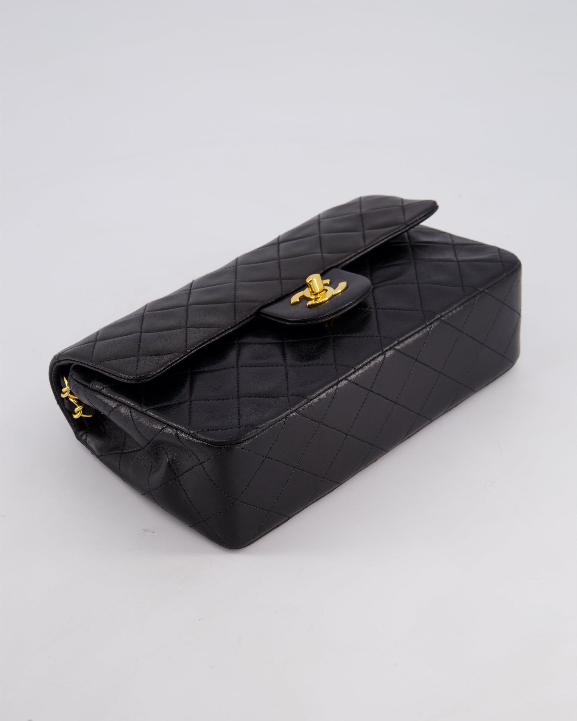 Chanel Vintage Black Medium Classic Double Flap Bag in Lambskin Leather with 24k Gold Hardware