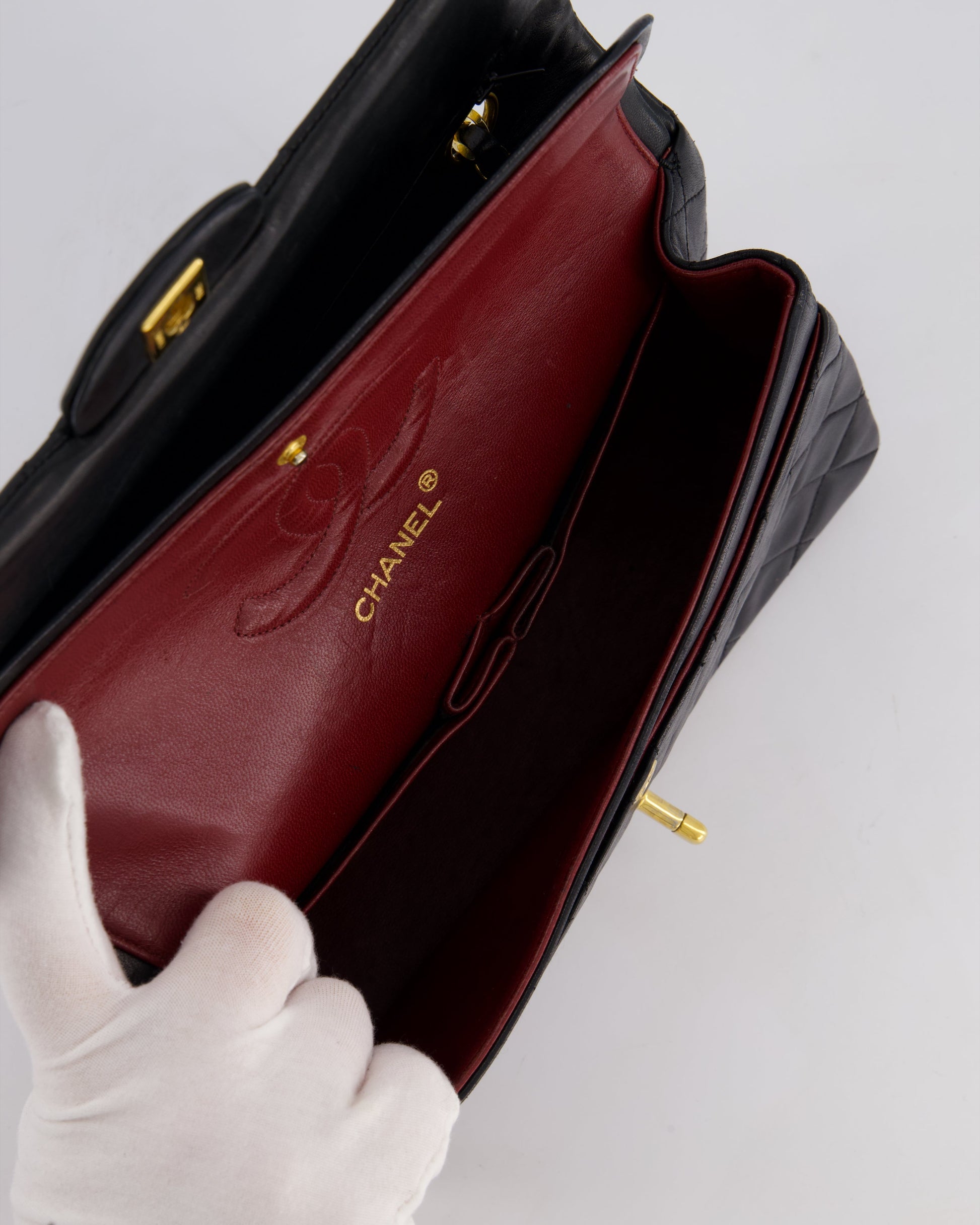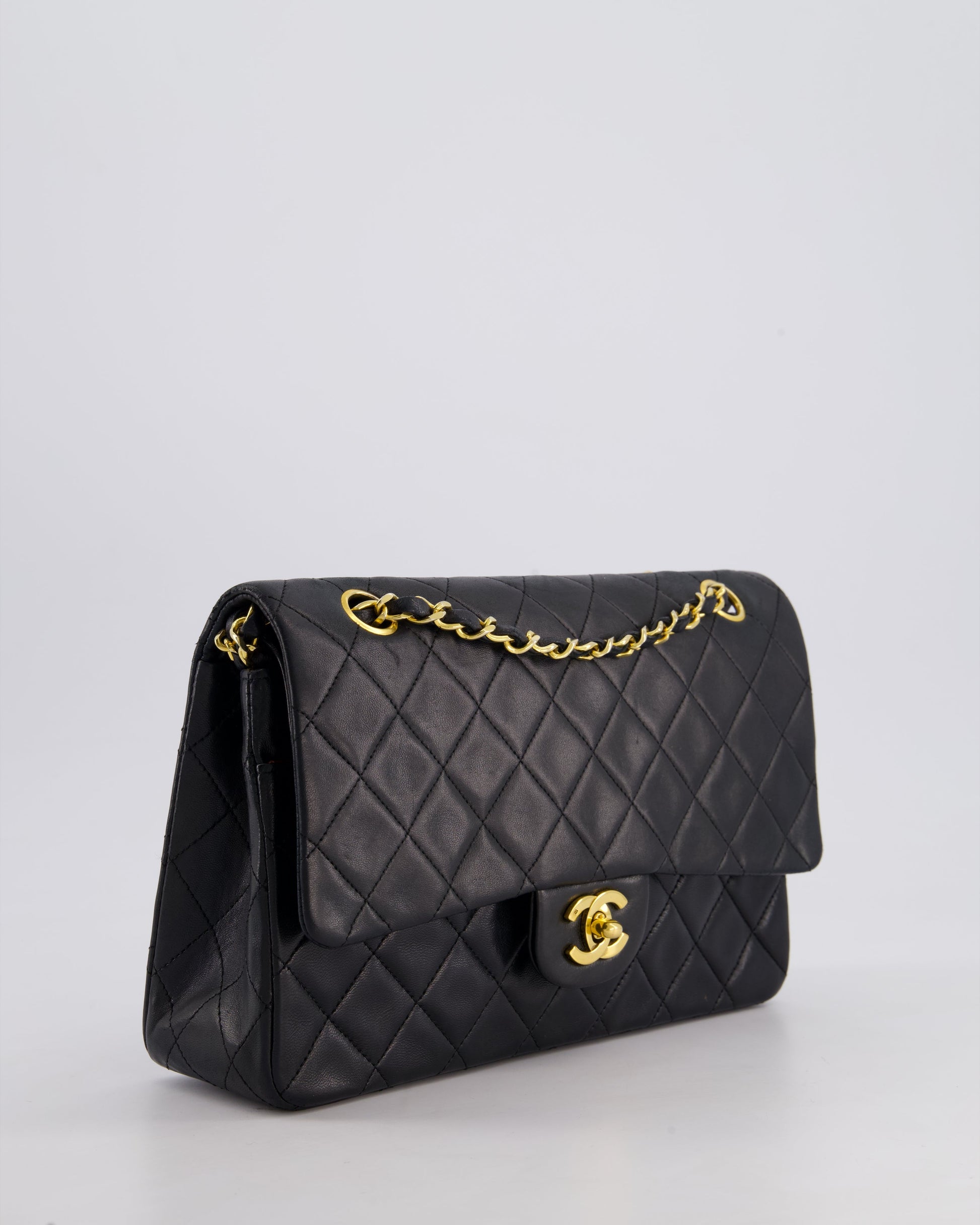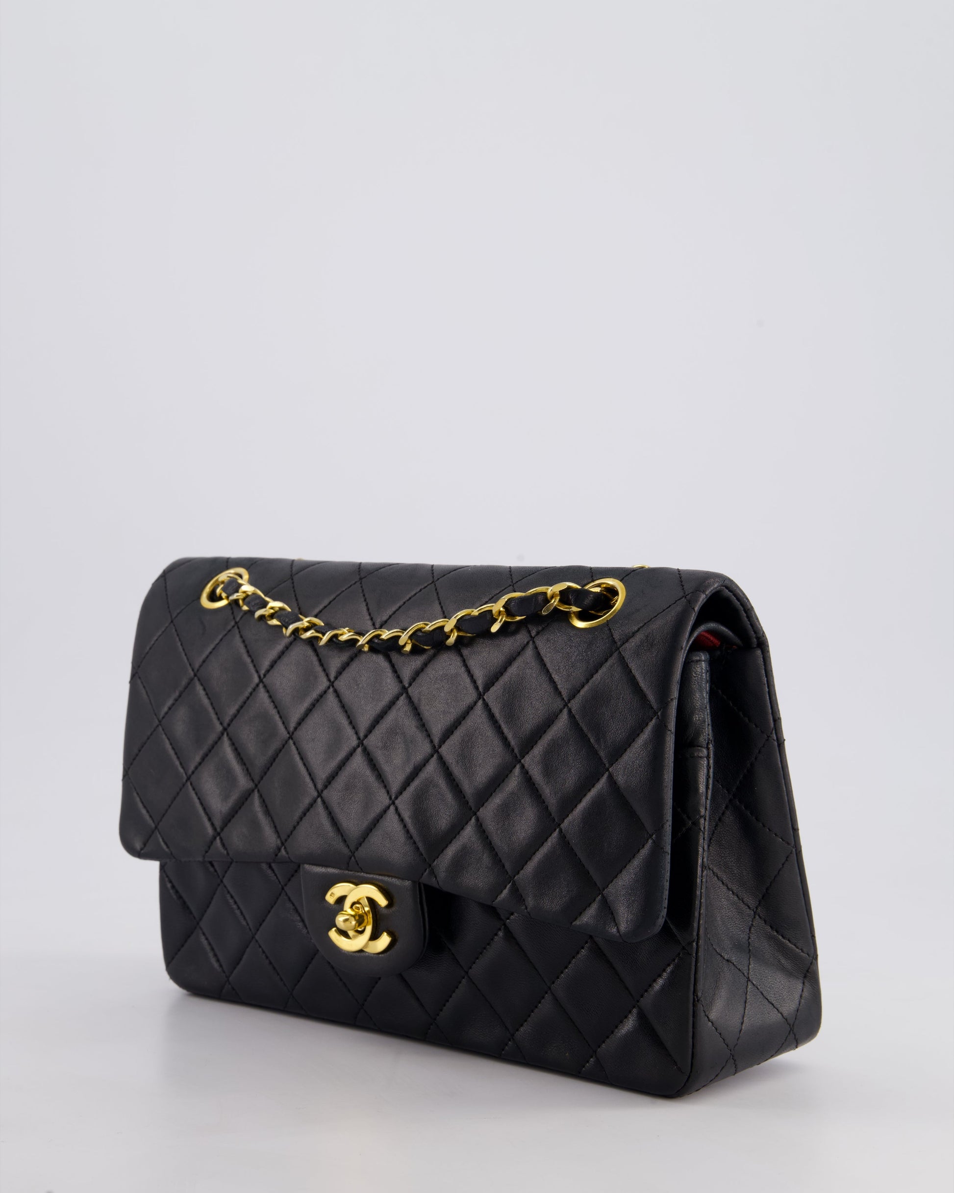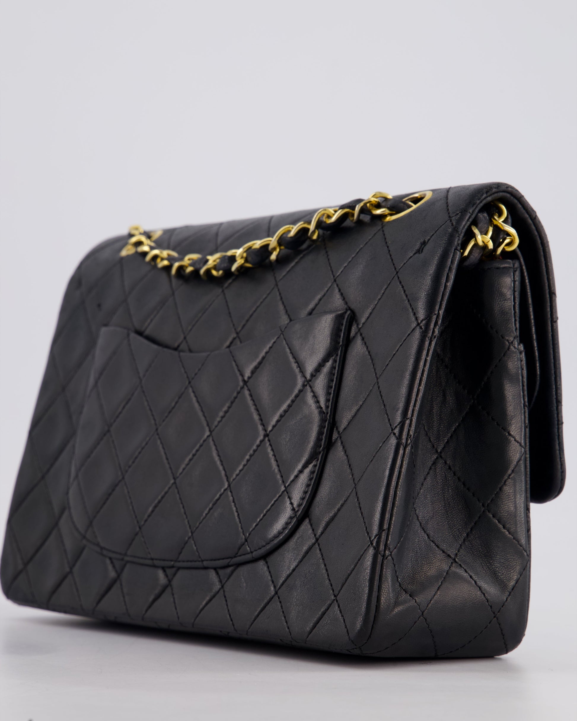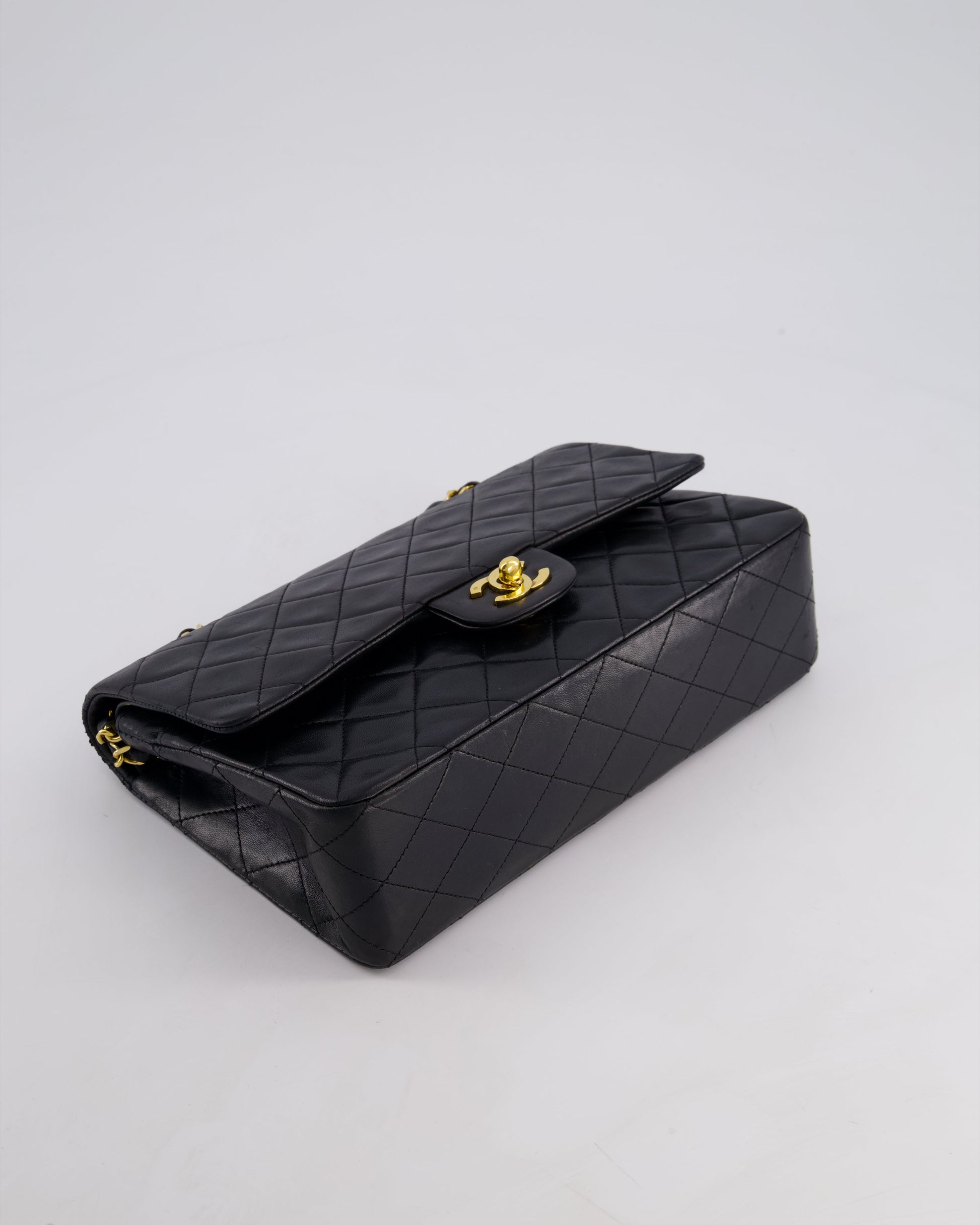 Chanel Vintage Black Medium Classic Double Flap Bag in Lambskin Leather with 24k Gold Hardware