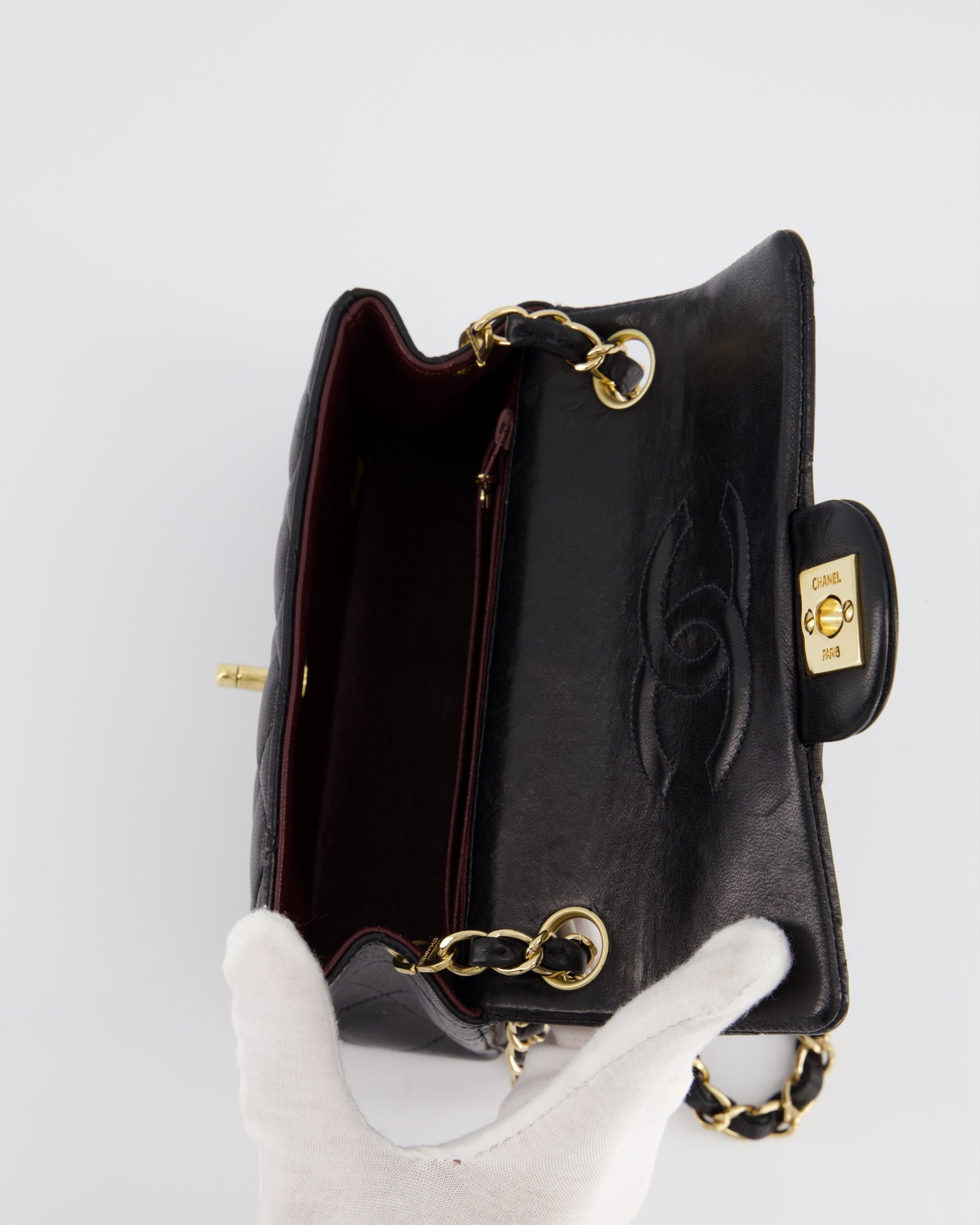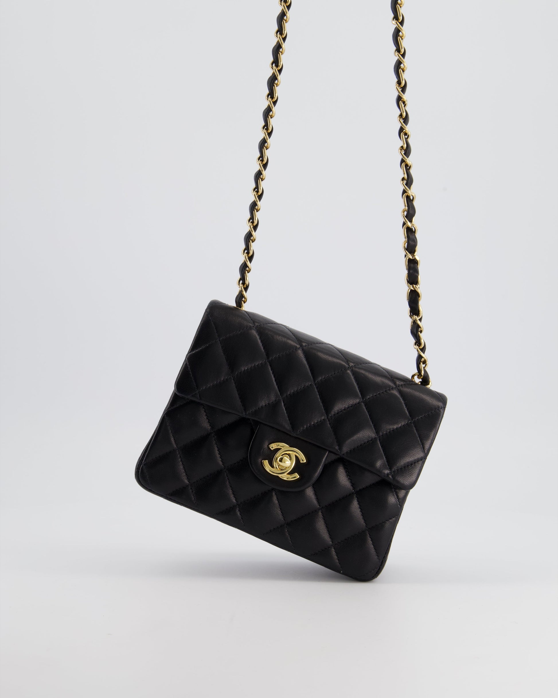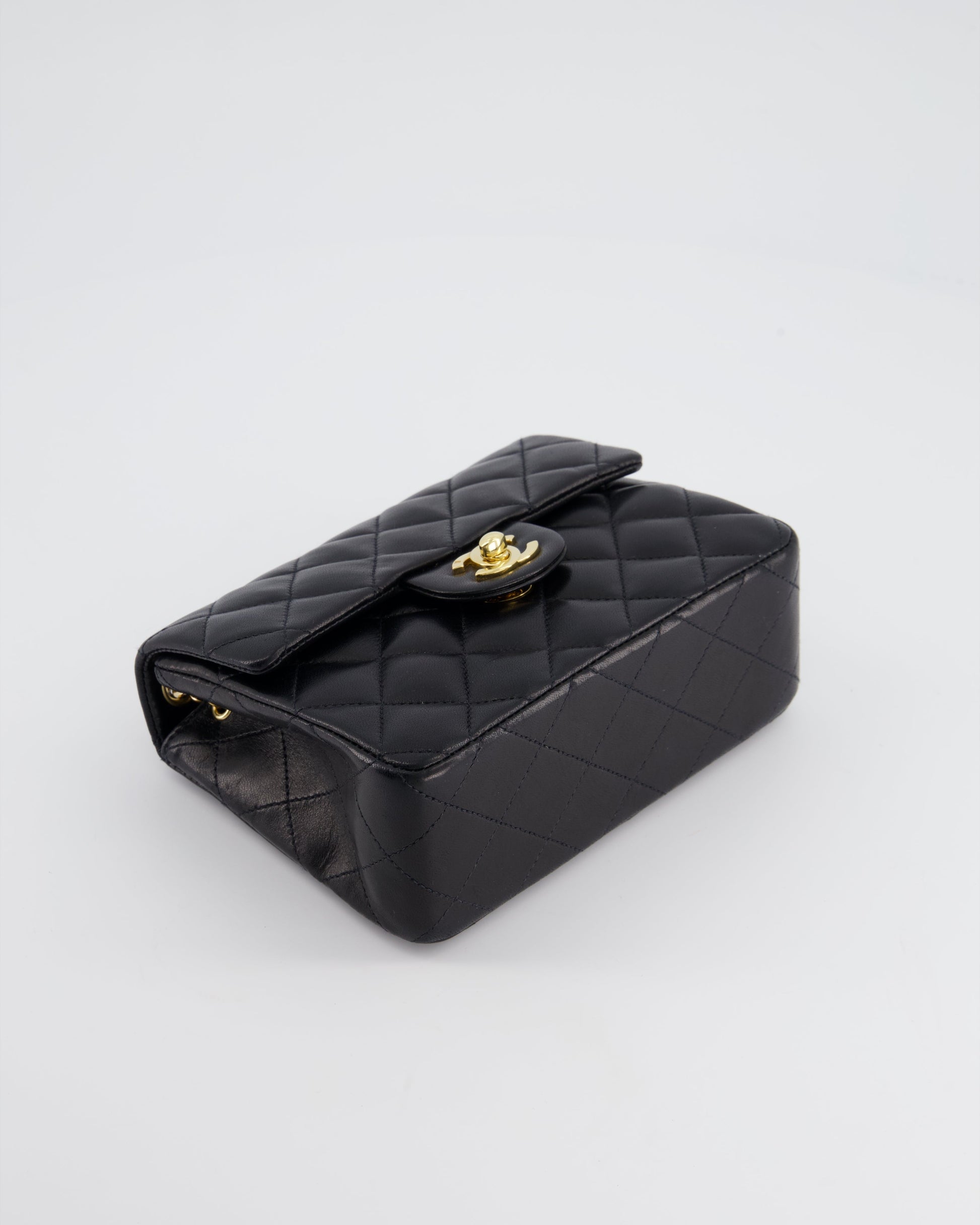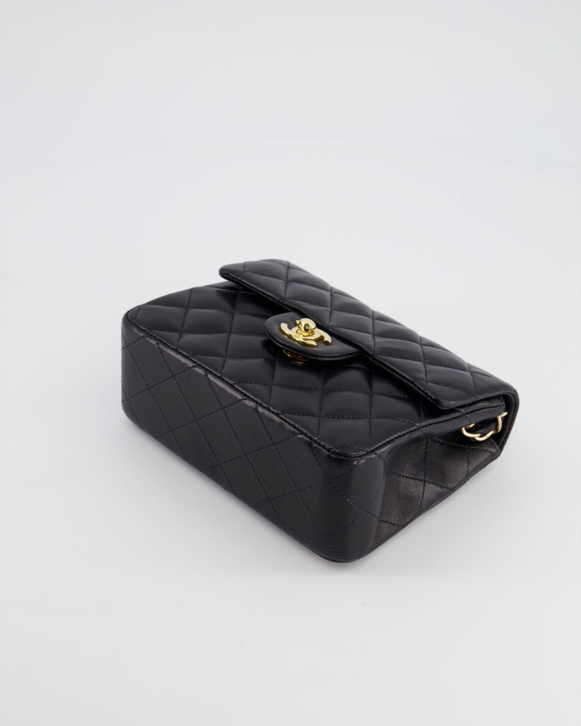 Chanel Vintage Black Mini Square Bag in Lambskin Leather with 24k Gold Hardware
