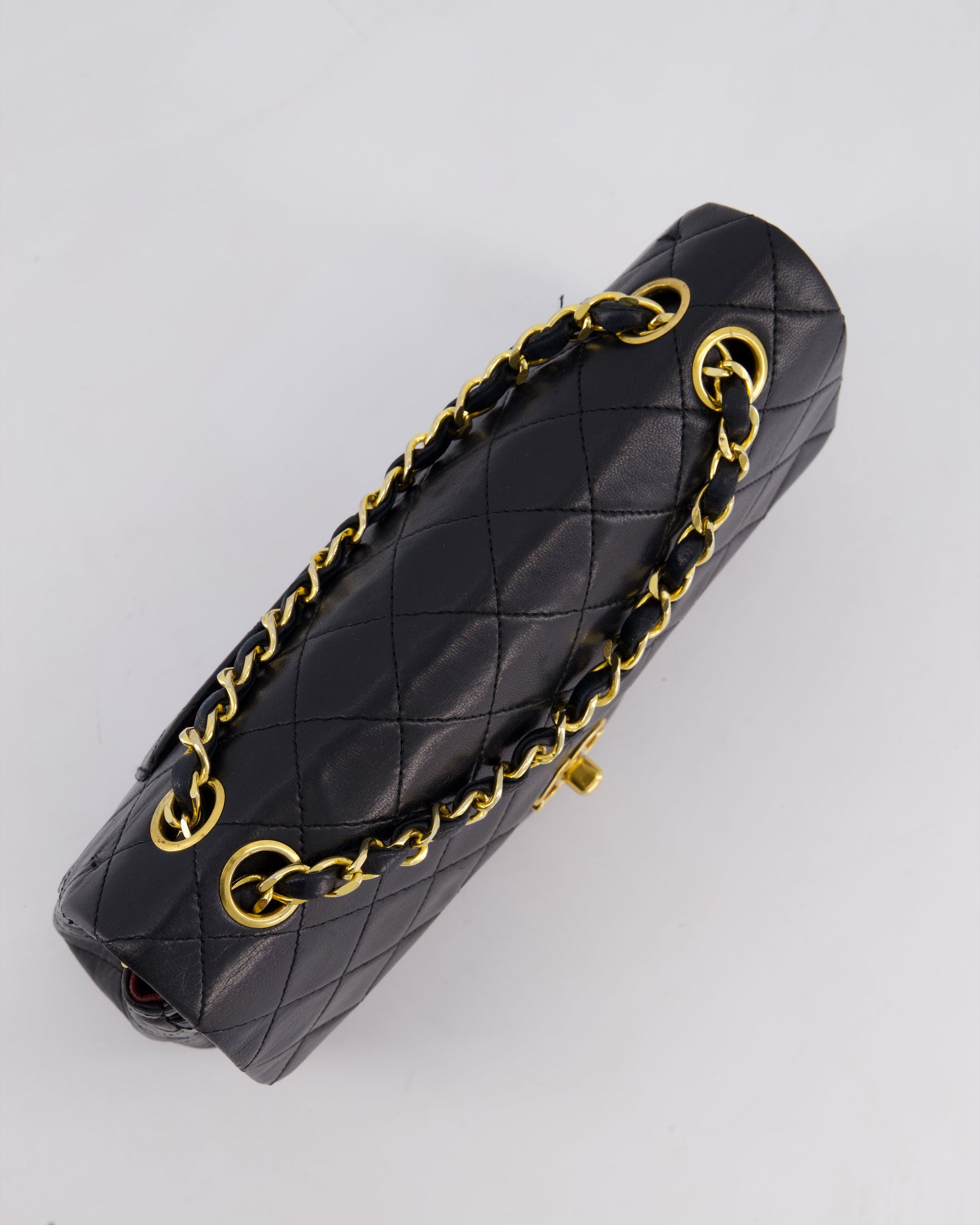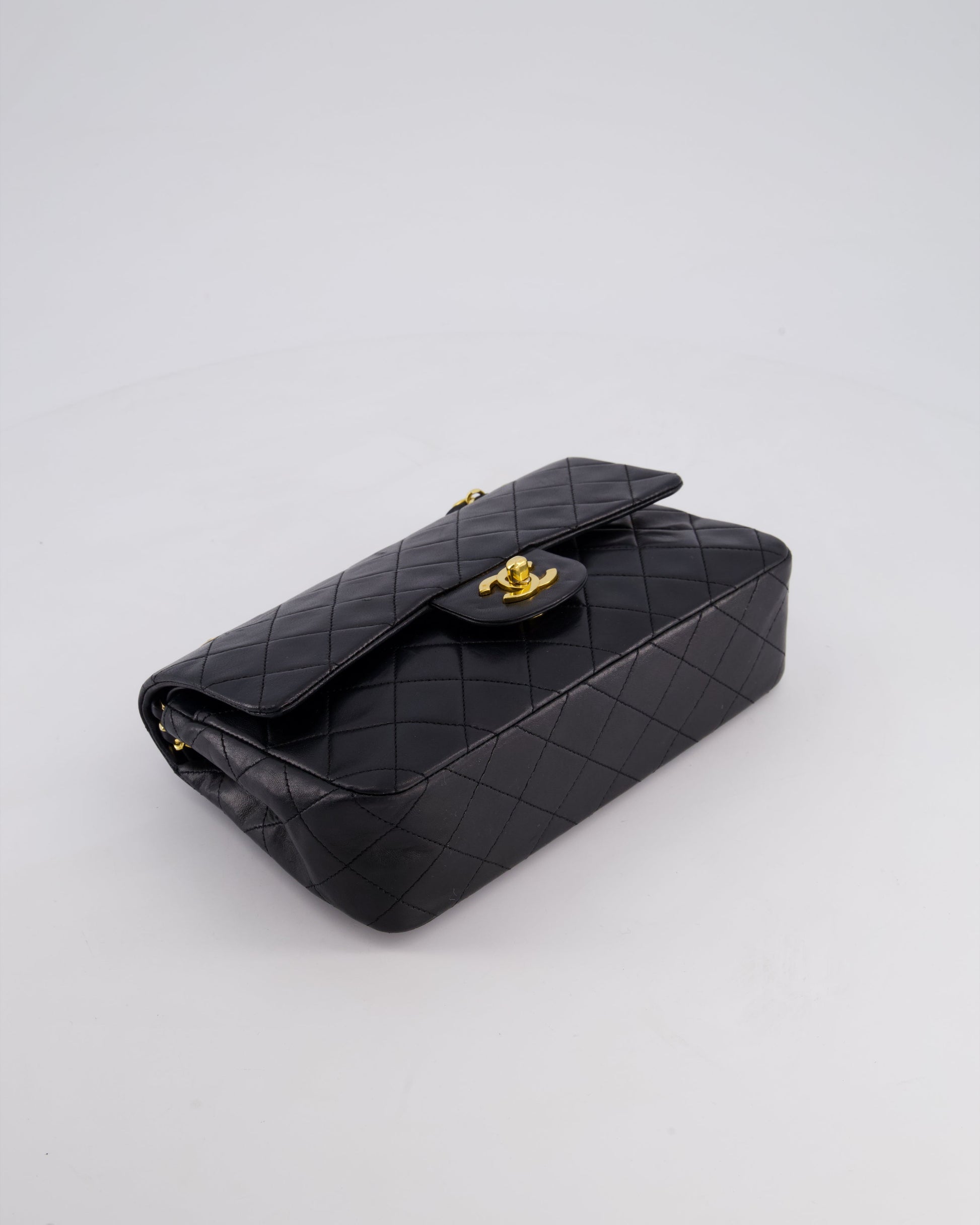 Chanel Vintage Black Small Classic Double Flap Bag in Lambskin Leather with 24k Gold Hardware