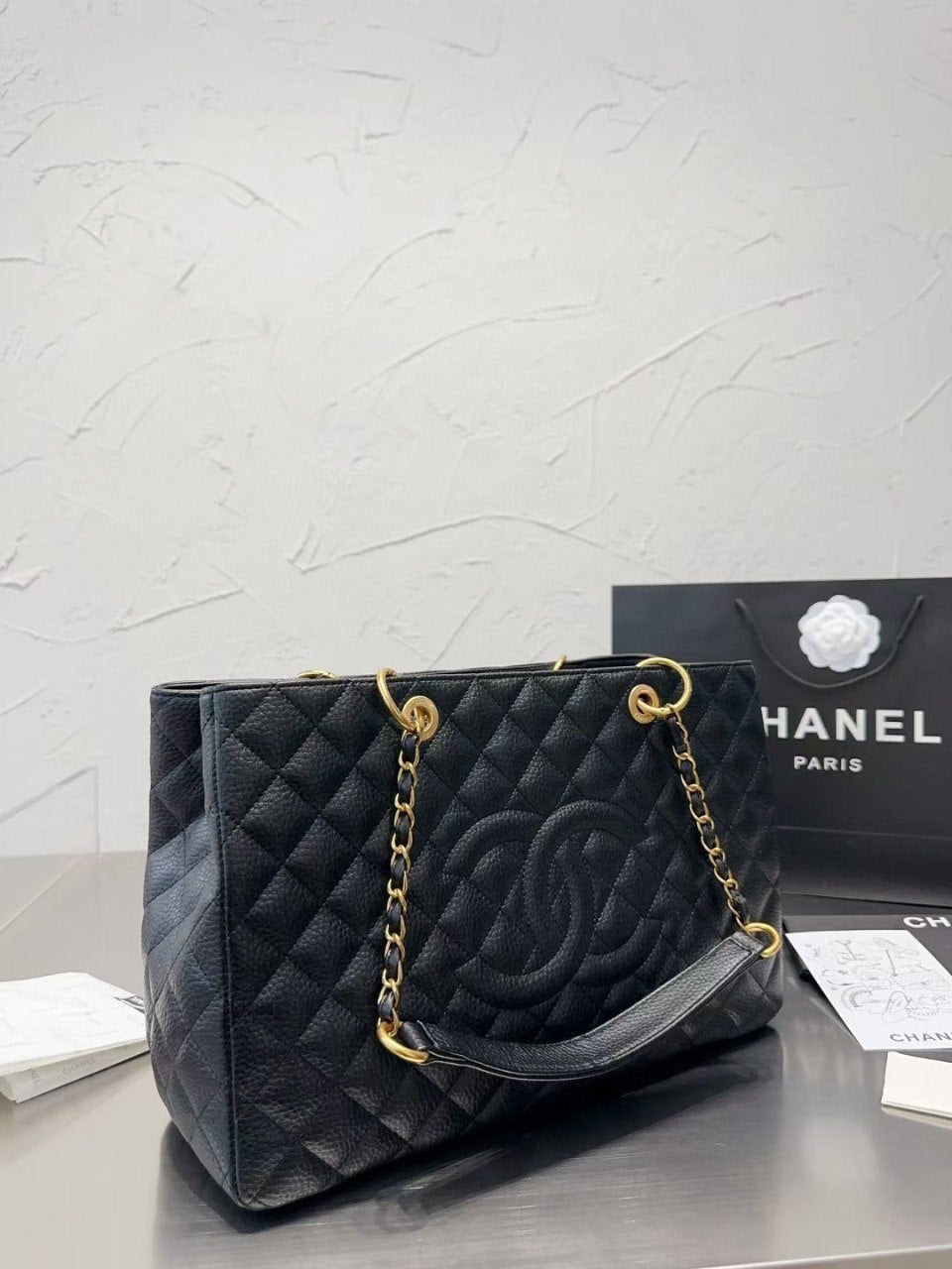 Chanel Vintage CC Chain ToteLarge Black New 2