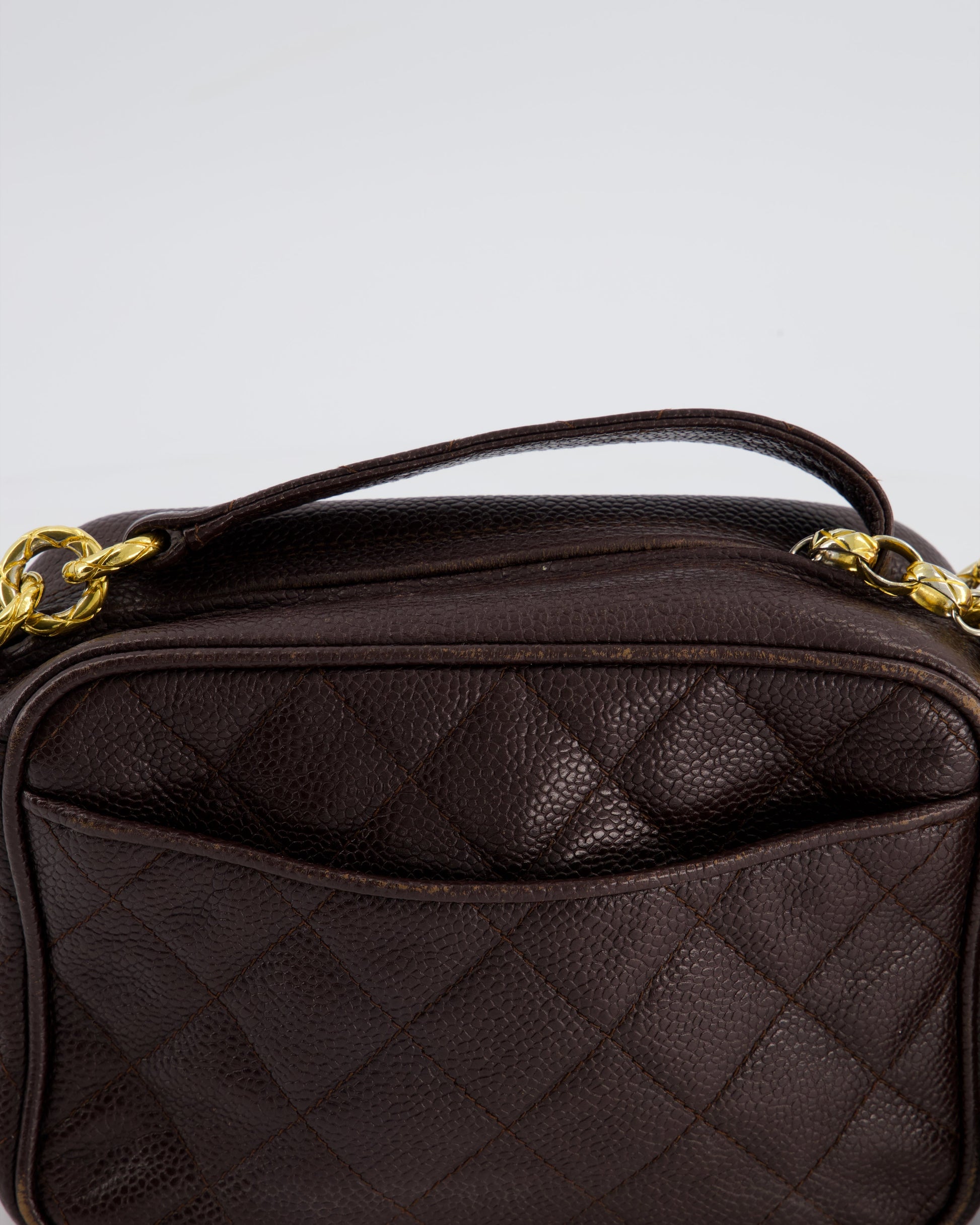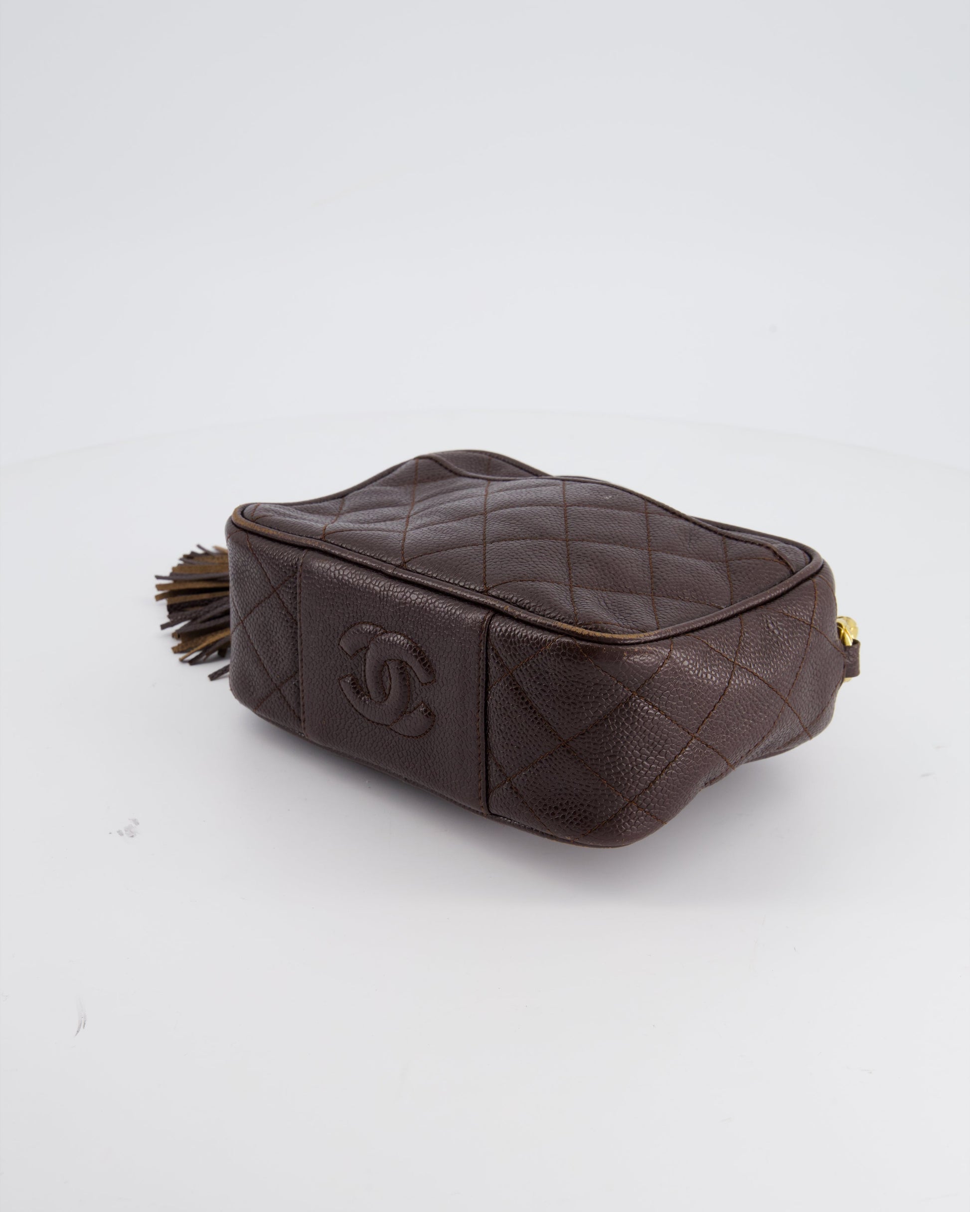 Chanel Vintage Chocolate Brown Small Camera Bag in Caviar Leather with Gold Hardware