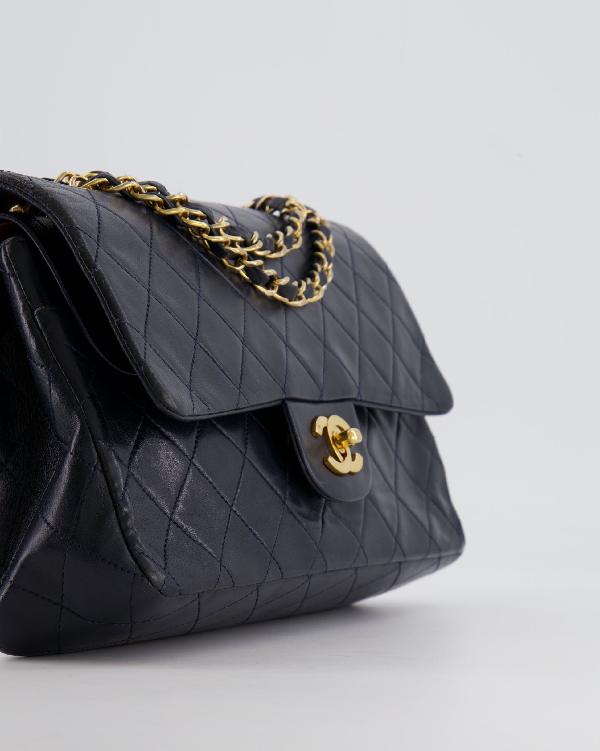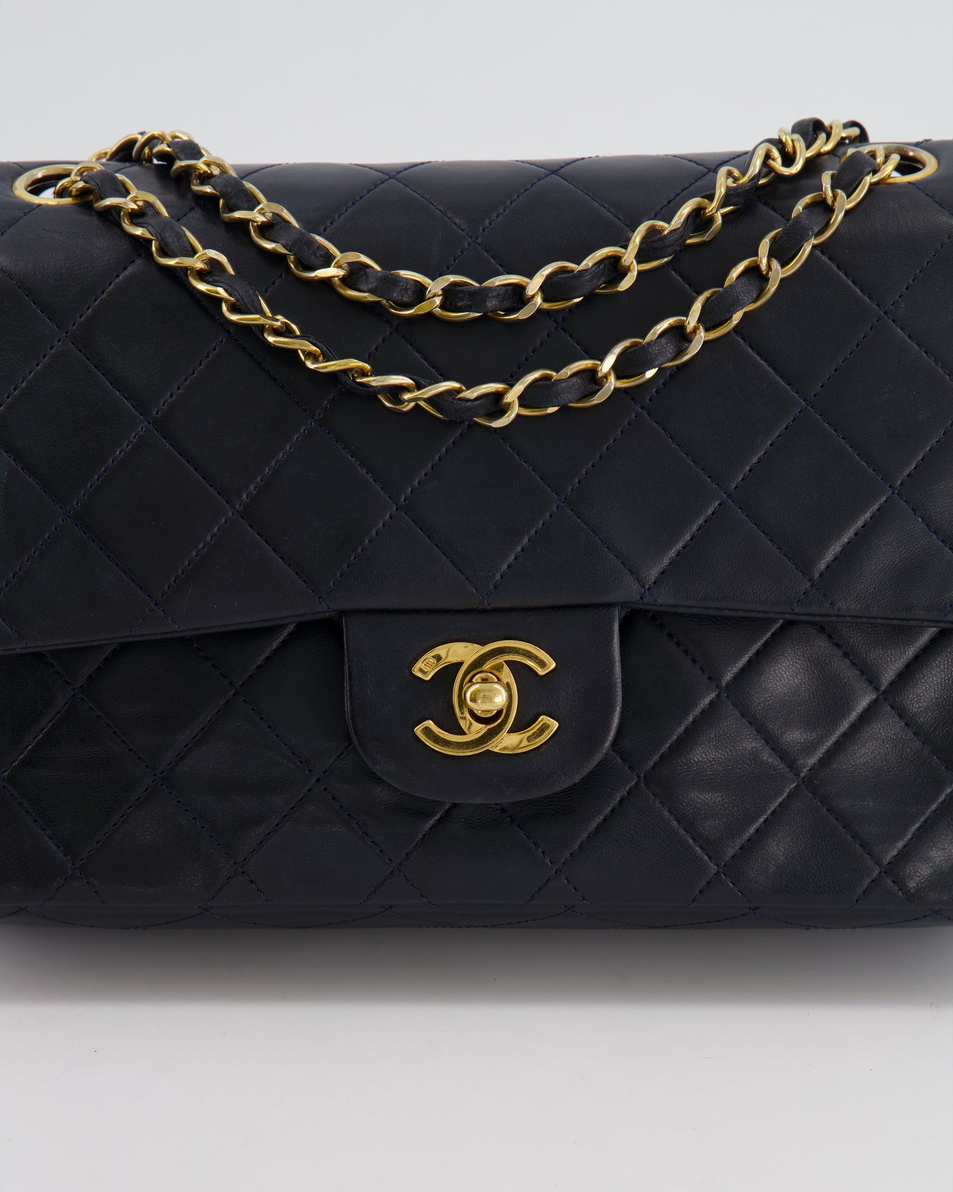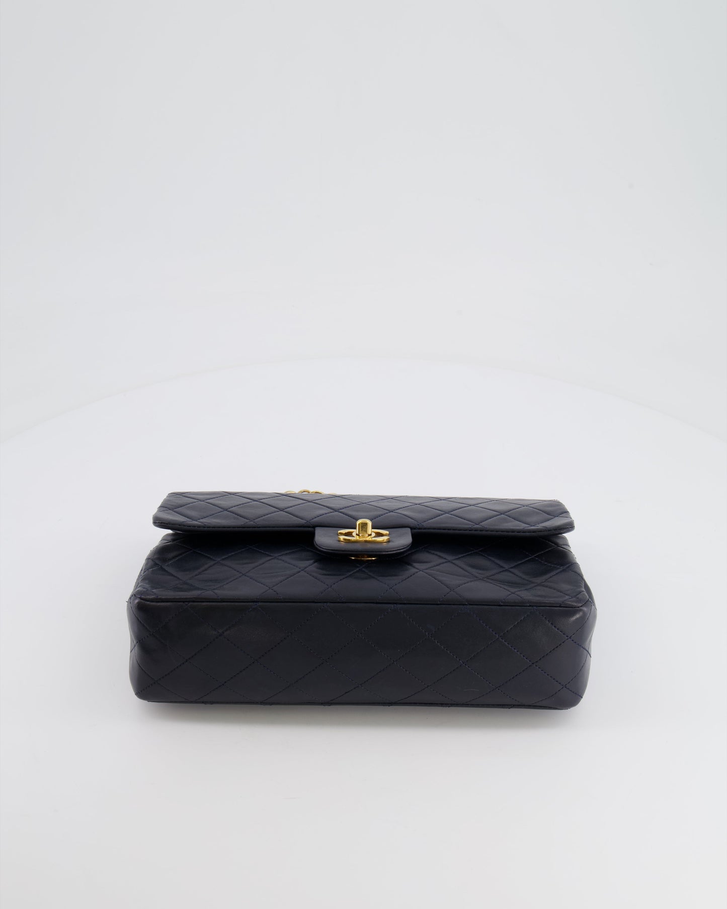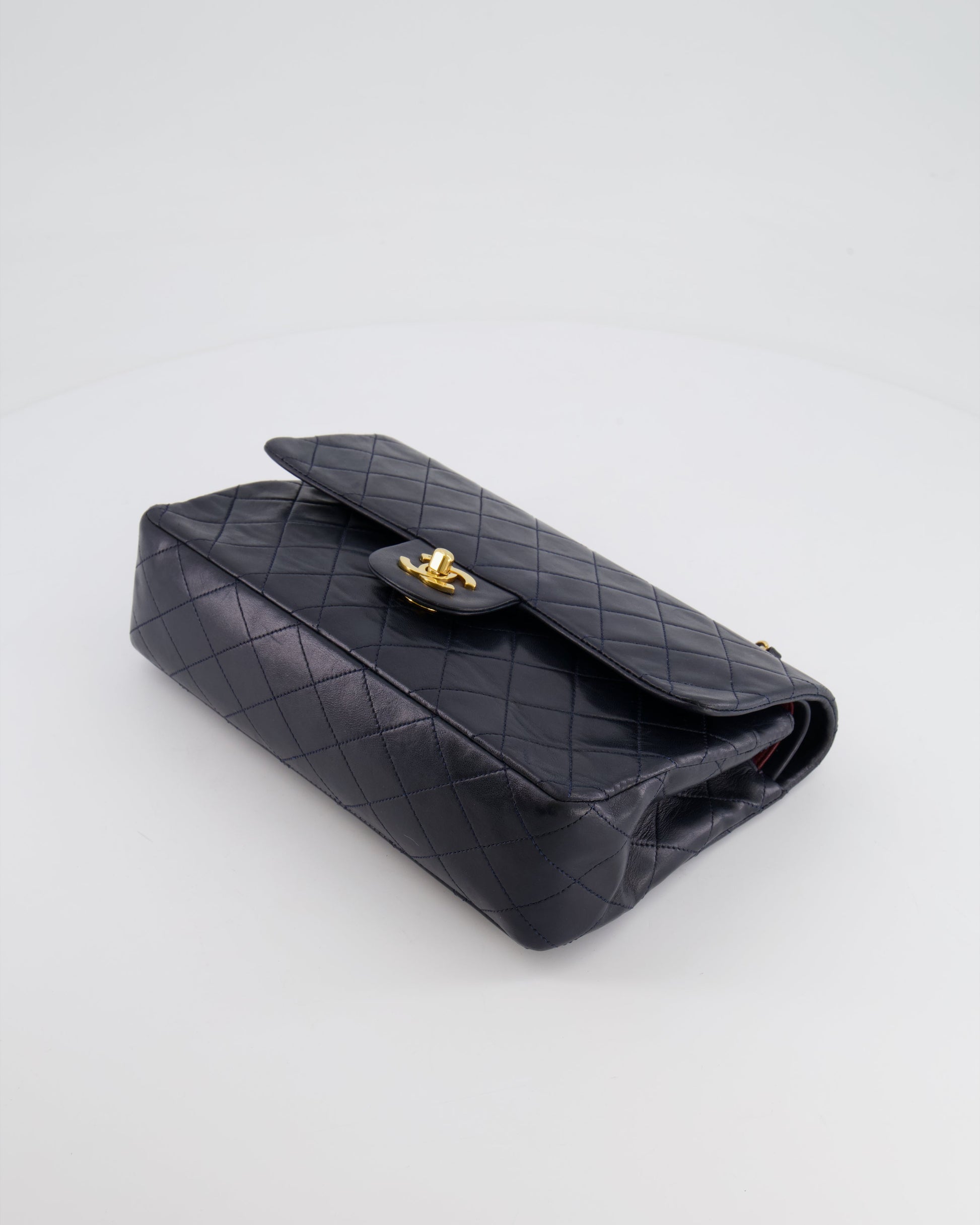 Chanel Vintage Navy Medium Classic Double Flap Bag in Lambskin Leather with 24K Gold Hardware