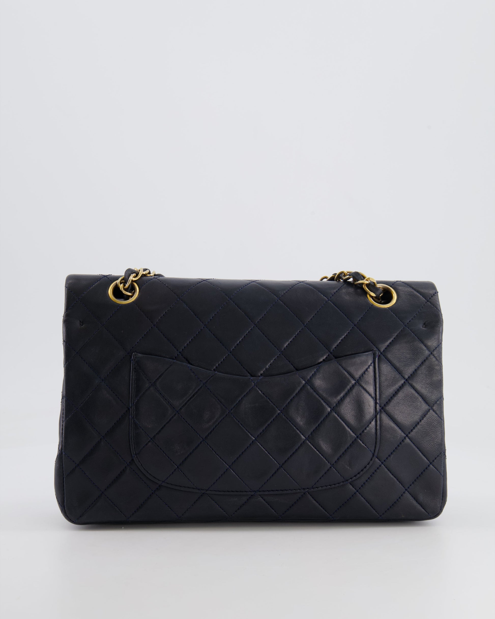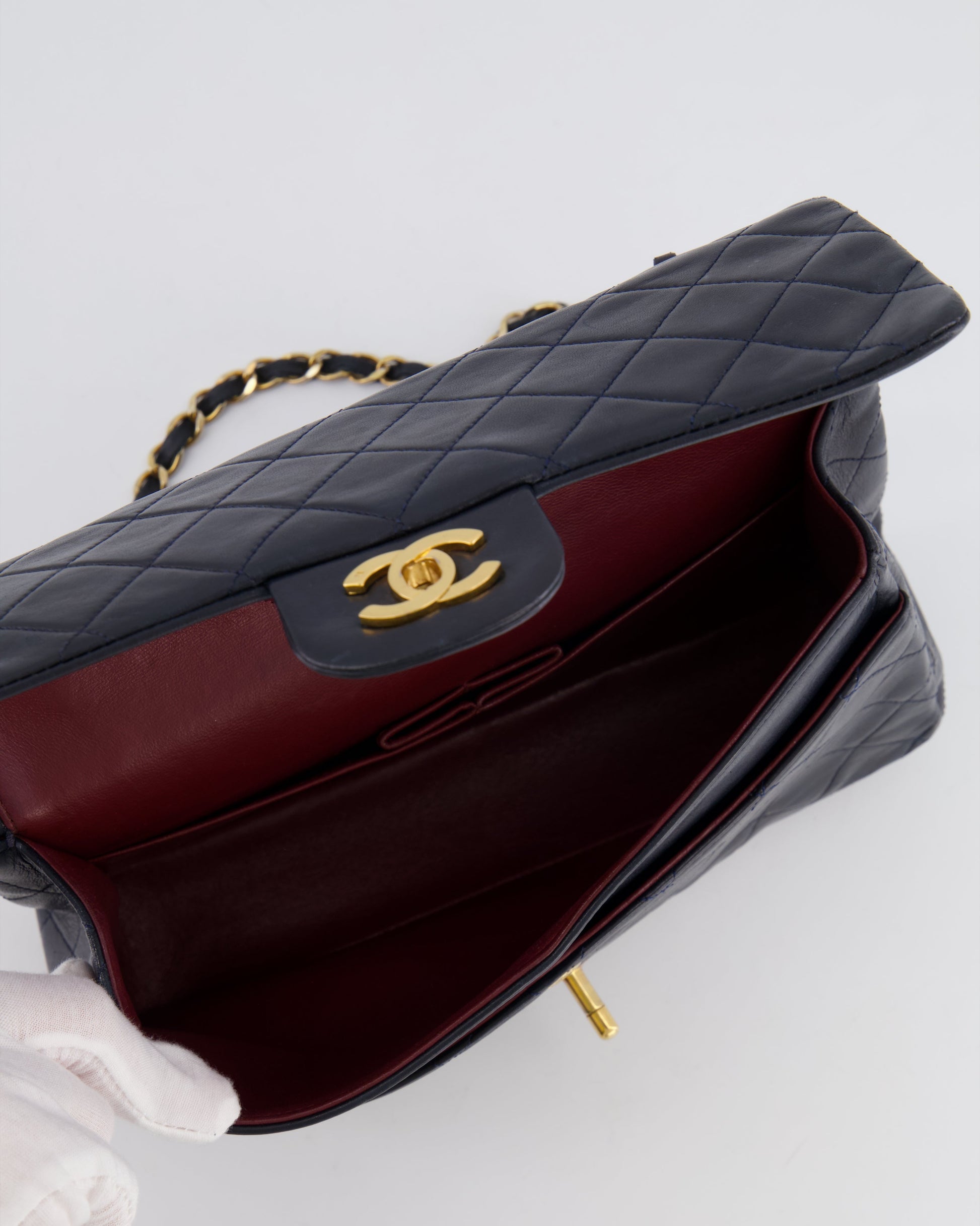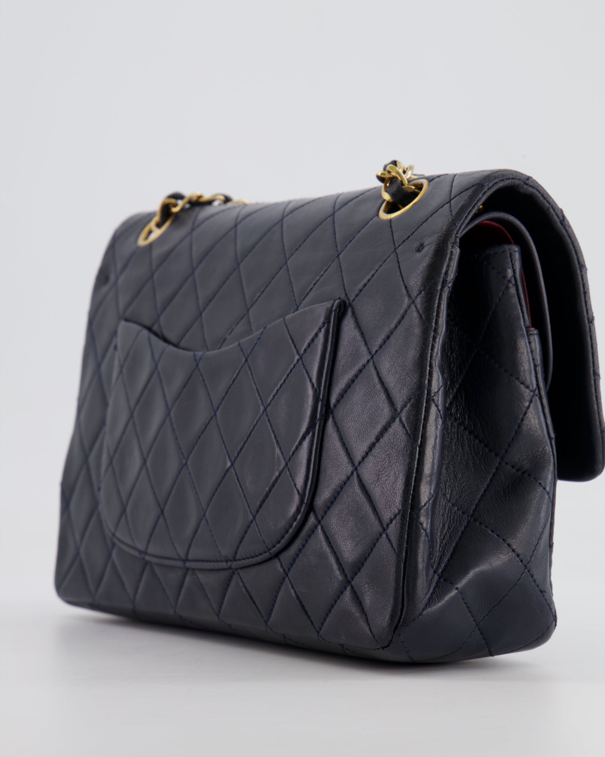 Chanel Vintage Navy Medium Classic Double Flap Bag in Lambskin Leather with 24K Gold Hardware