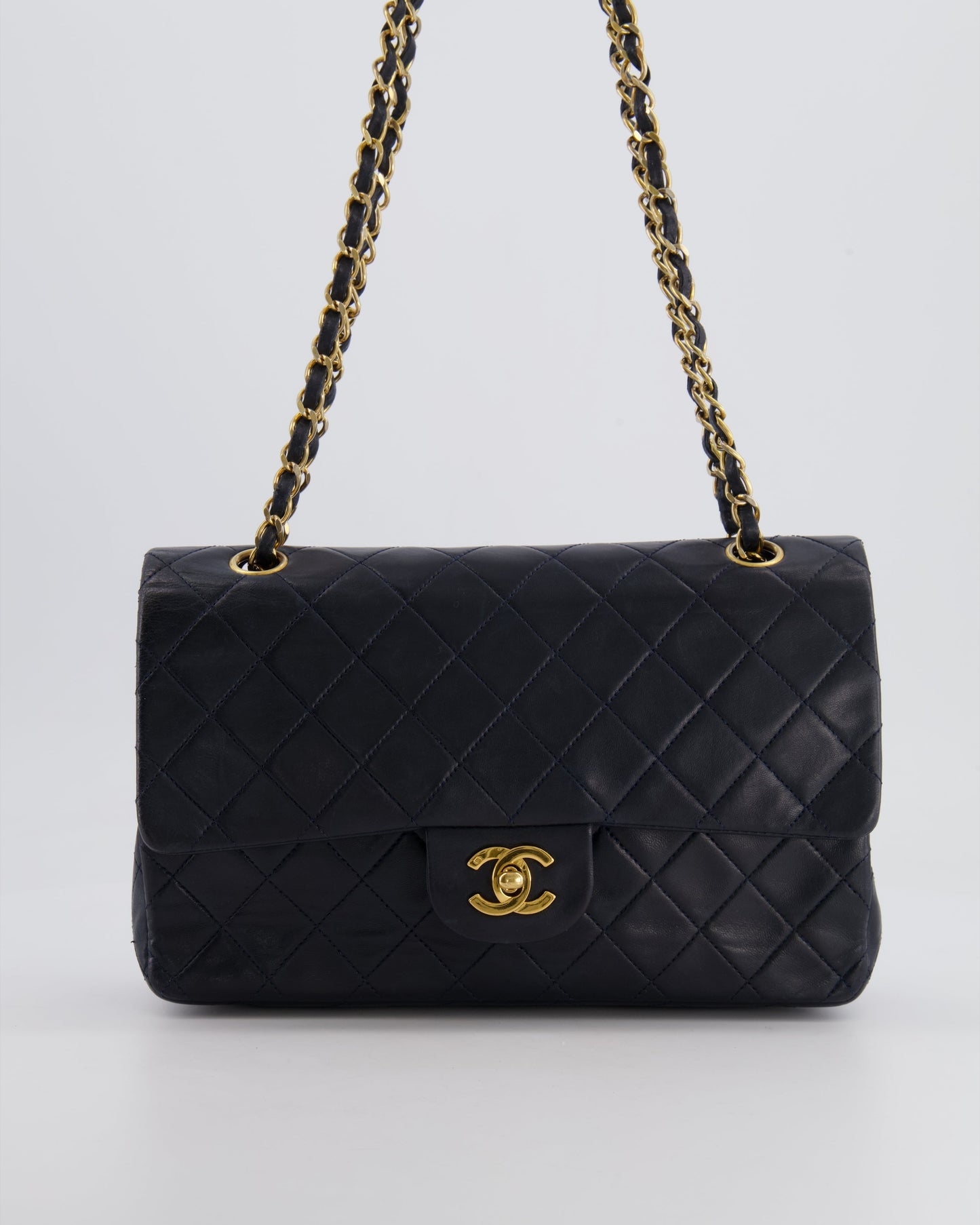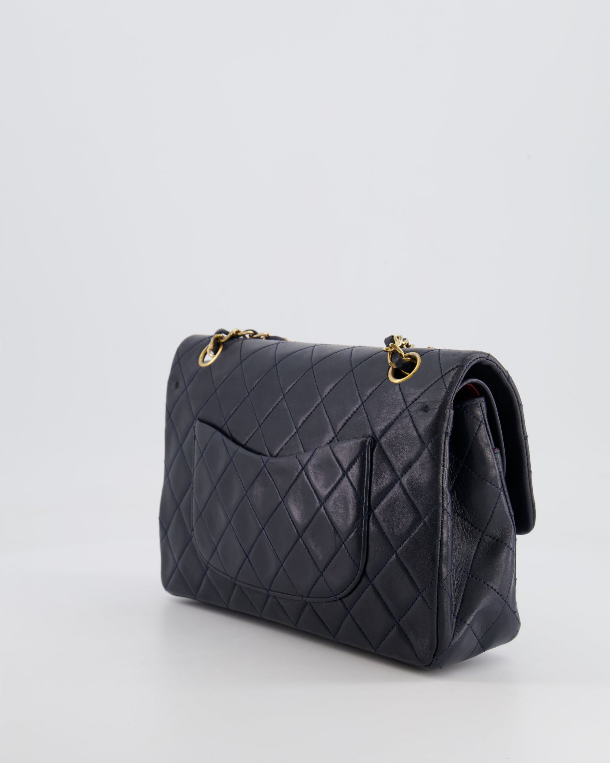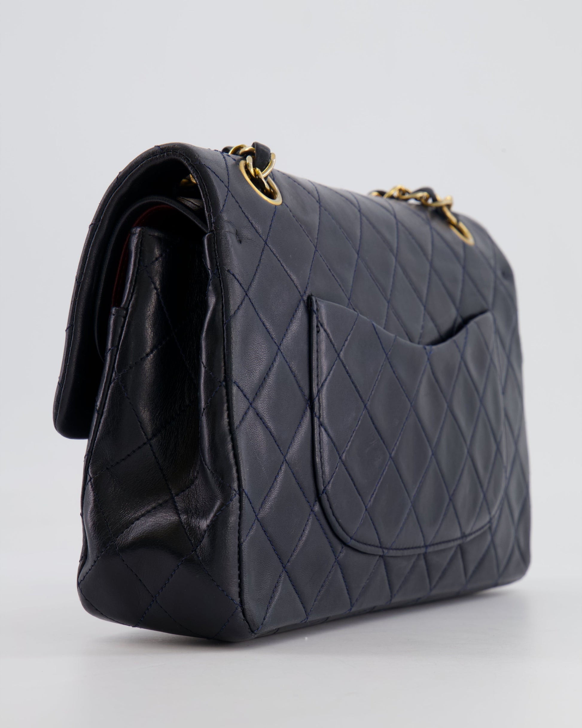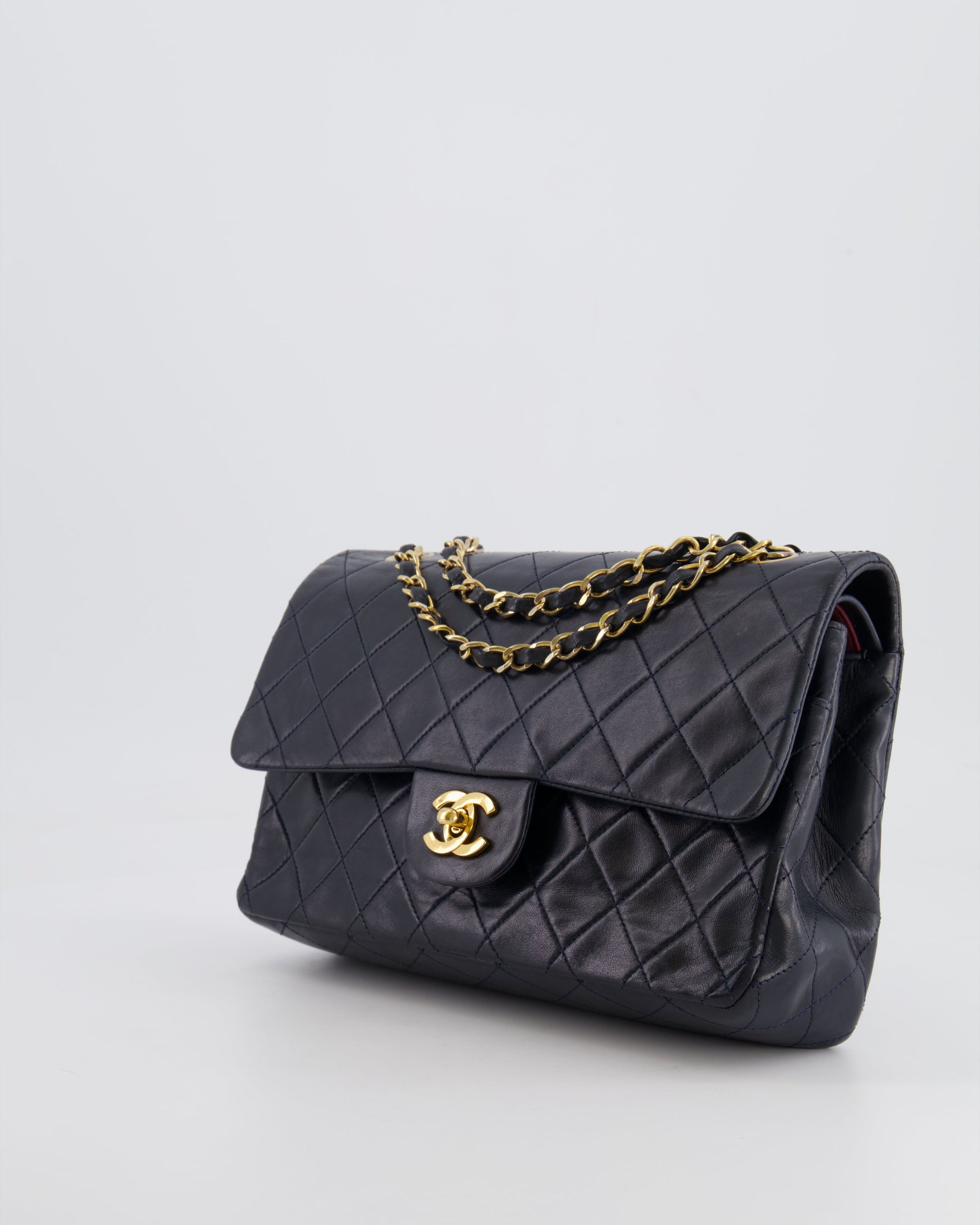 Chanel Vintage Navy Medium Classic Double Flap Bag in Lambskin Leather with 24K Gold Hardware