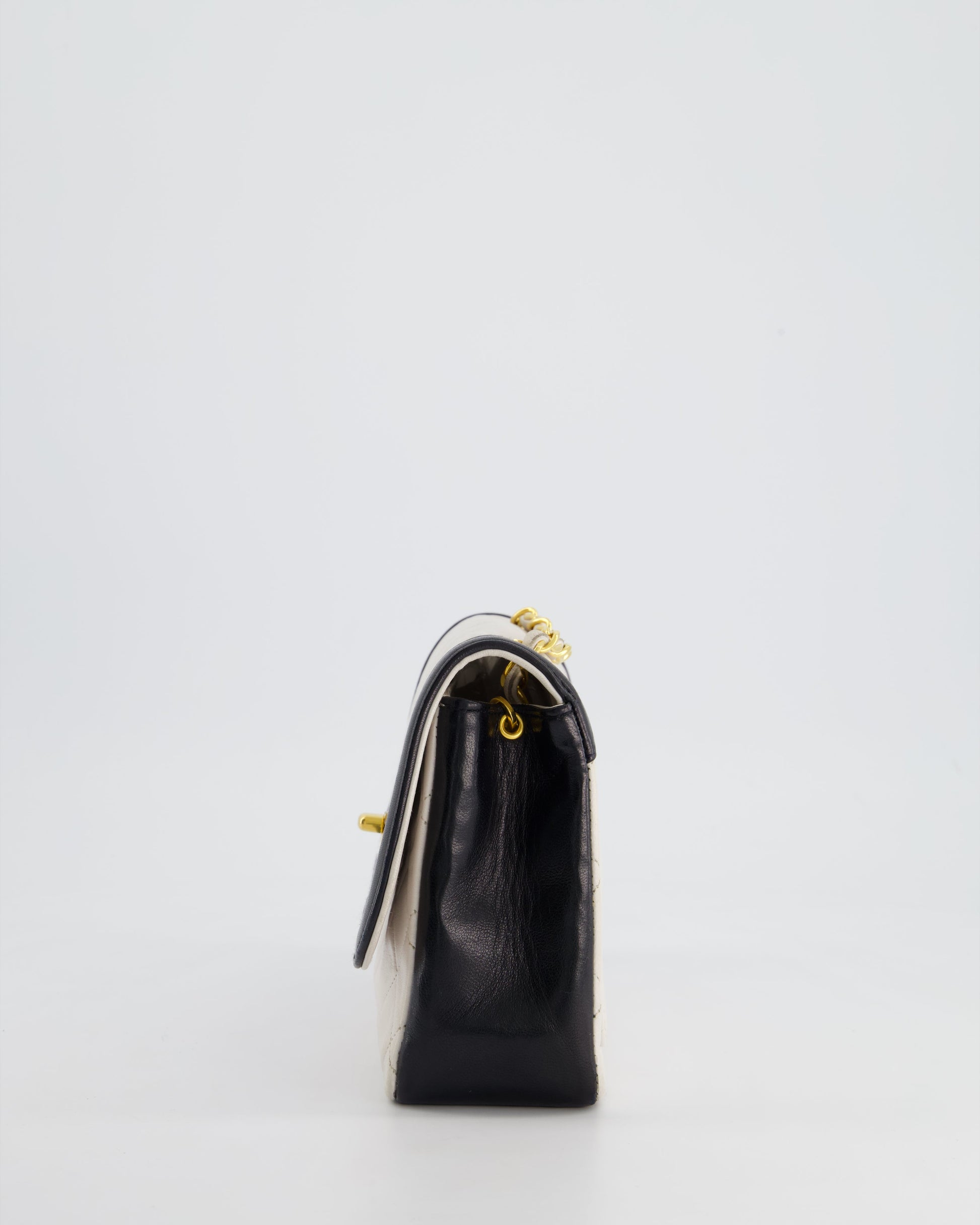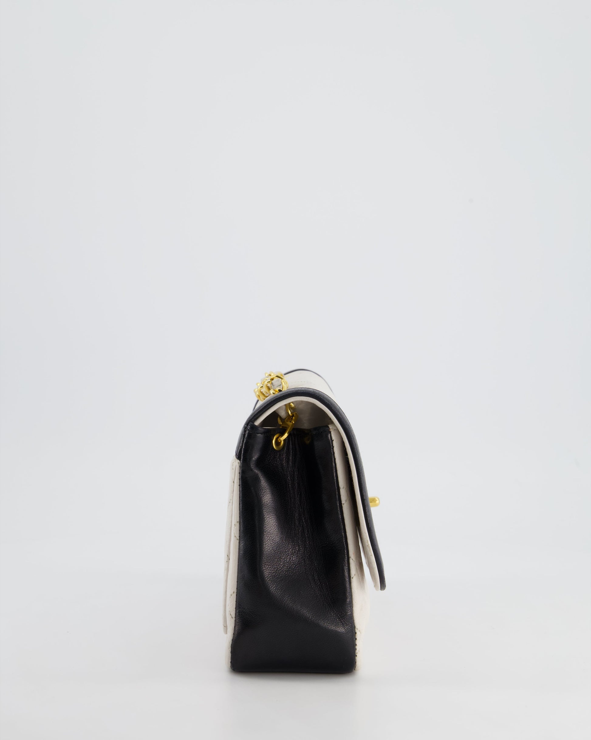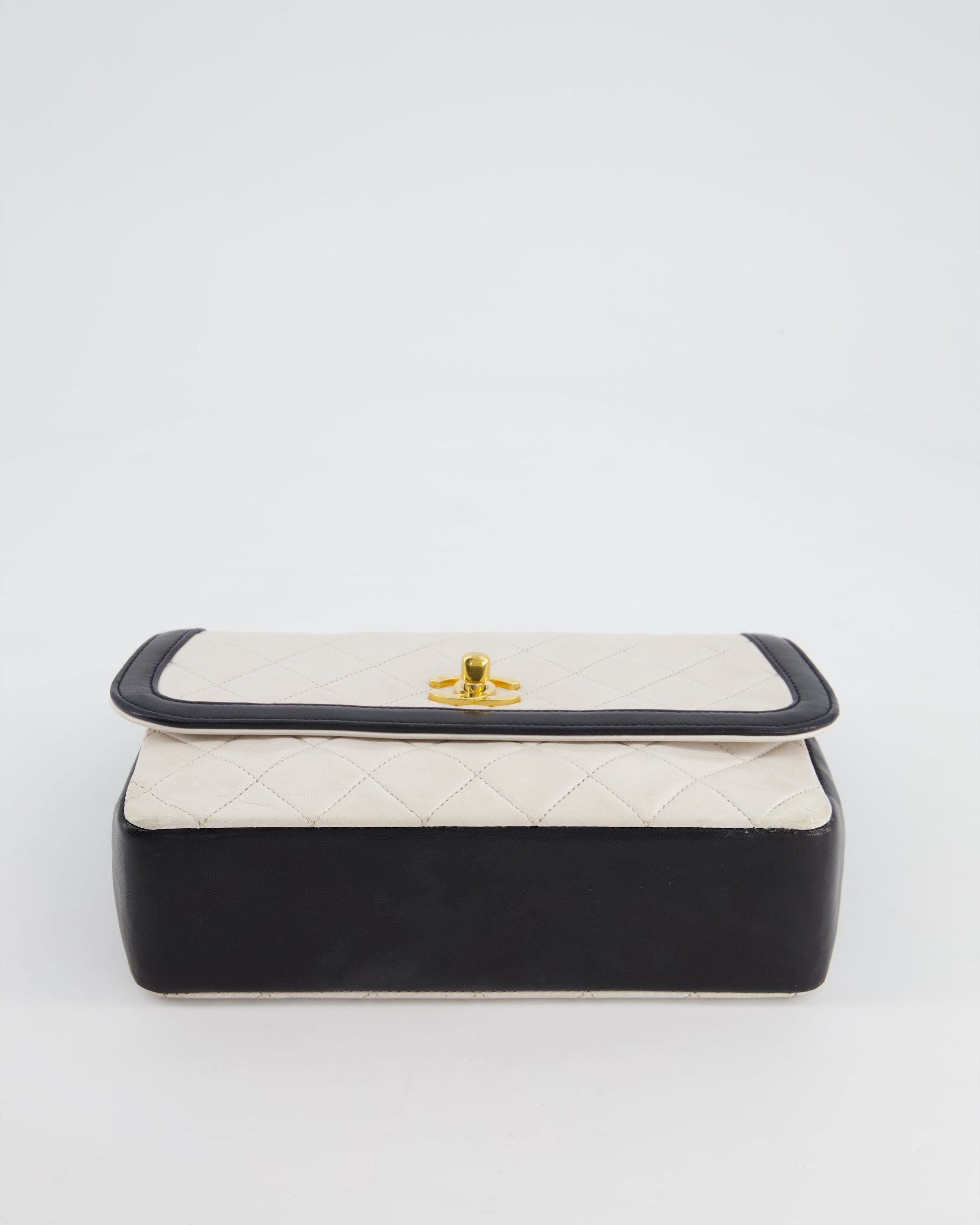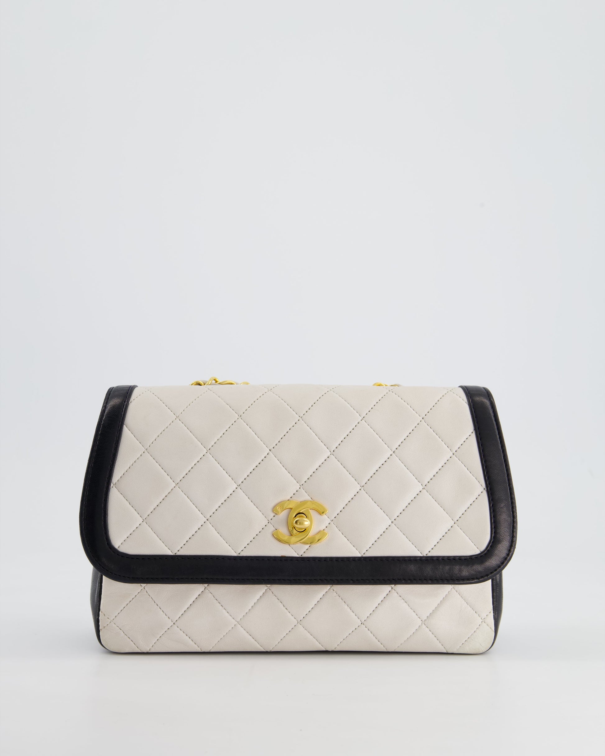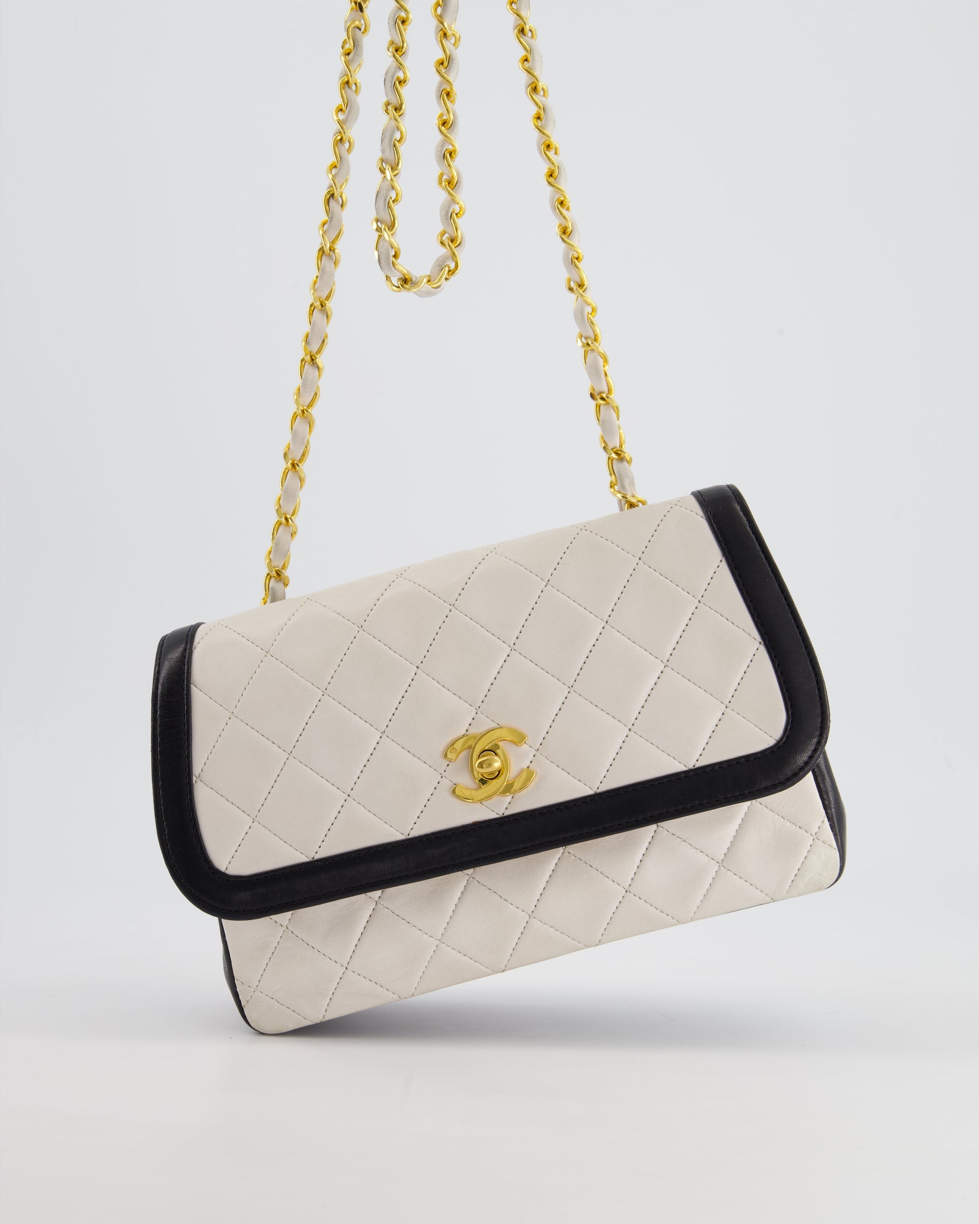 Chanel Vintage White, Black Trim Matelasse Cross-Body Bag in Lambskin Leather with 24K Gold Hardware