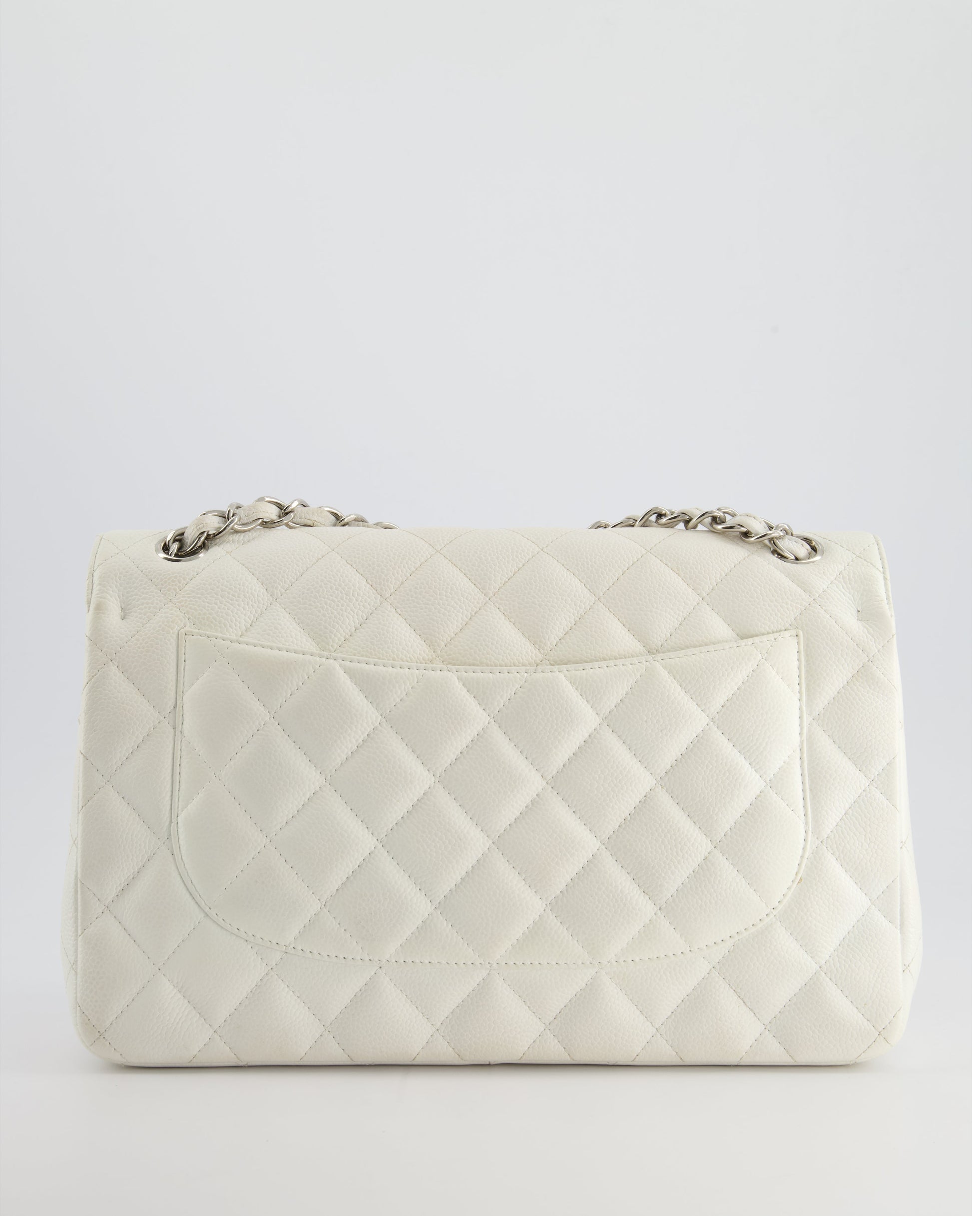 Chanel White Jumbo Classic Double Flap Bag in Caviar Leather with Silver Hardware