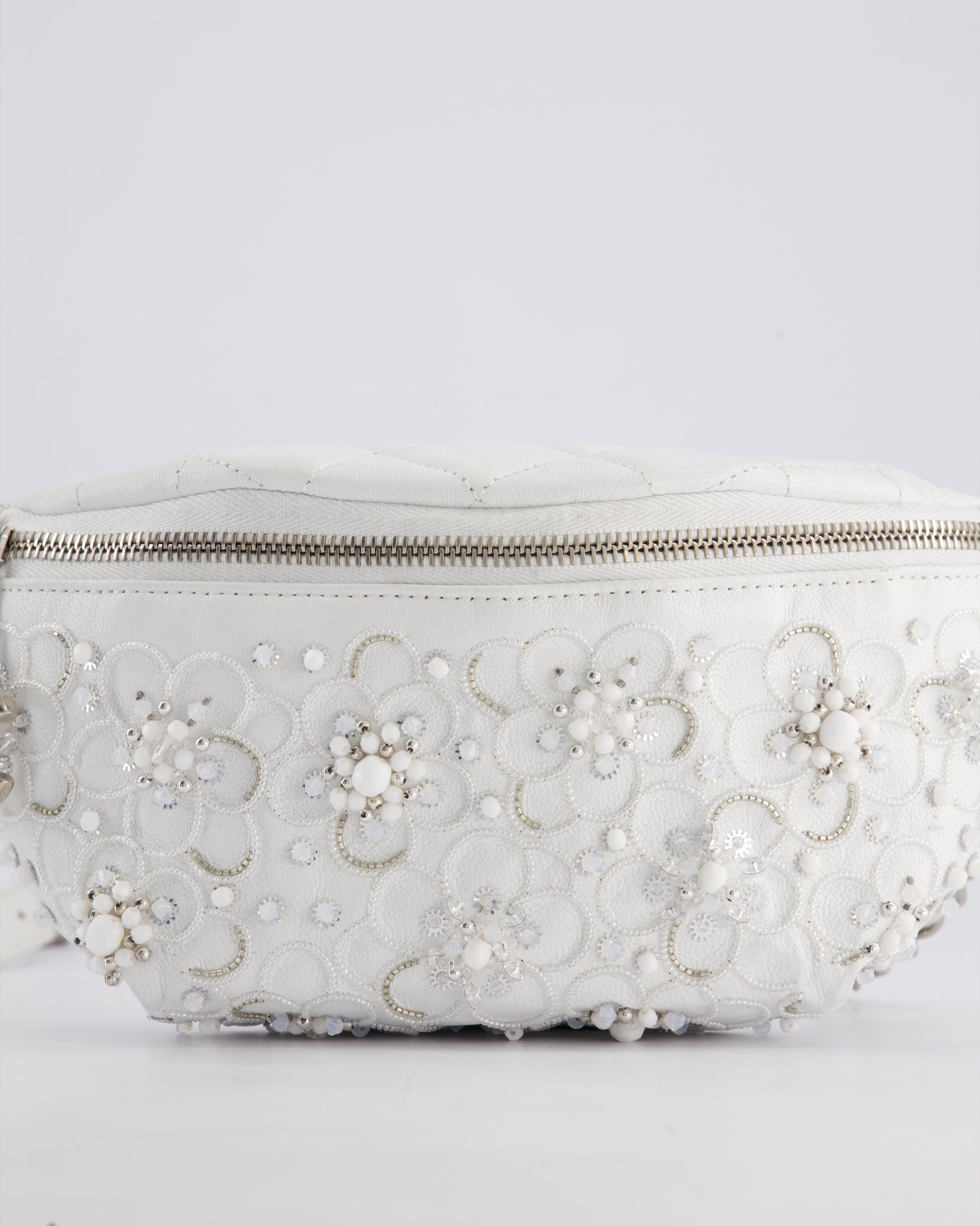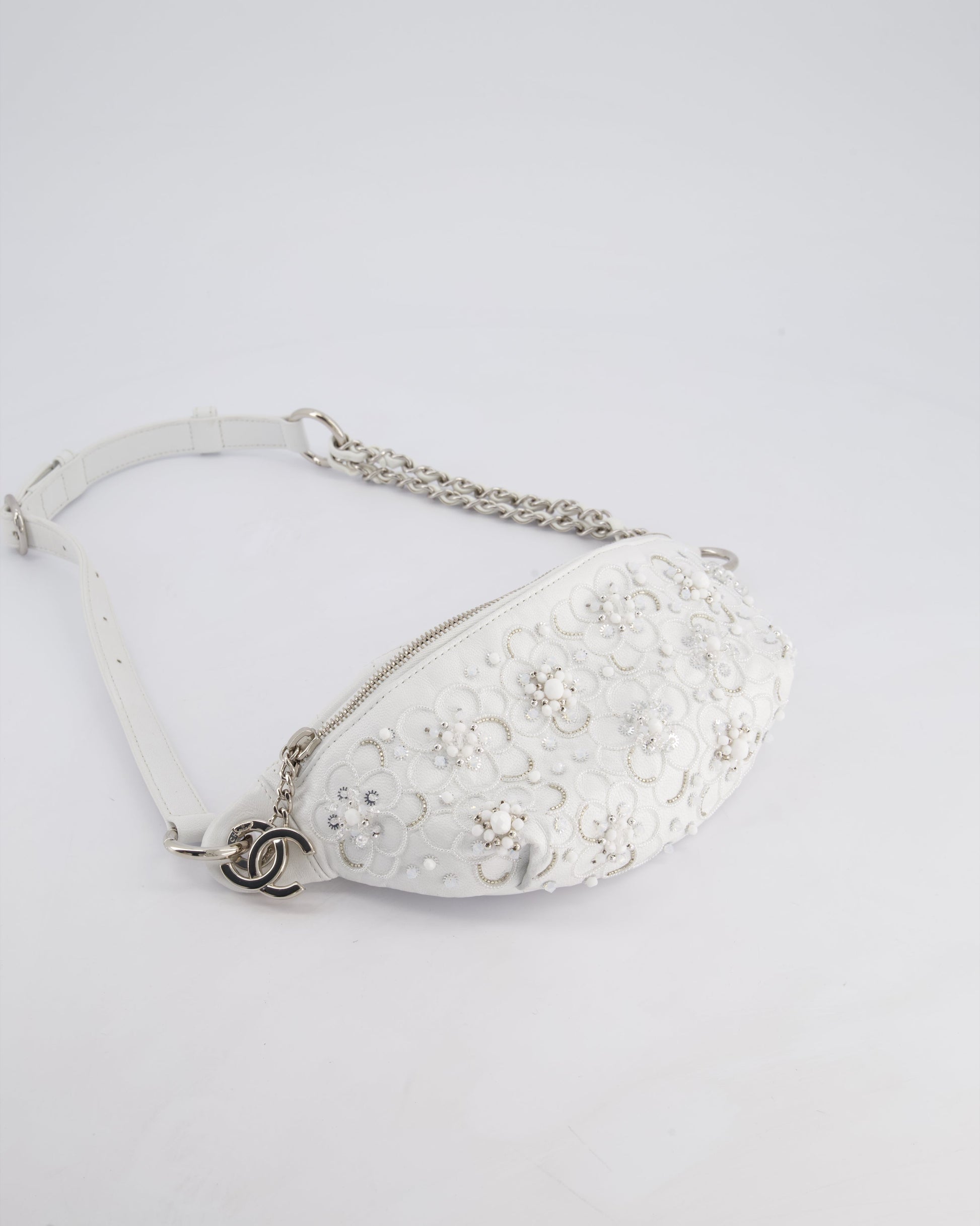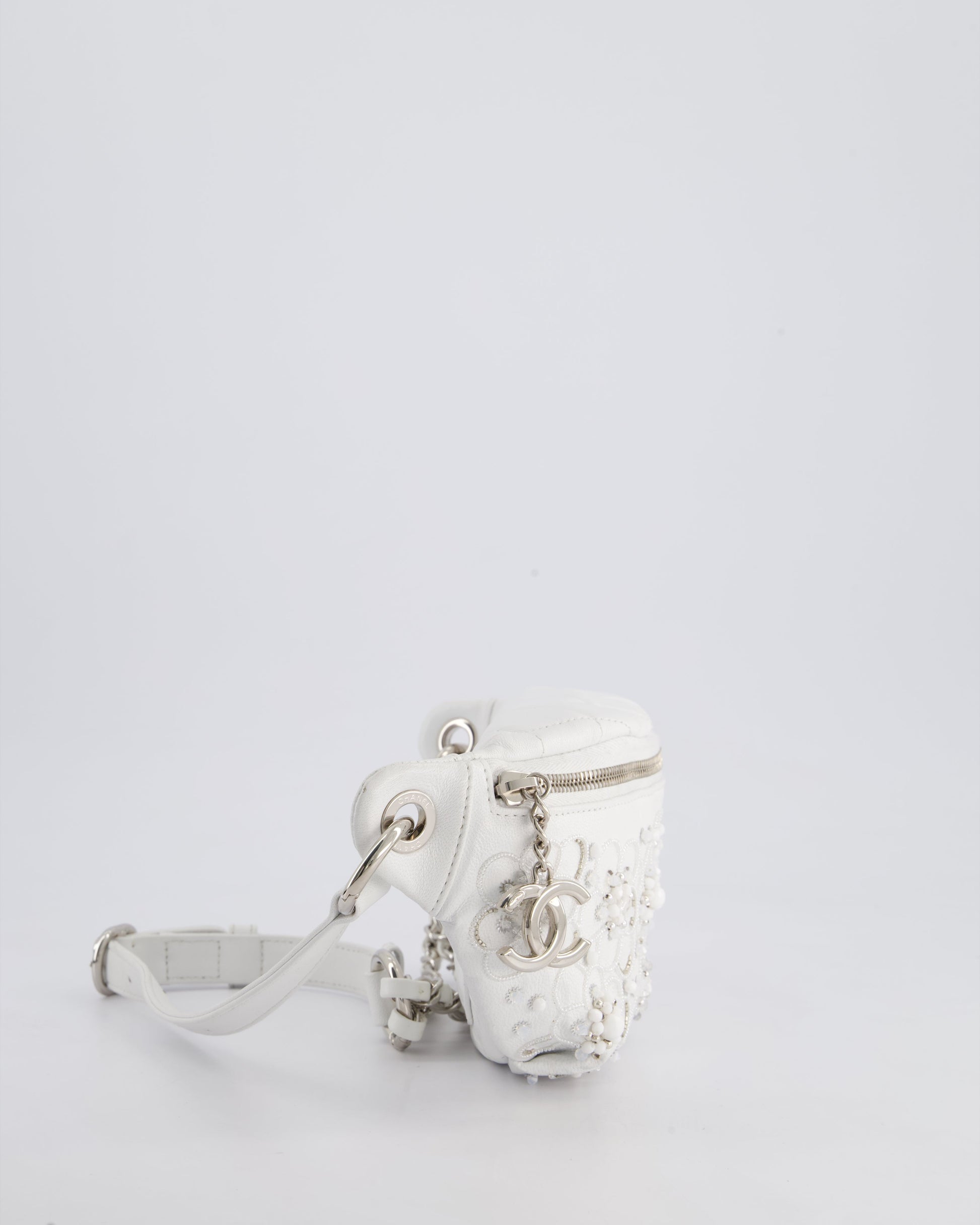 Chanel White Lambskin Leather Bum Bag with Silver Crystal Bead Embellishments and Silver Hardware RRP £4,660
