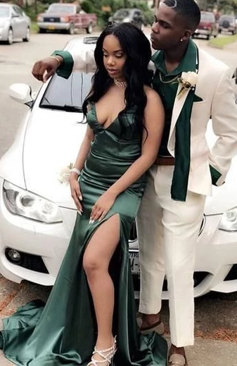 Charming Deep V neck Mermaid Evening Dress, Split Slit Long Prom Dress cg4880