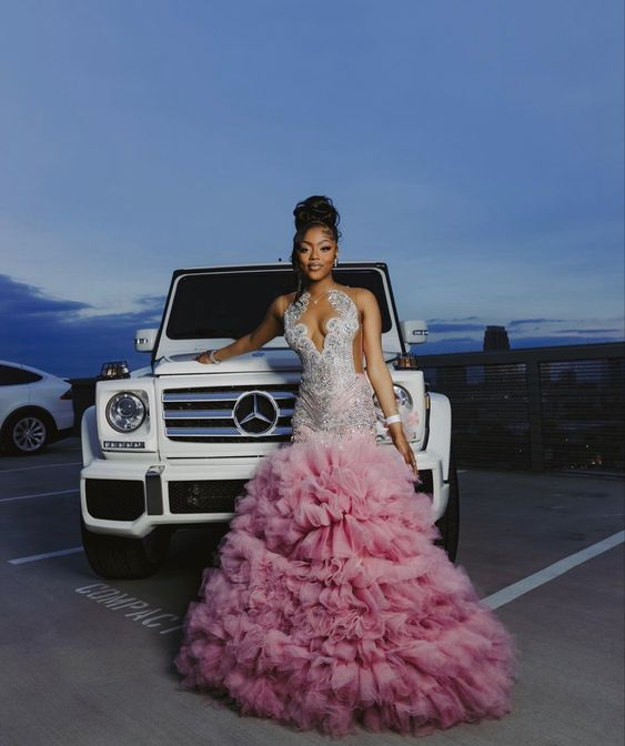 Beautiful Pink Beaded Mermaid Prom Dress Long Evening Dress SH871