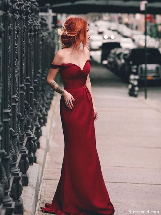 Charming Mermaid Off the Shoulder Burgundy Long Prom Dress cg556