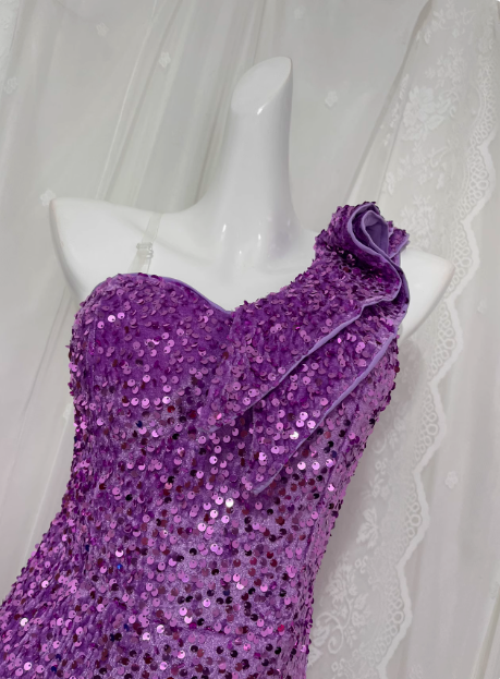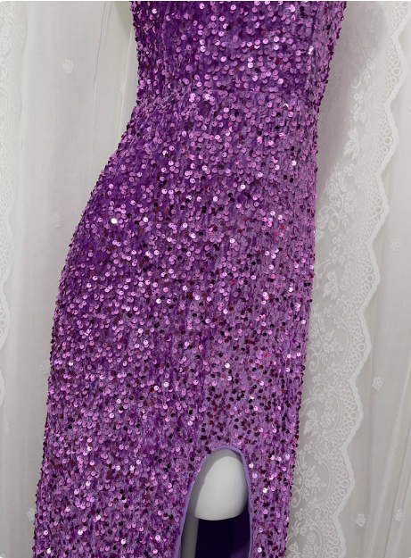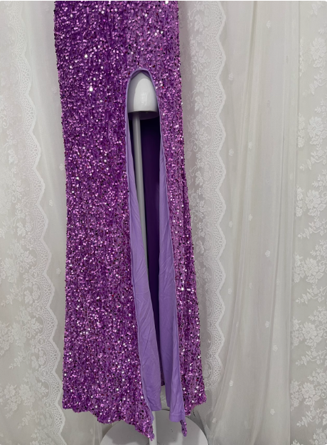 Charming Purple Sequined High Slit Long Prom Dress P3468