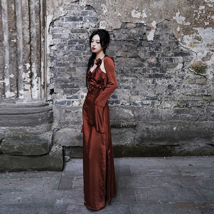 Chic A line Spaghetti Straps Burgundy Floral Long Prom Dresses Birthday Dress With Jacket SD254