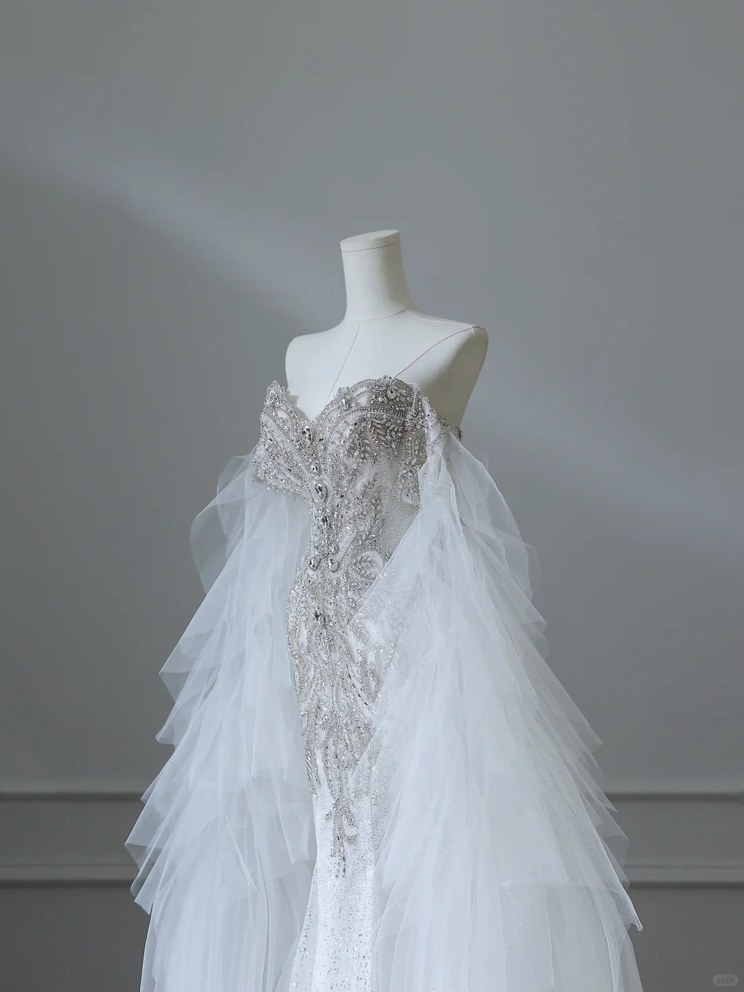 Chic Flowy White Glitter Mermaid Tulle Wedding Dress P2538