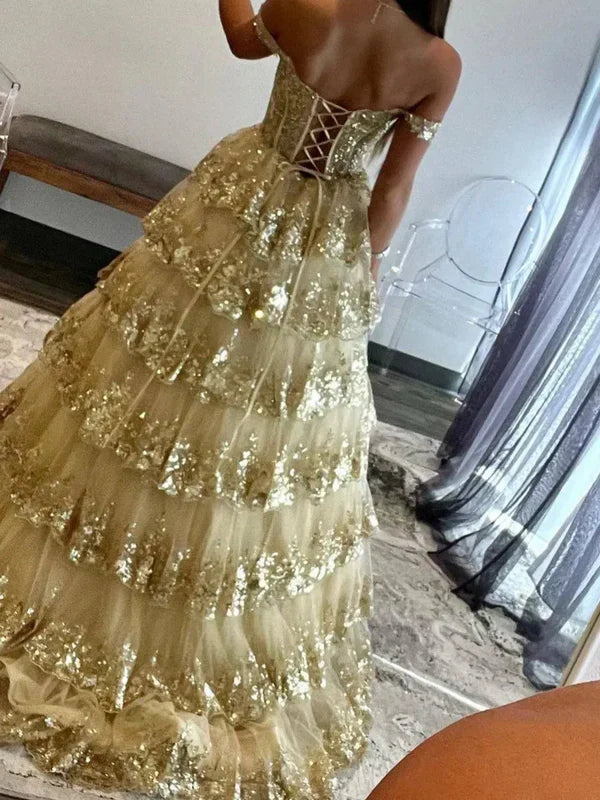 Chic Glitter Ball Gown Hot Pink Corset Off the Shoulder Lace Long Prom Dress Evening Dresses DP252