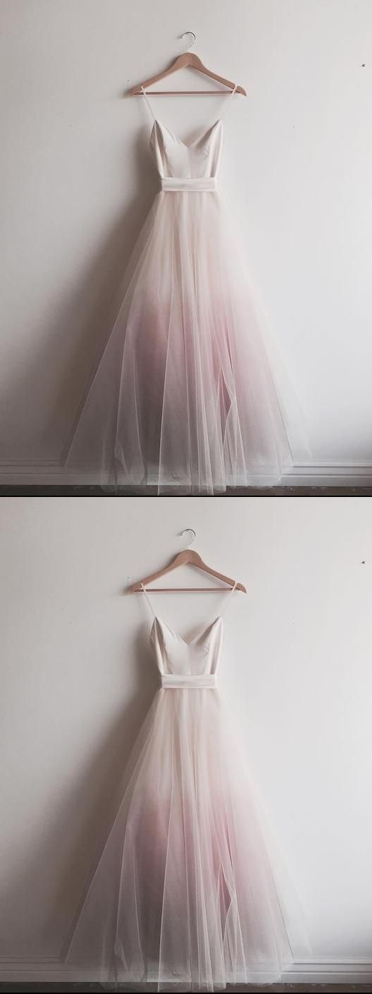 Chic Ombre Prom Dresses Spaghetti Straps A-line Floor-length Long Prom Dress cg698
