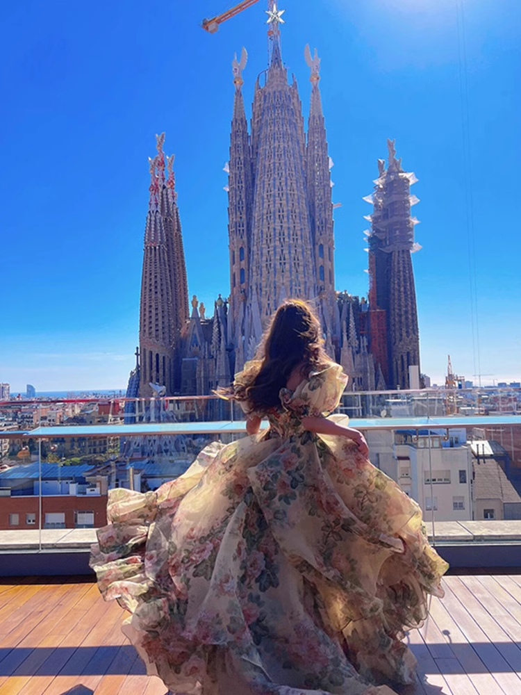 Chic Princess Square Neckline Floral Green Long Ruffles Prom Dresses Birthday Dress SD578