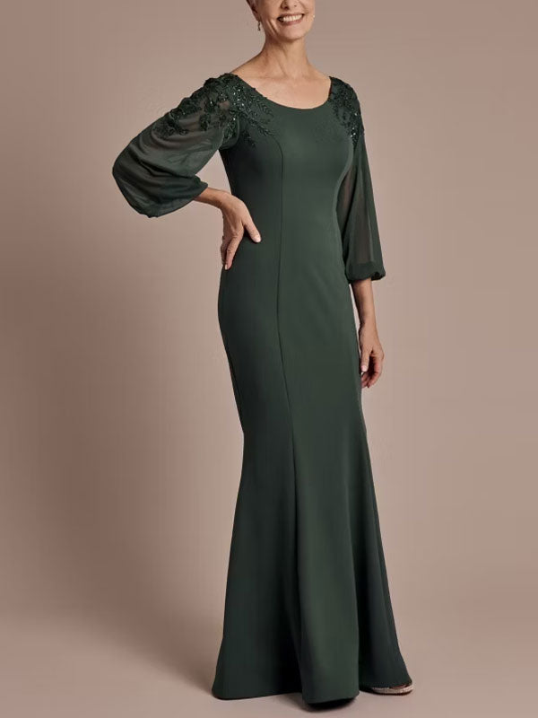 Chiffon Long Sleeve Mermaid Dress with 3D Flowers