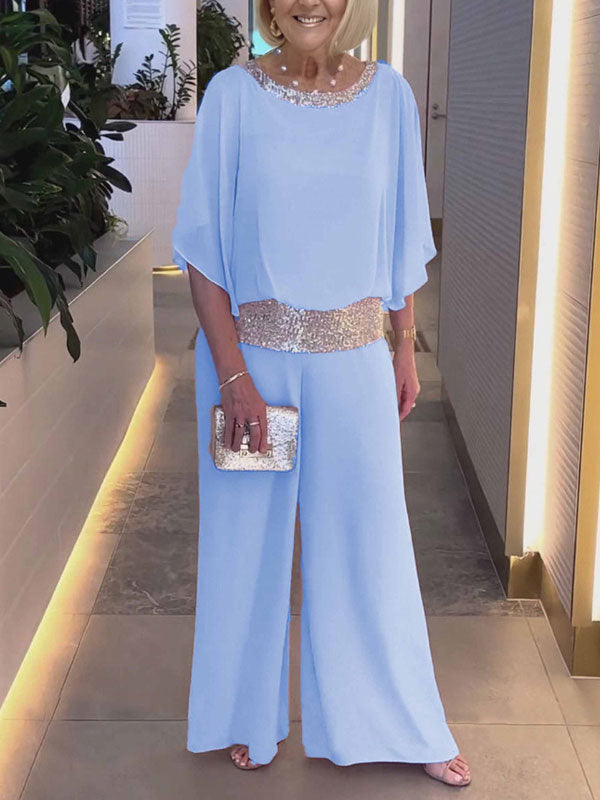 Chiffon Sequins Temperament Bat Sleeve Women's Sets