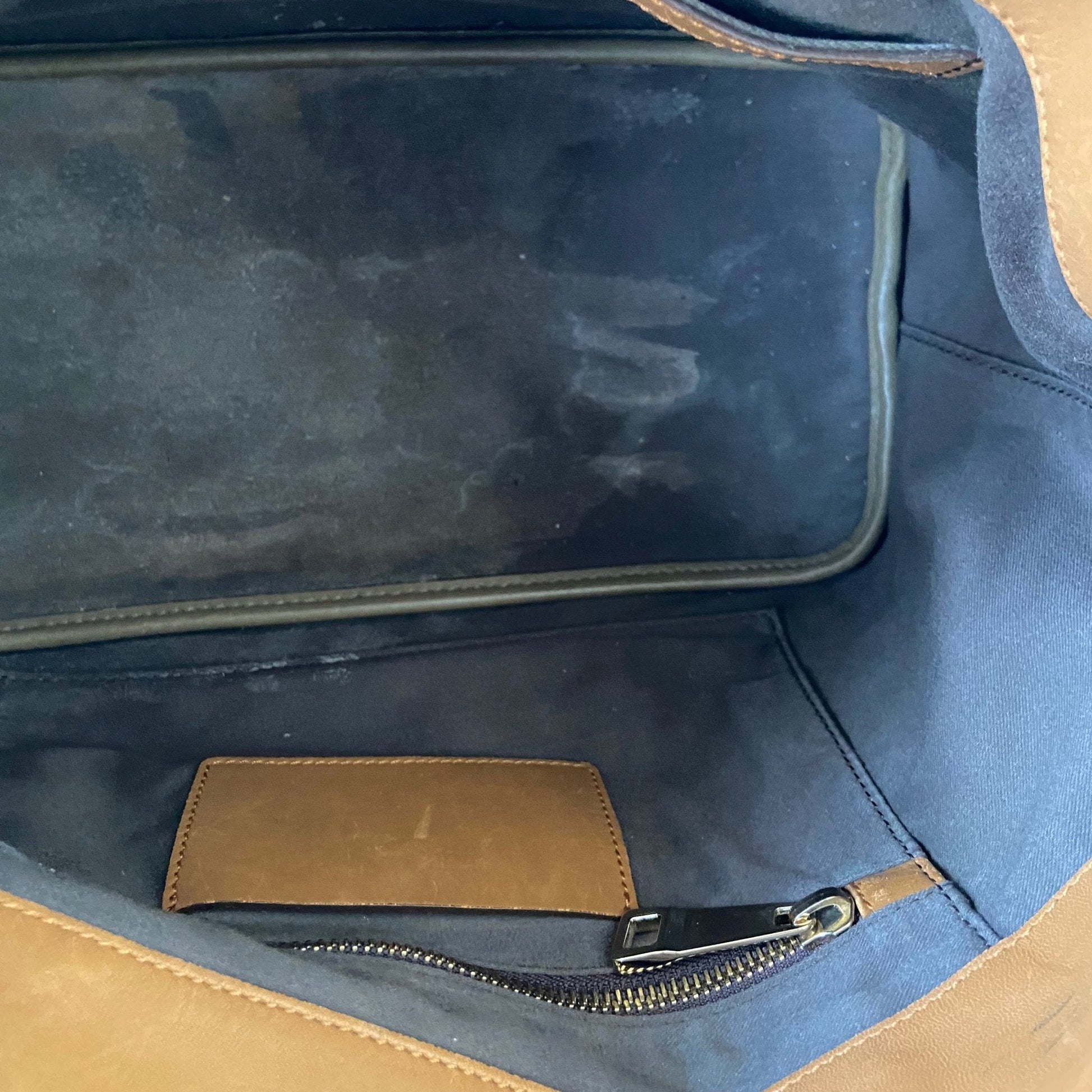 AttributesMaterial: Python skin leatherColor: BrownCondition: Leather faded on the exterior and stains on the interiorSize: MediumInclusions: Plain pouch