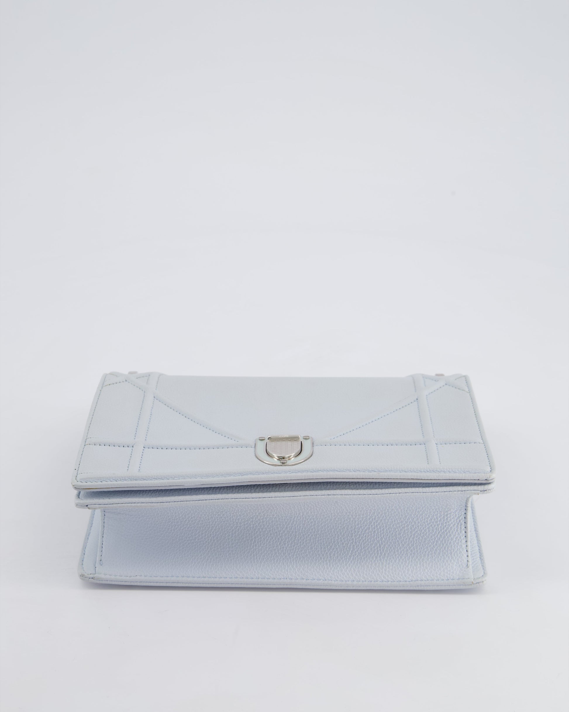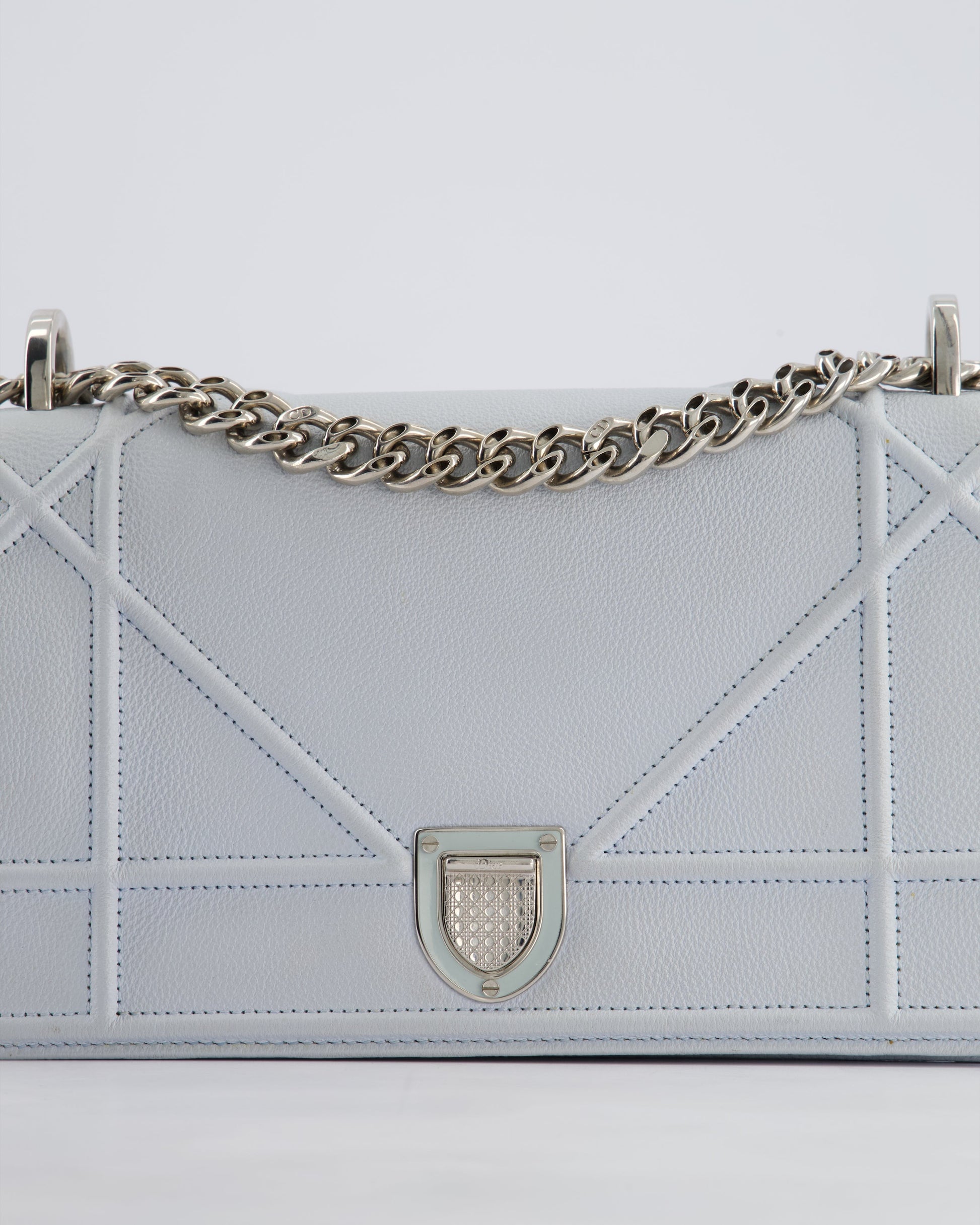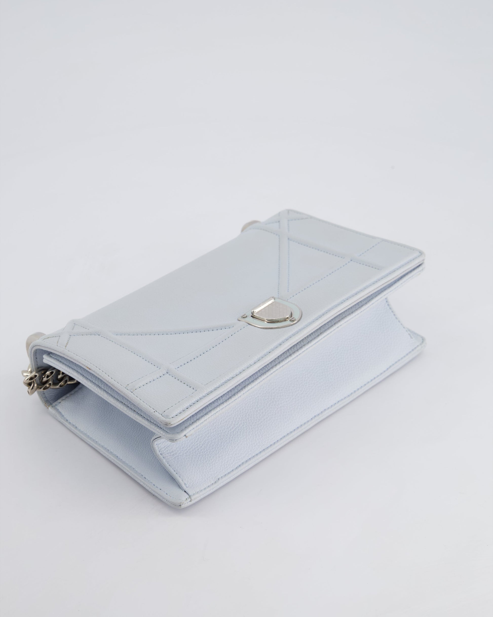 Christian Dior Baby Blue Small Diorama Flap Bag in Grained Calfskin Leather with Silver Hardware