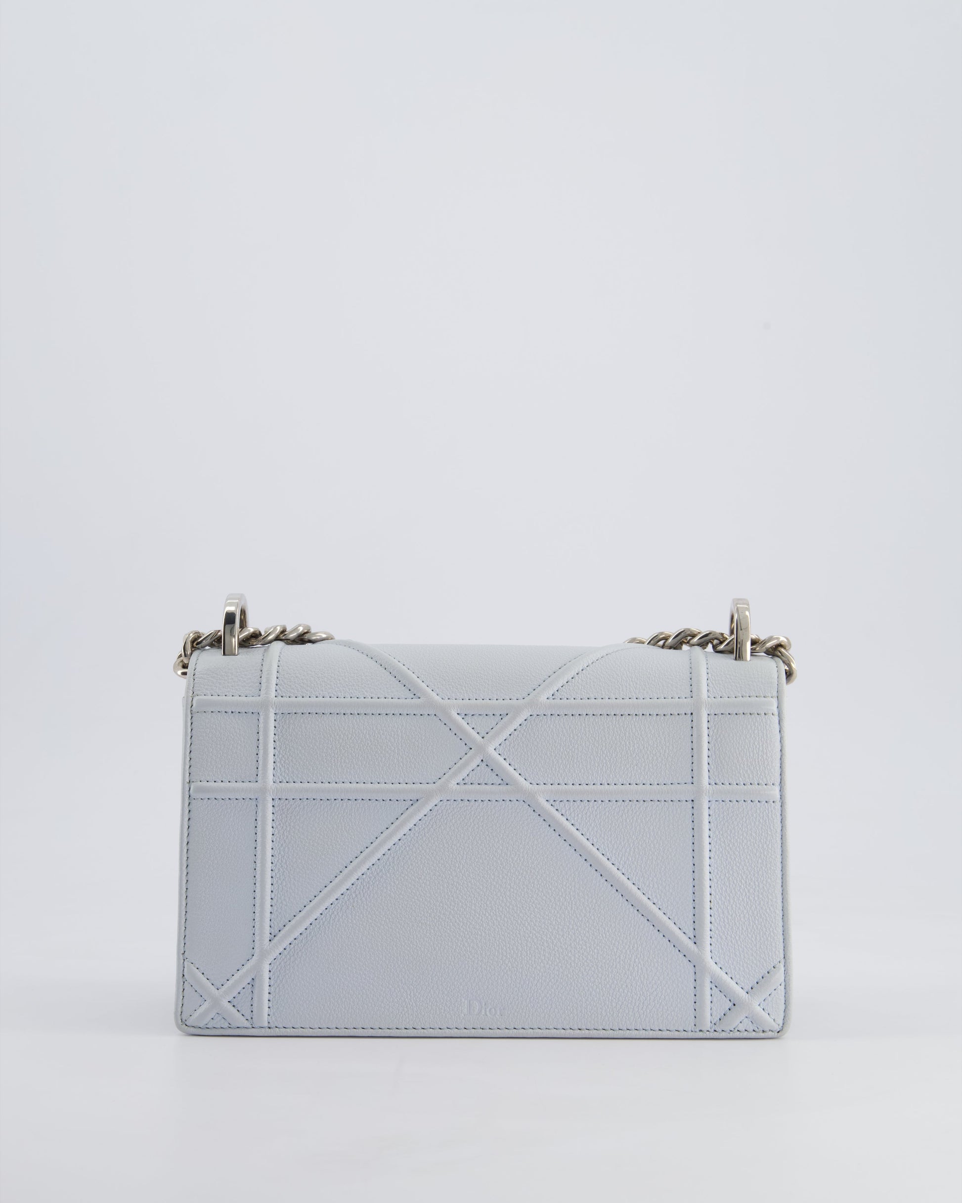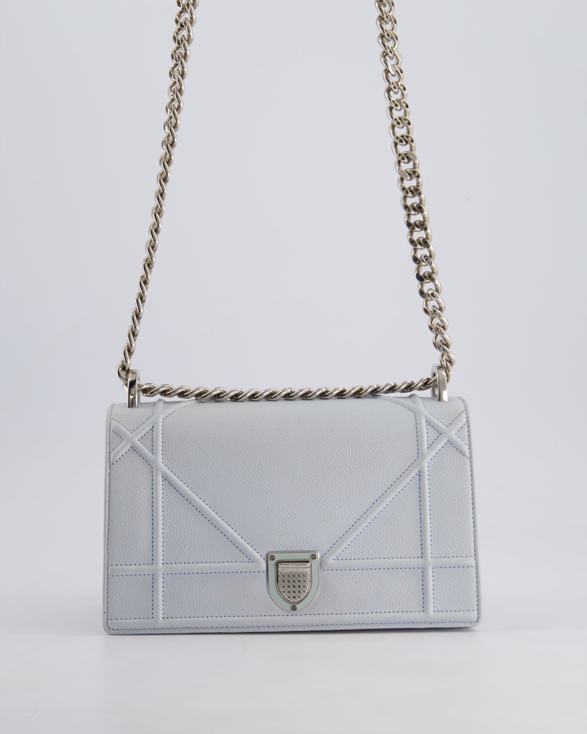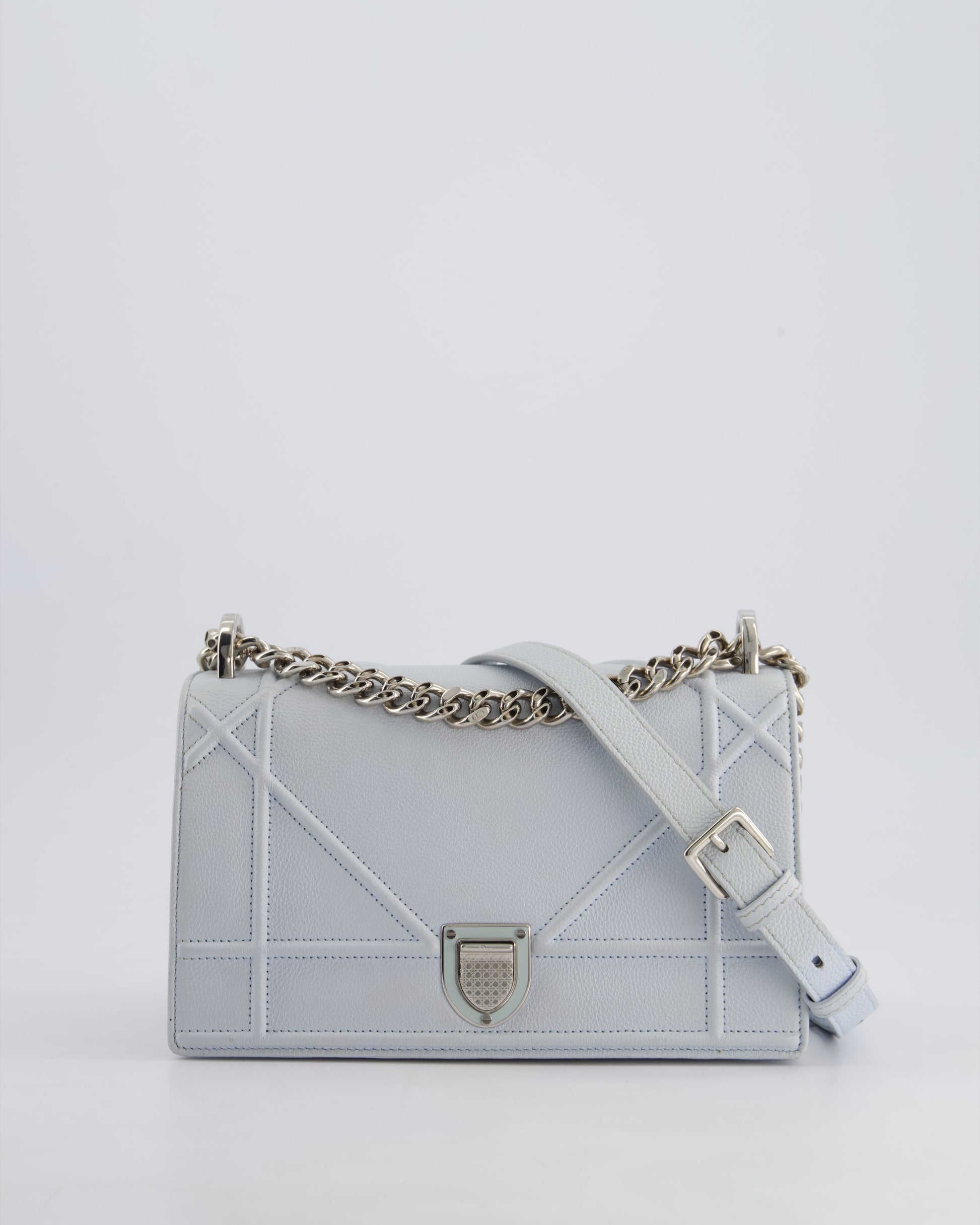 Christian Dior Baby Blue Small Diorama Flap Bag in Grained Calfskin Leather with Silver Hardware