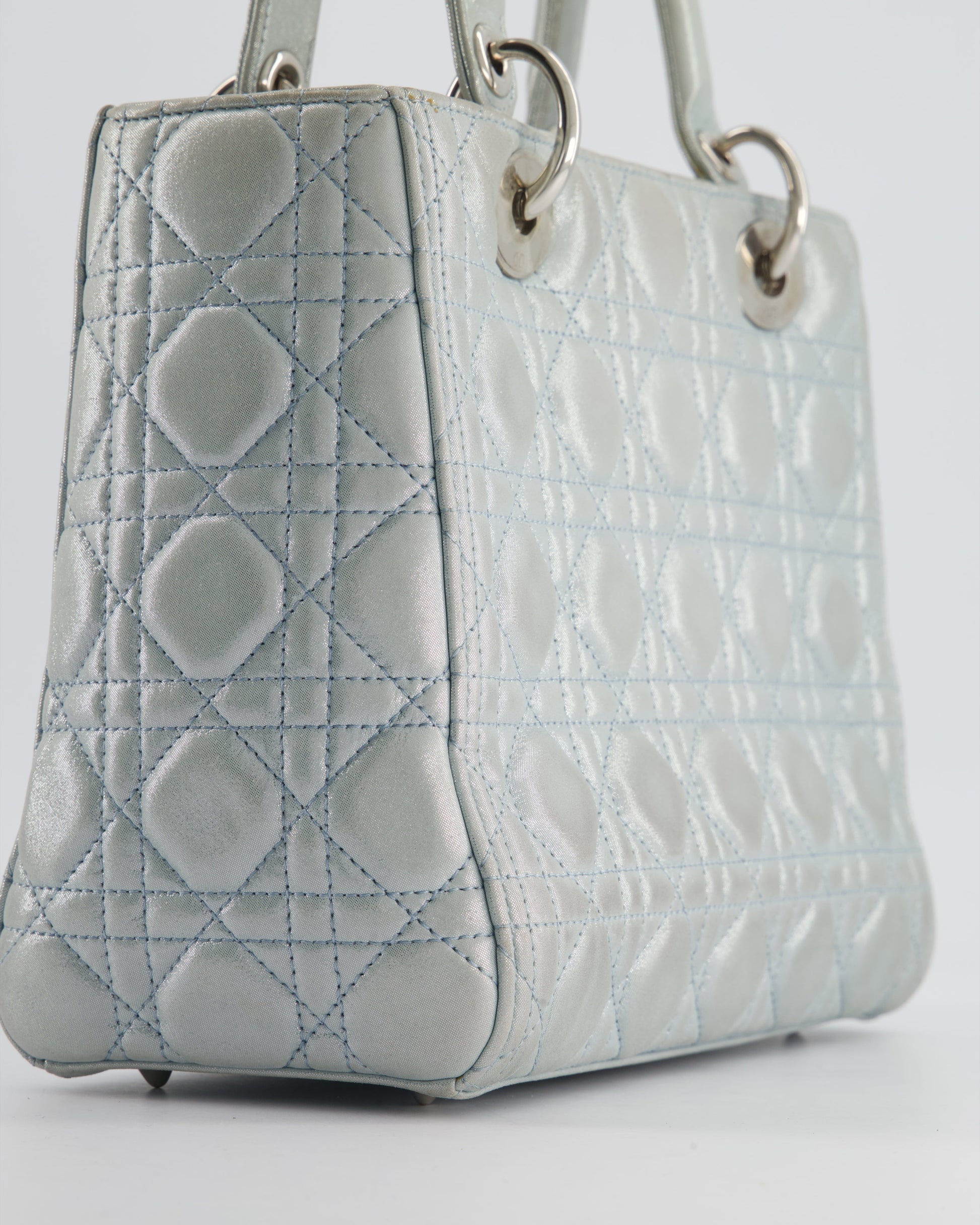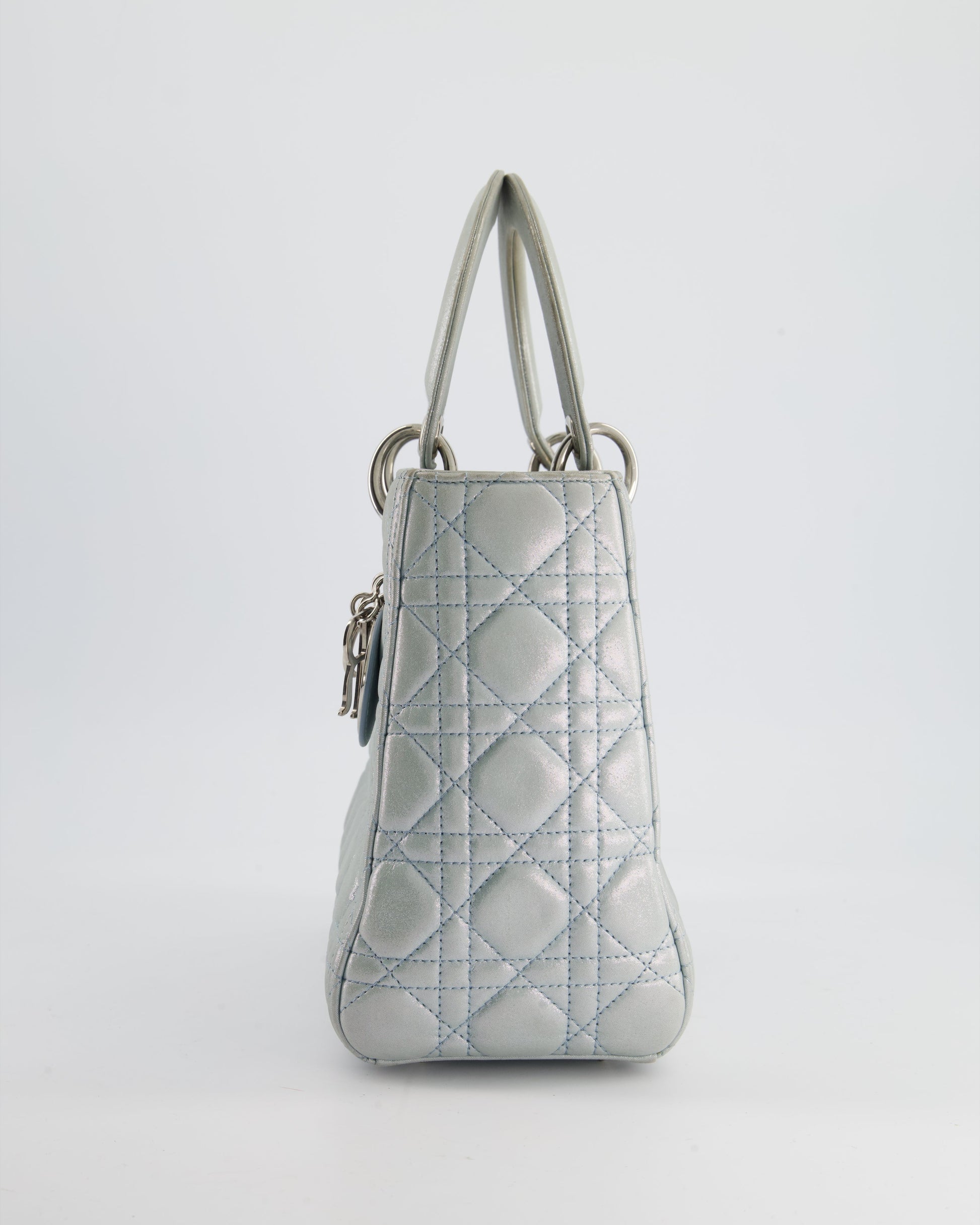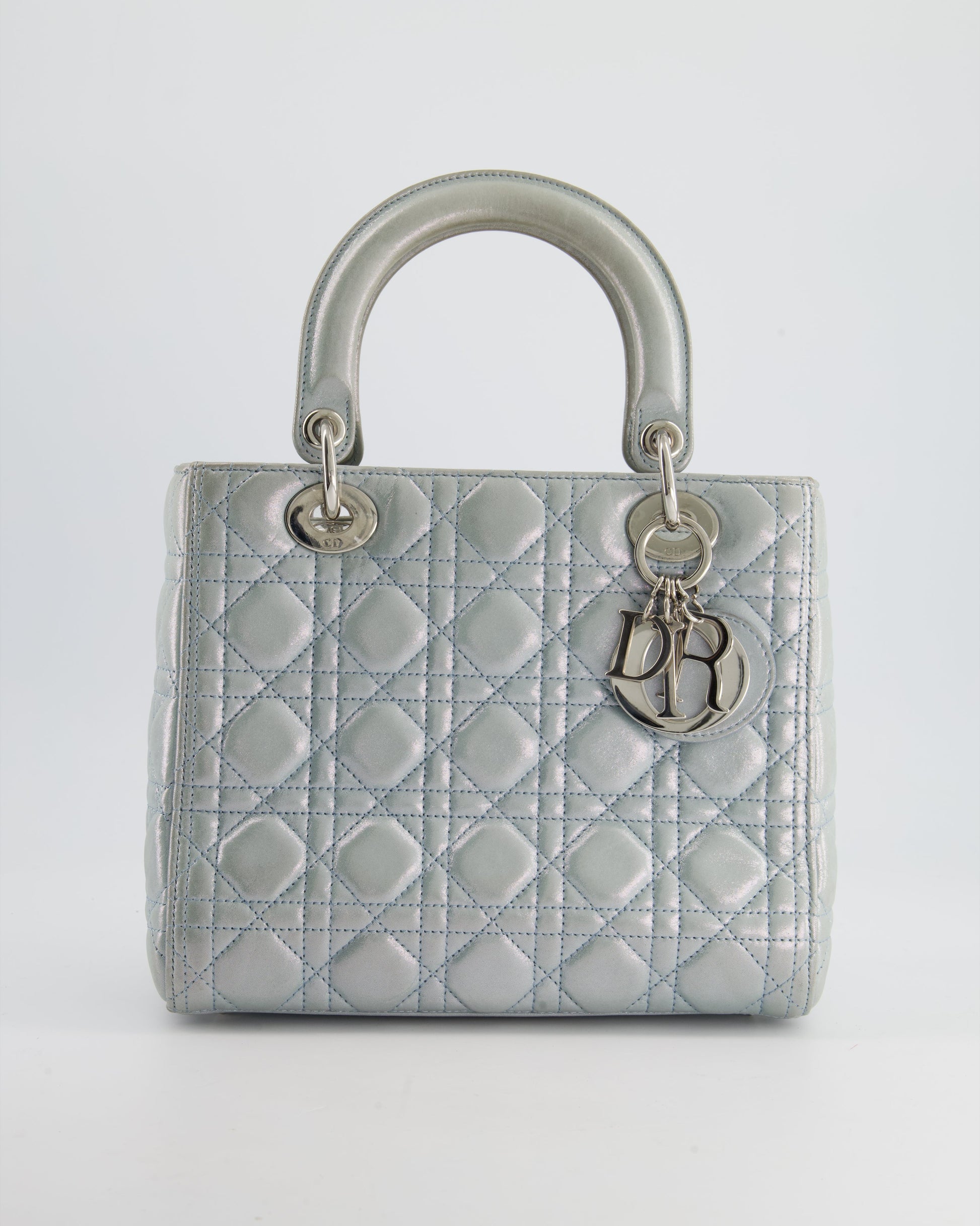Christian Dior Baby Blue Metallic Medium Lady Dior Bag with Silver Hardware