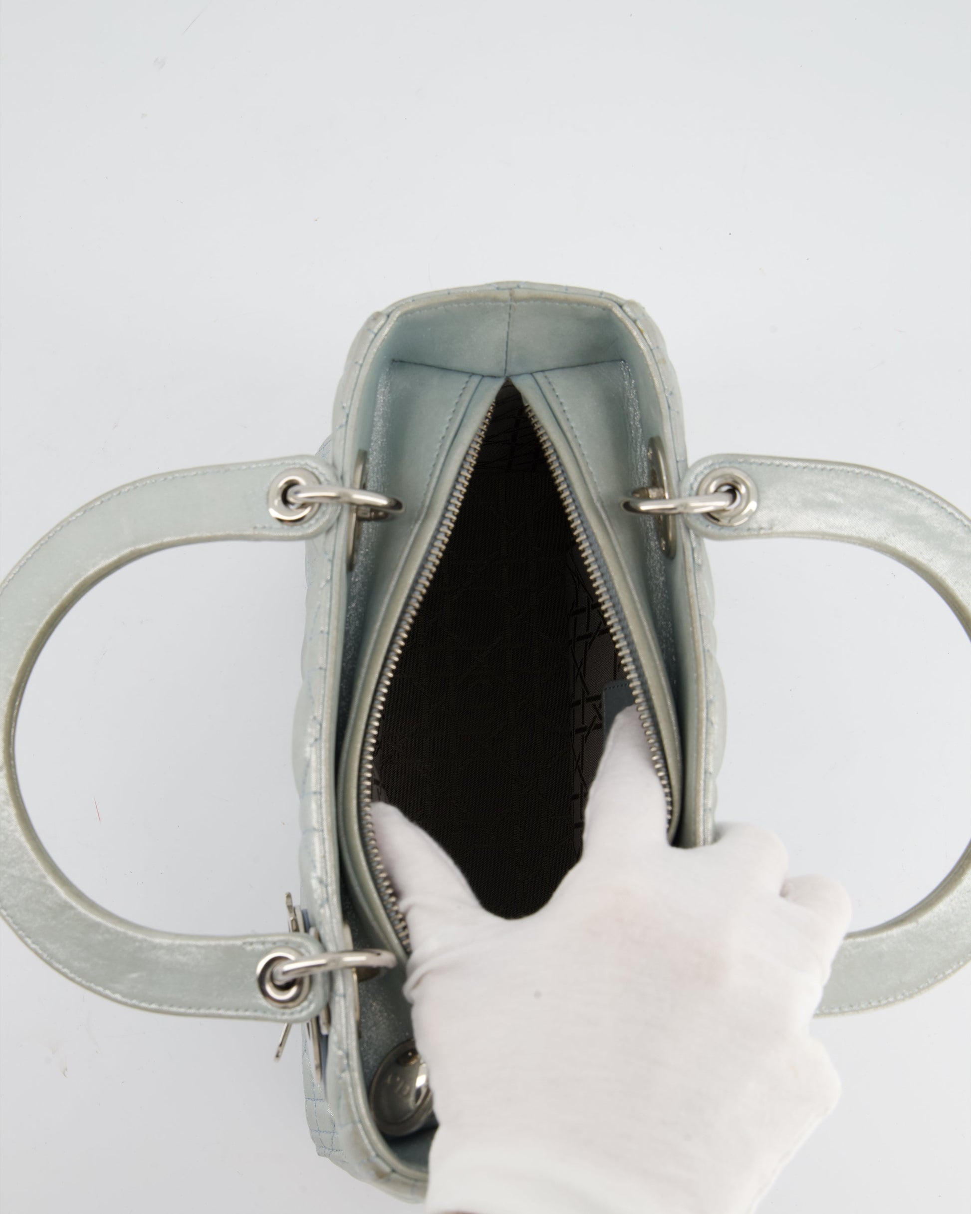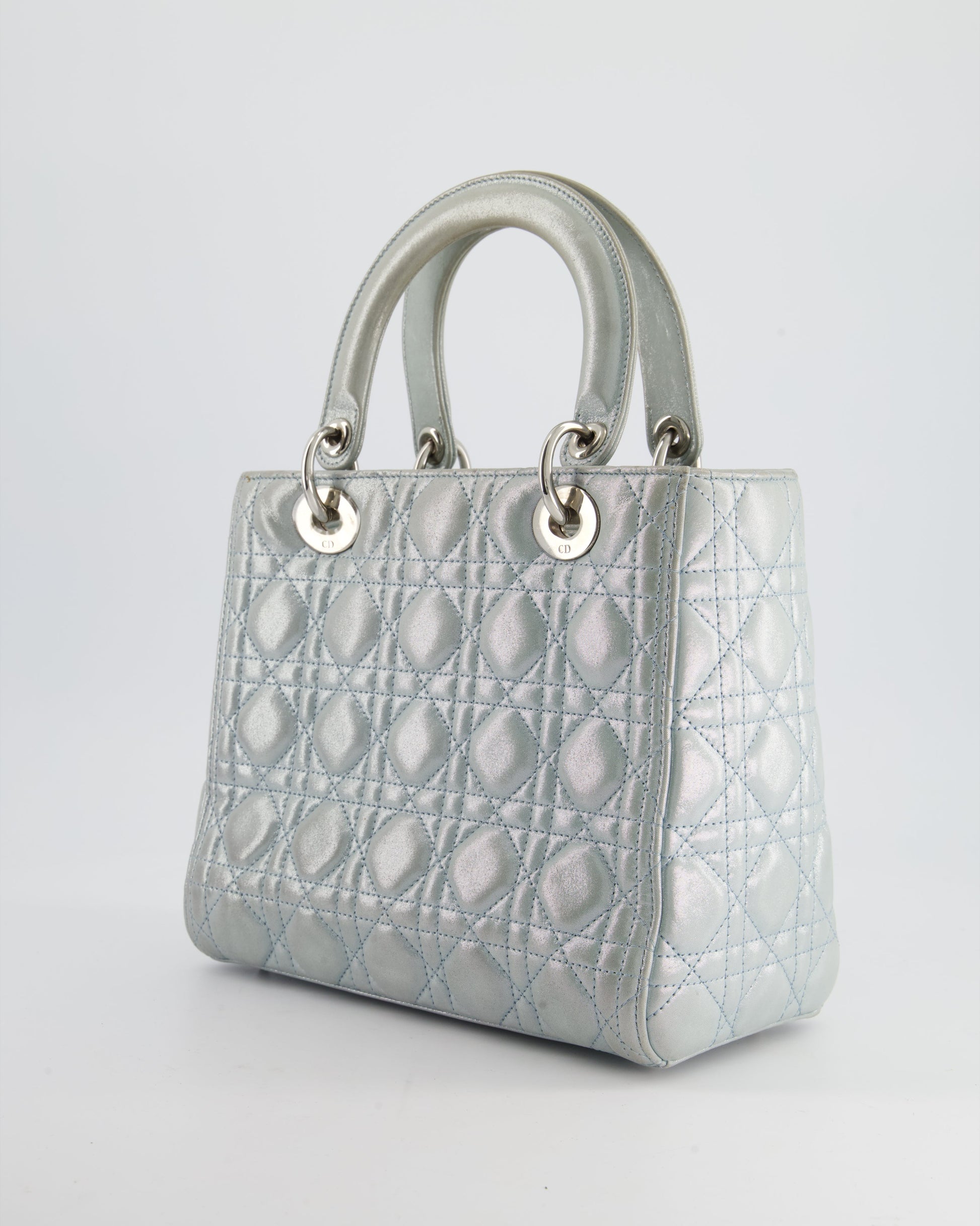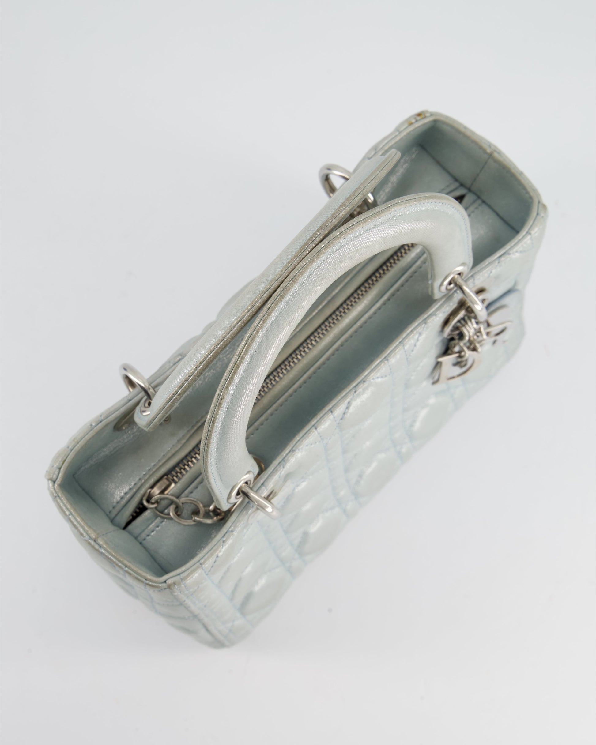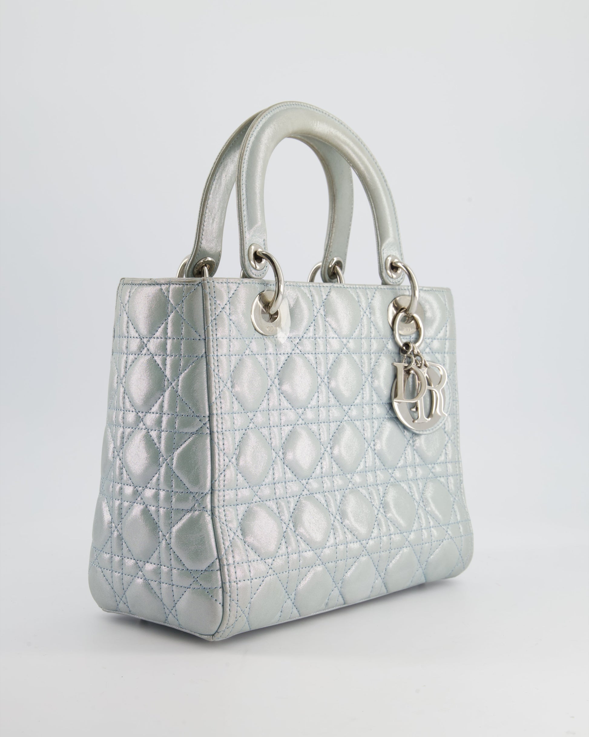 Christian Dior Baby Blue Metallic Medium Lady Dior Bag with Silver Hardware