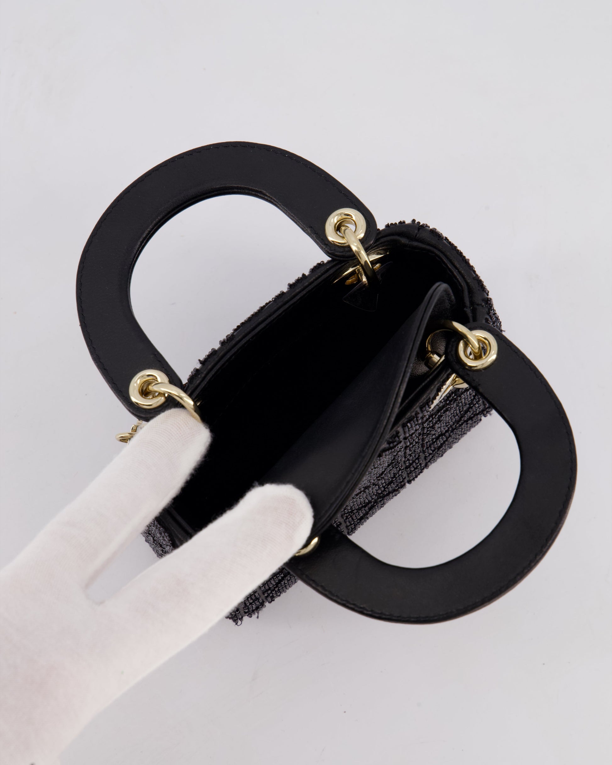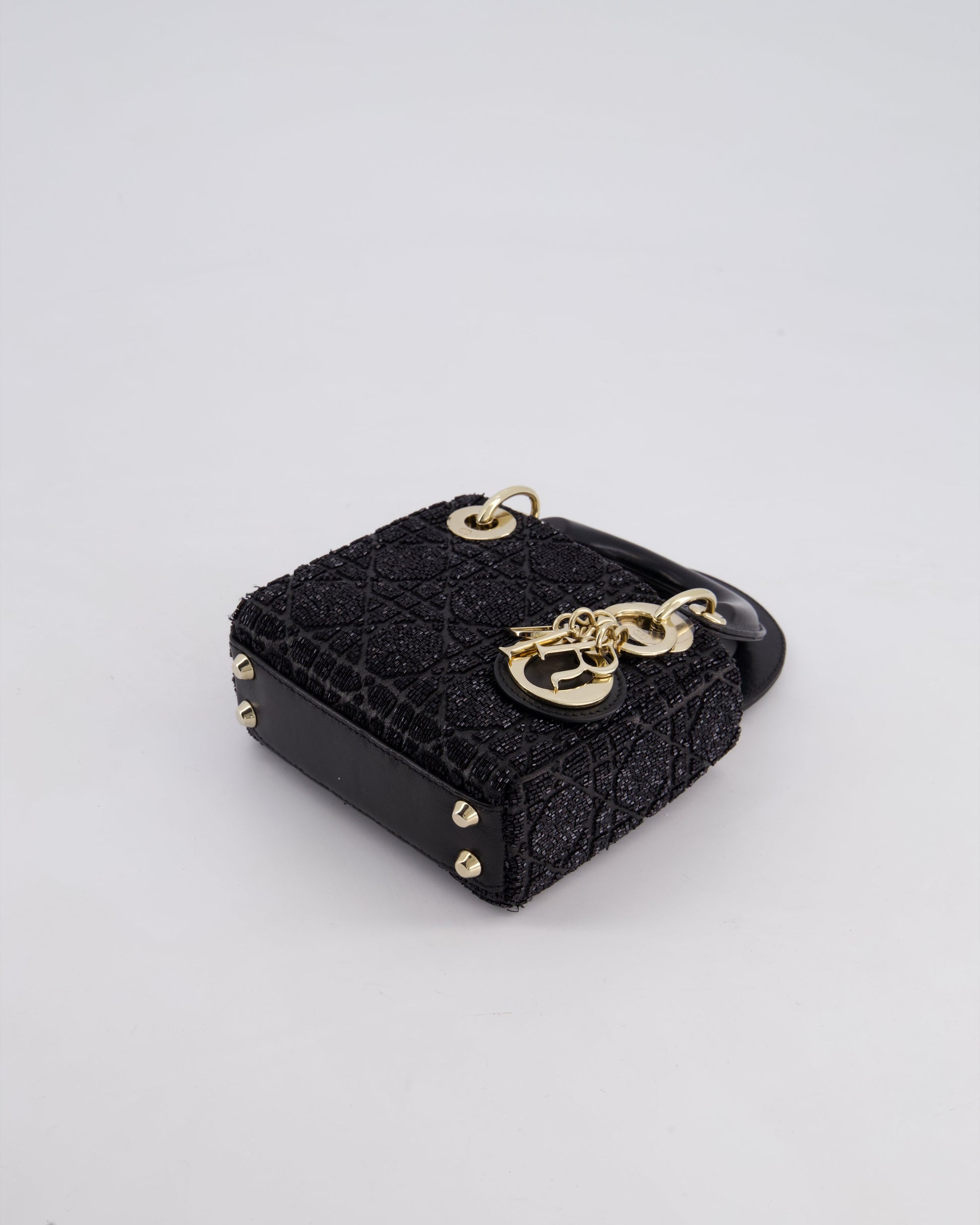 Christian Dior Black Micro Lady Dior Bag In Black Lambskin Leather & Sequins with Champagne Gold Hardware