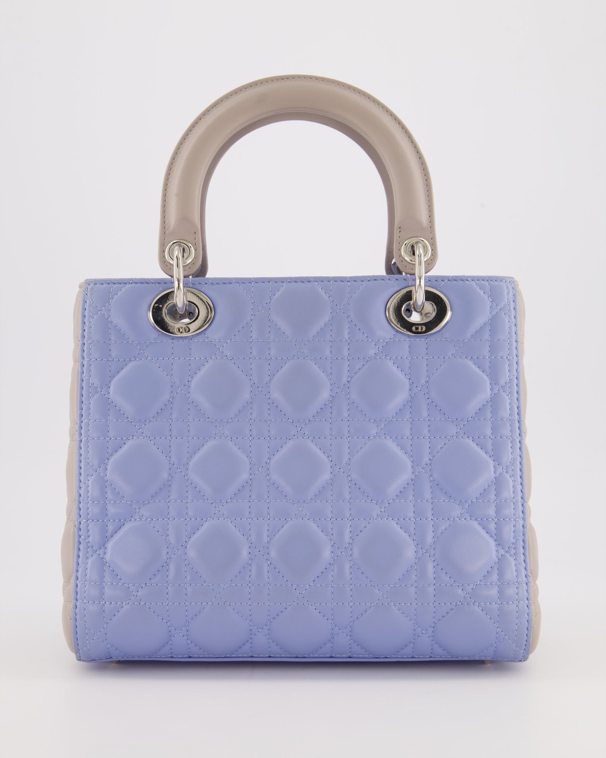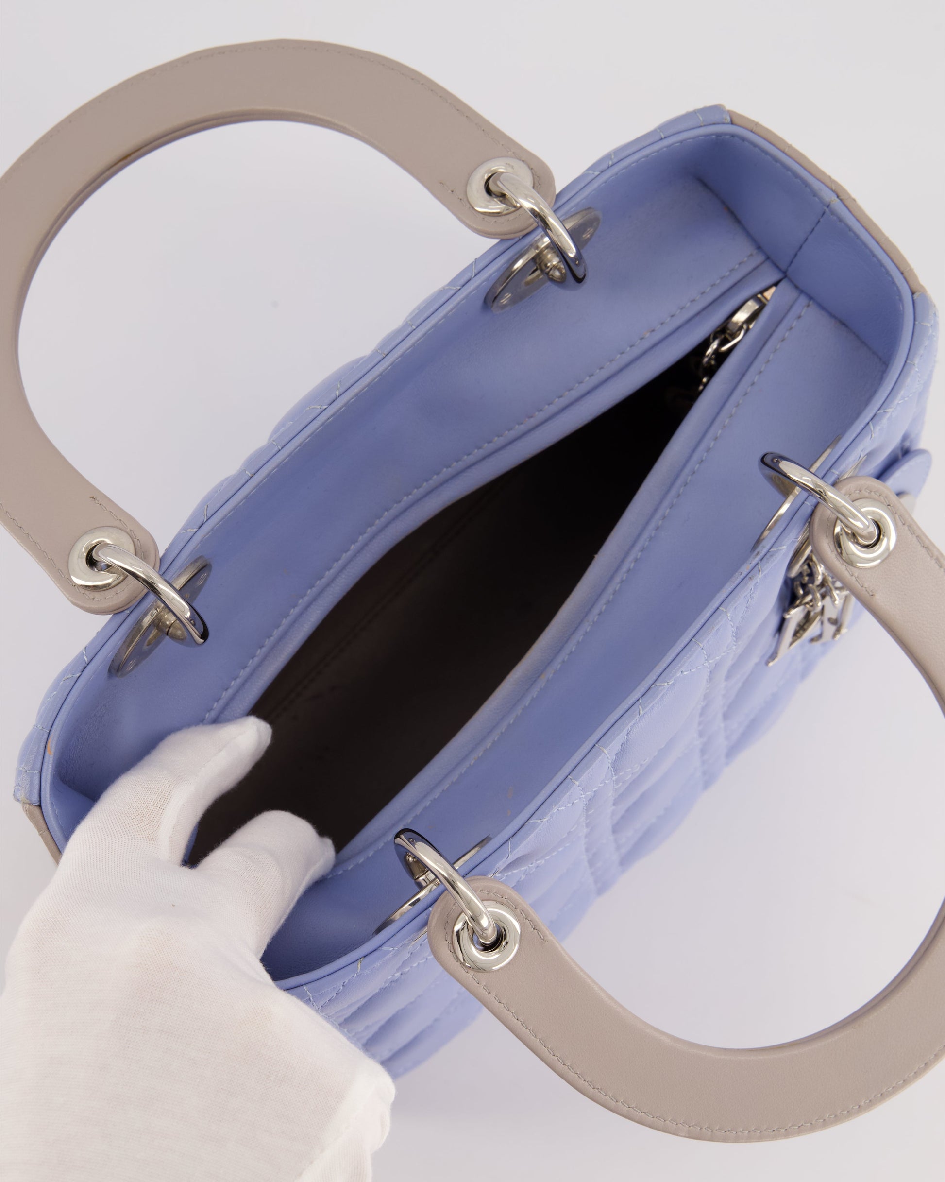 Christian Dior Celeste & Light Grey Medium Lady Dior Bag in Cannage Lambskin with Silver Hardware RRP £5,300