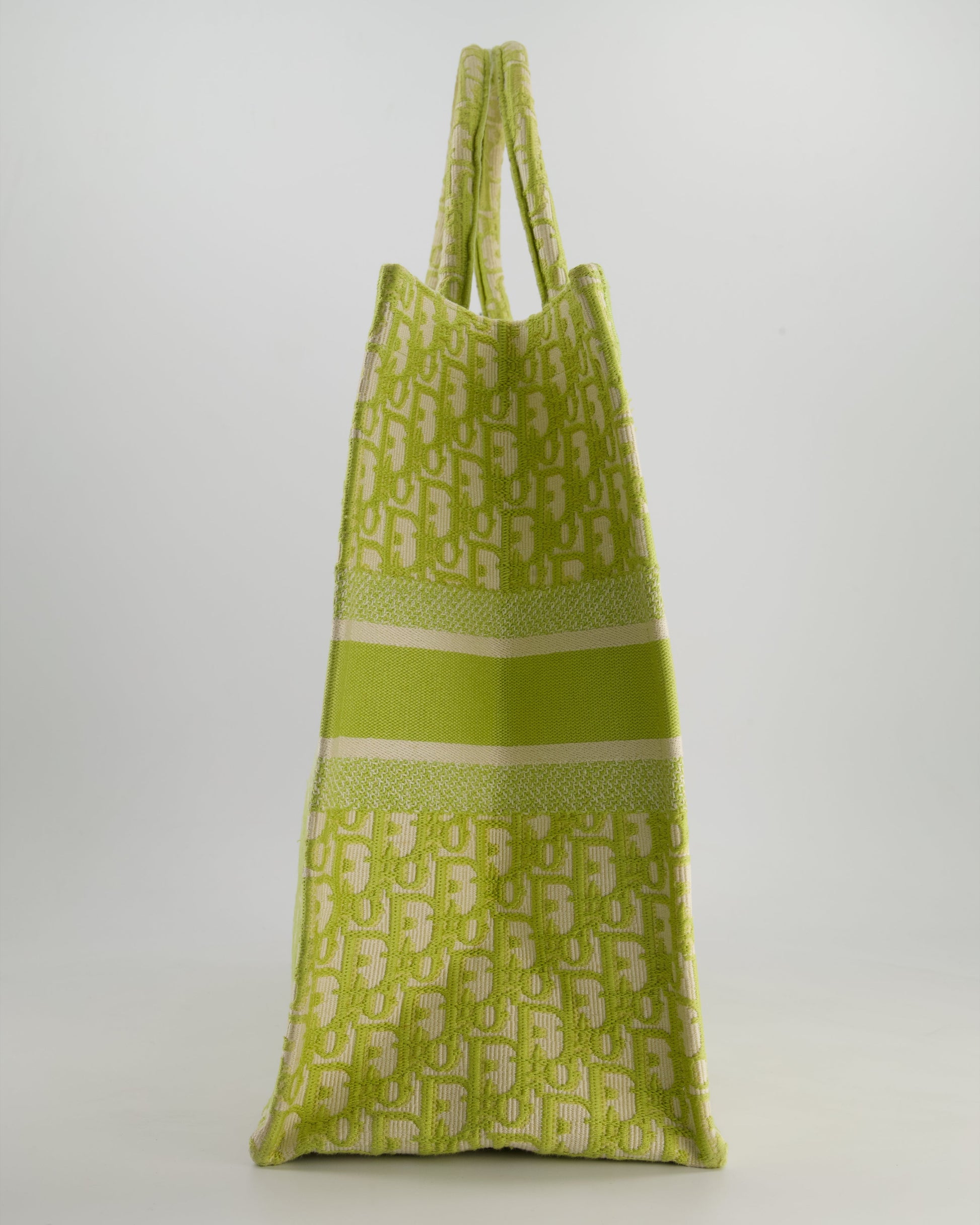 Christian Dior Ecru and Lime Dior Oblique Embroidery Canvas Large Book Tote Bag