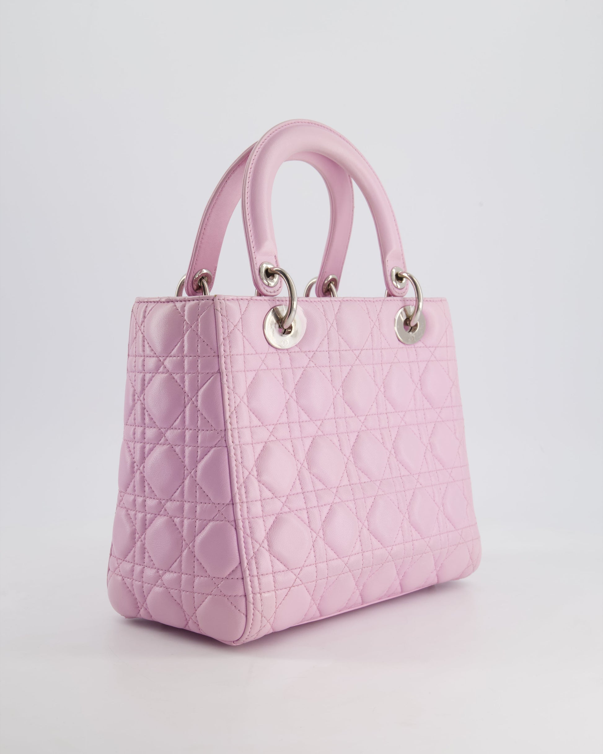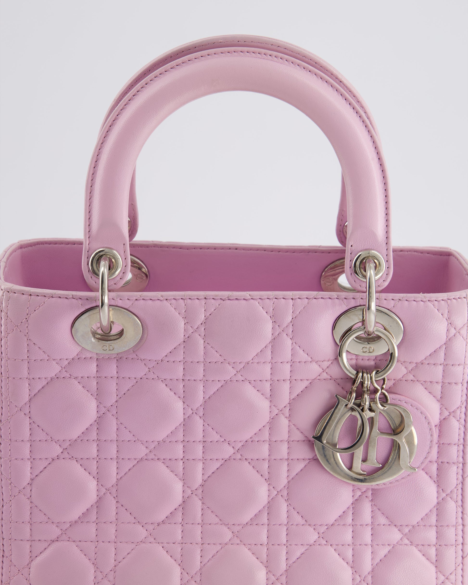 Christian Dior Lilac Medium Lady Dior Bag in Lambskin Leather with Silver Hardware RRP £5,300