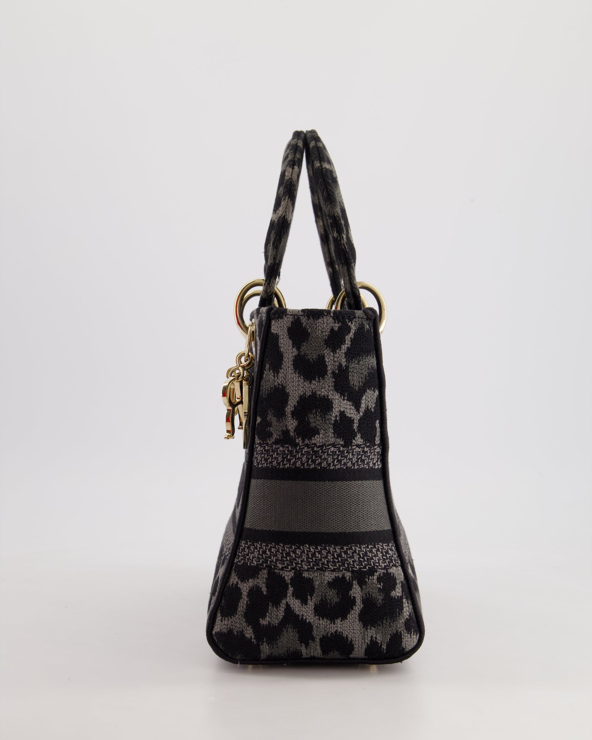 Christian Dior Medium Lady D-Lite in Grey & Black Mizza Embroidery with Champagne Gold Hardware RRP £3700