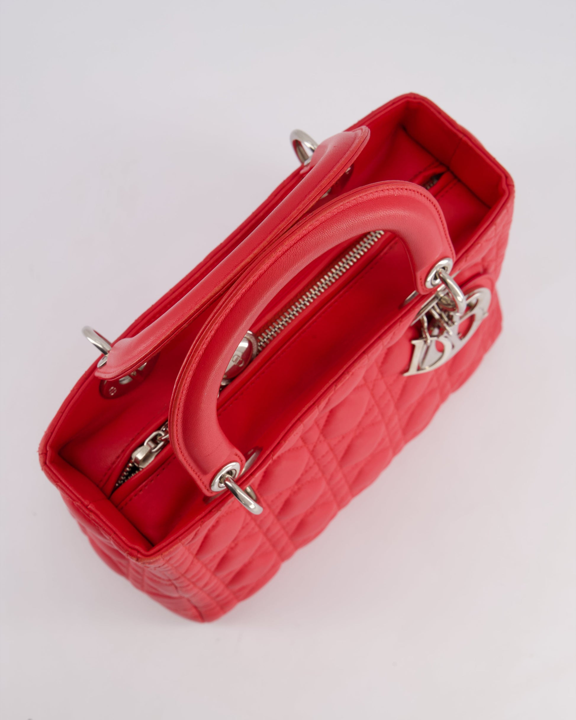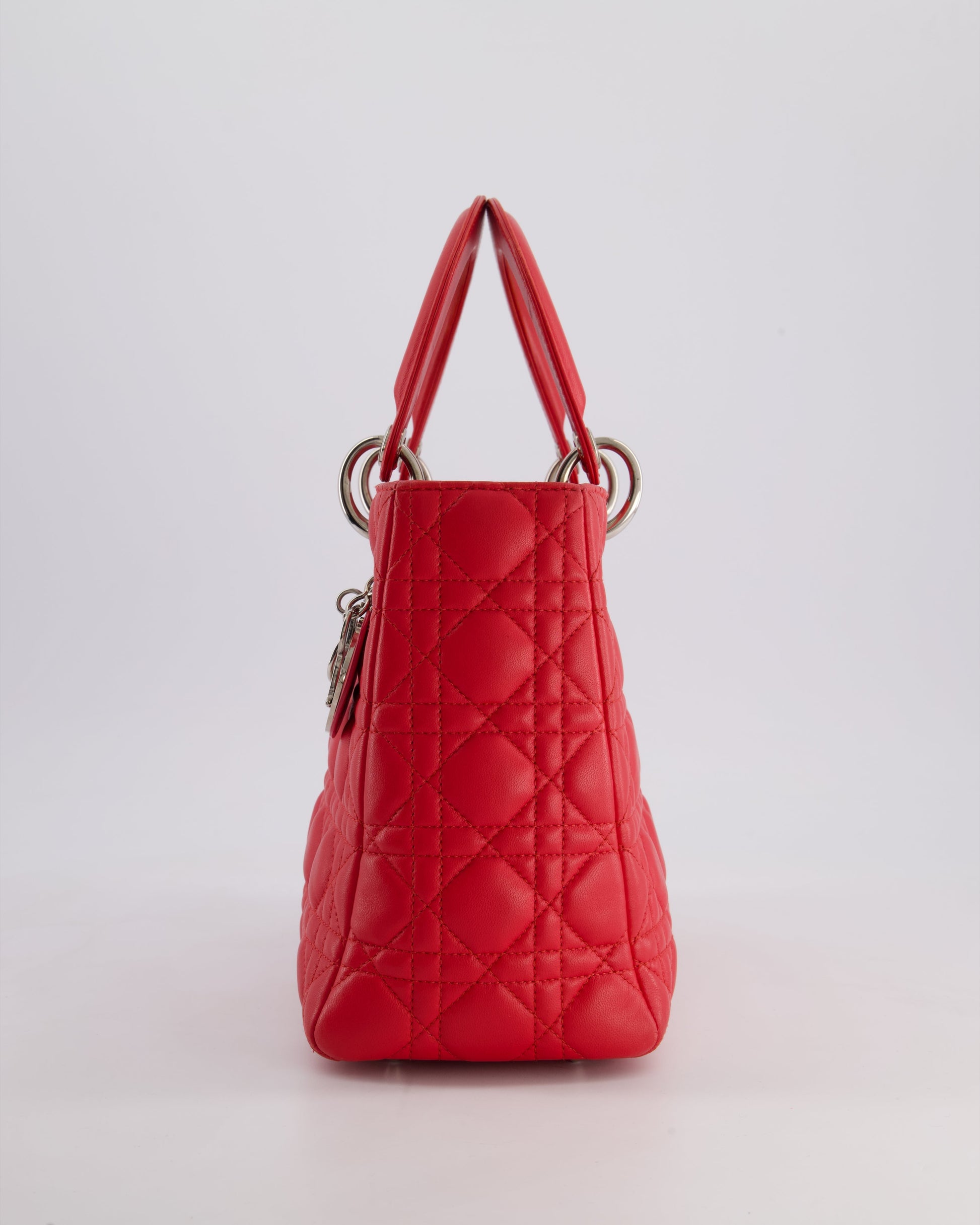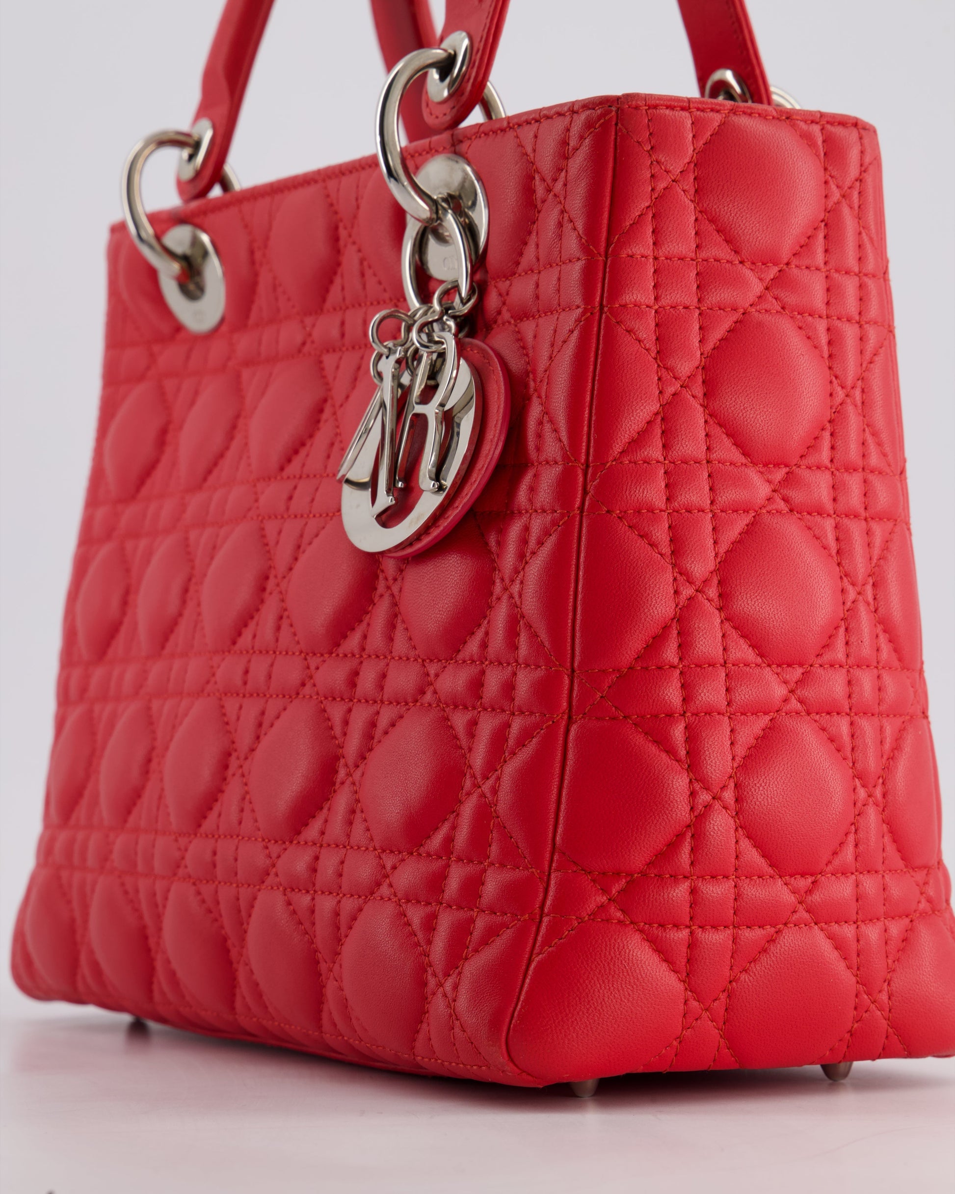 *FIRE PRICE* Christian Dior Strawberry Red Medium Lady Dior Bag in Cannage Lambskin with Silver Hardware