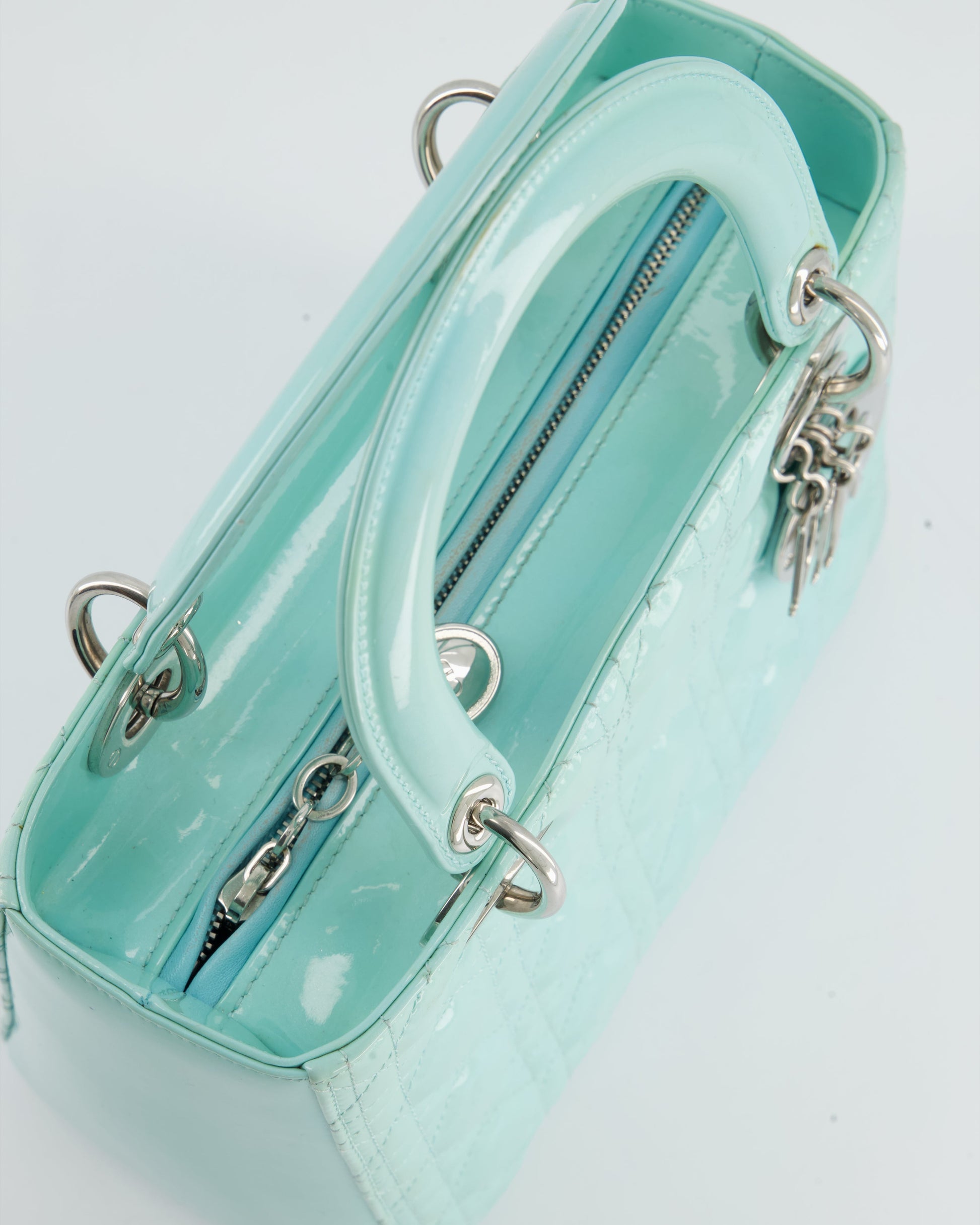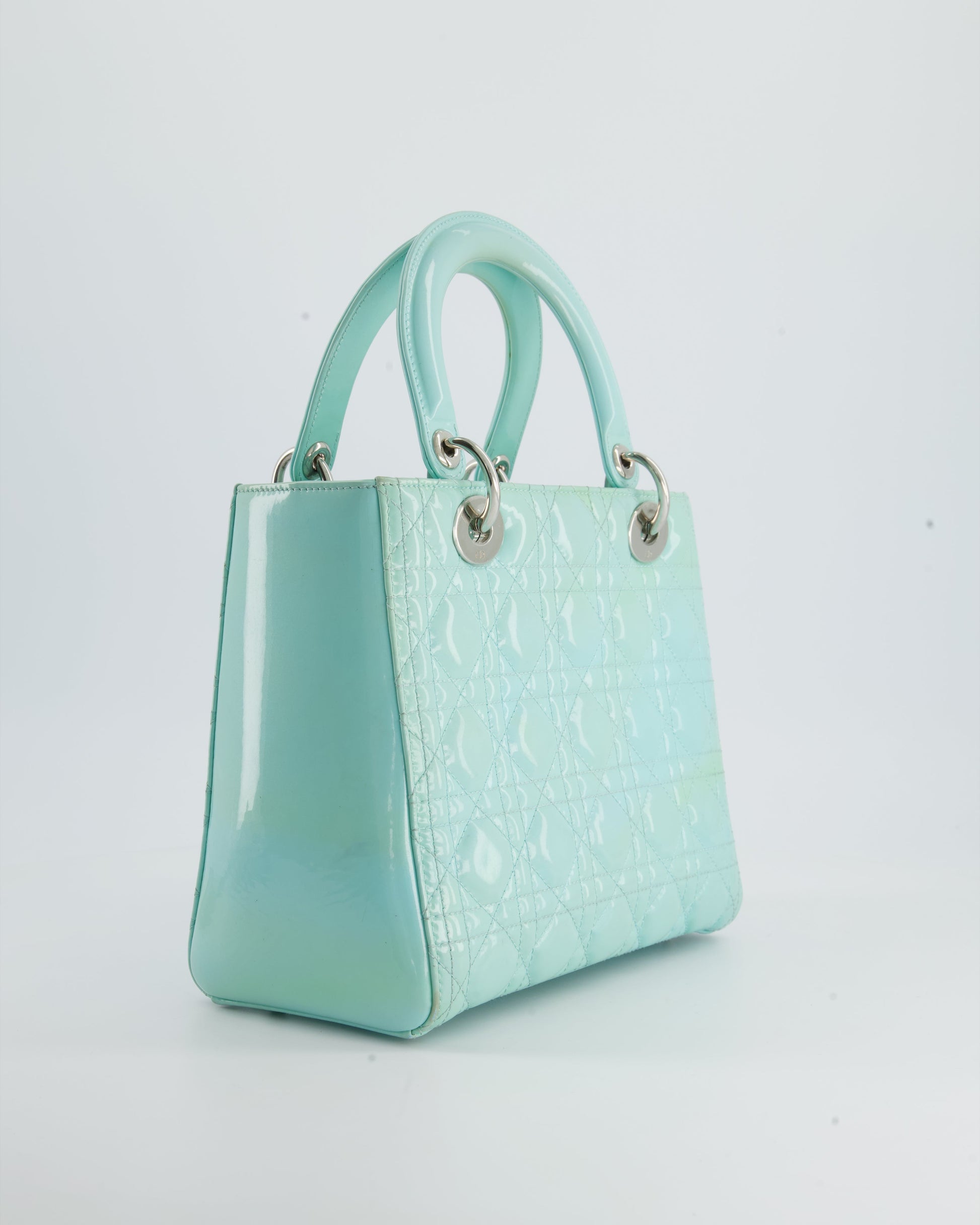 Christian Dior Tiffany Blue Medium Lady Dior Bag Patent with Silver Hardware RRP £5300
