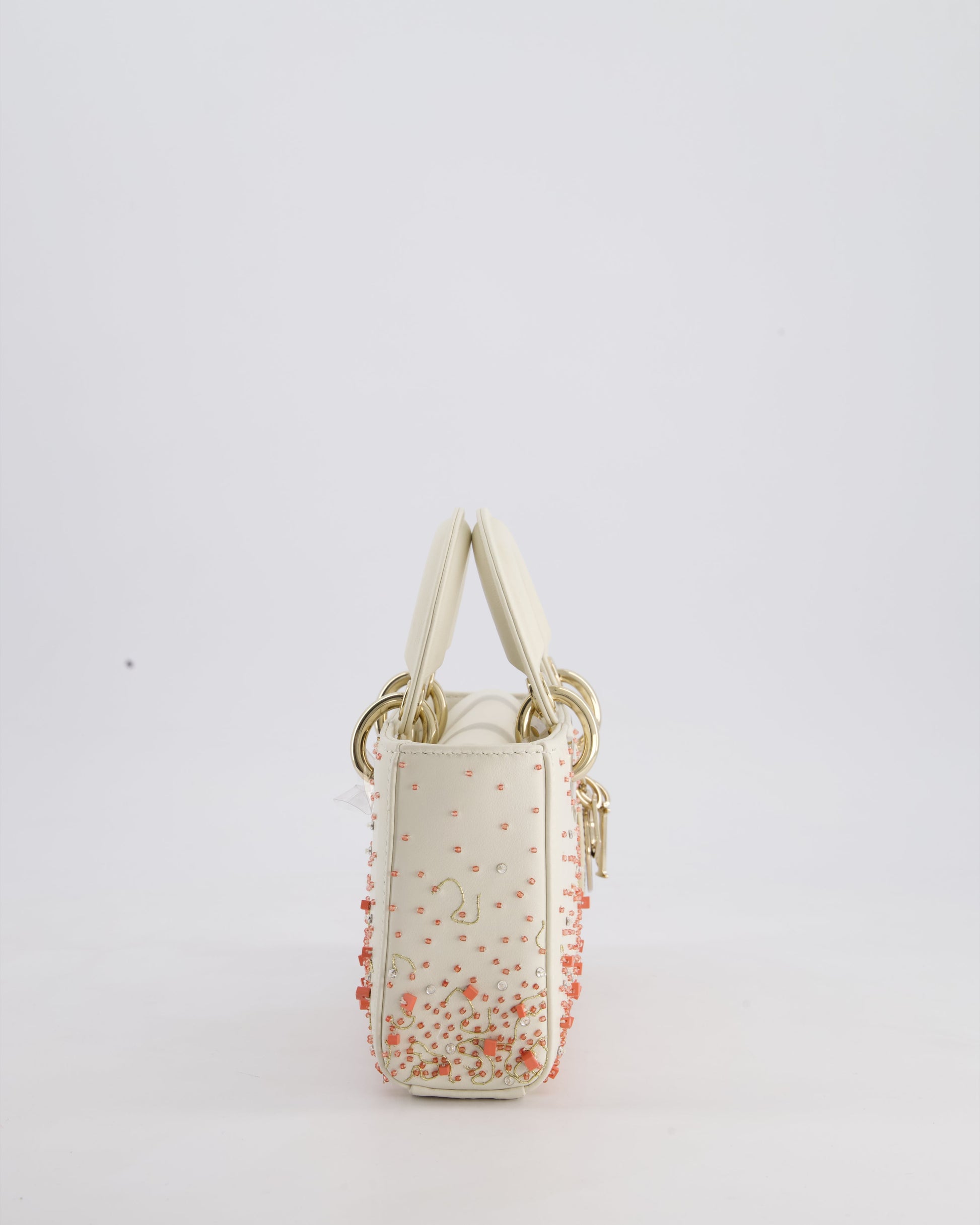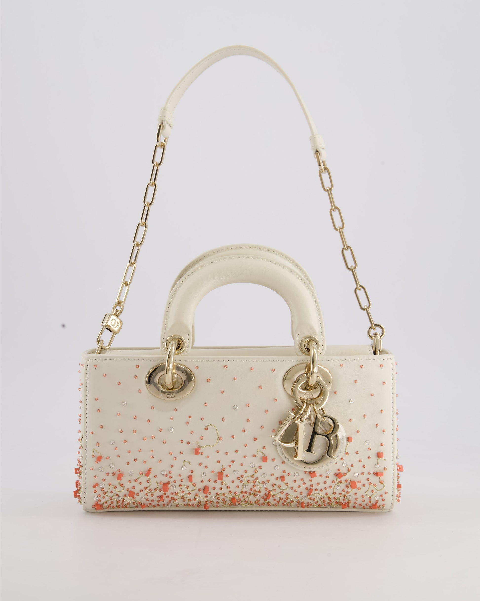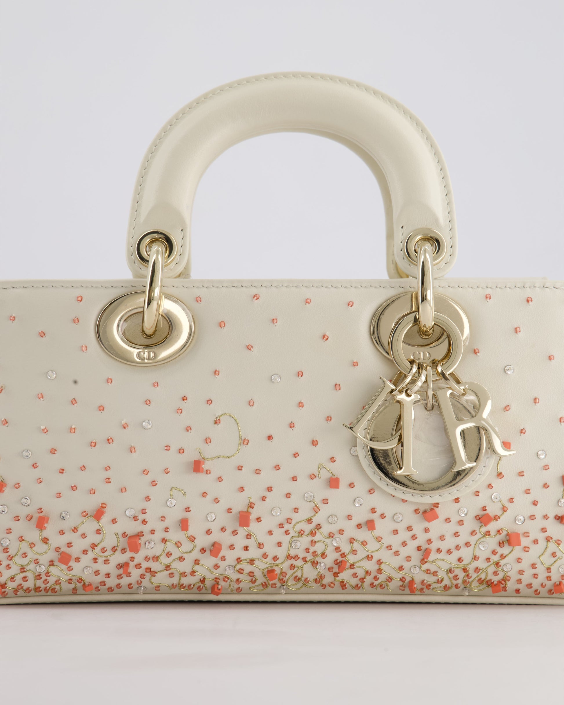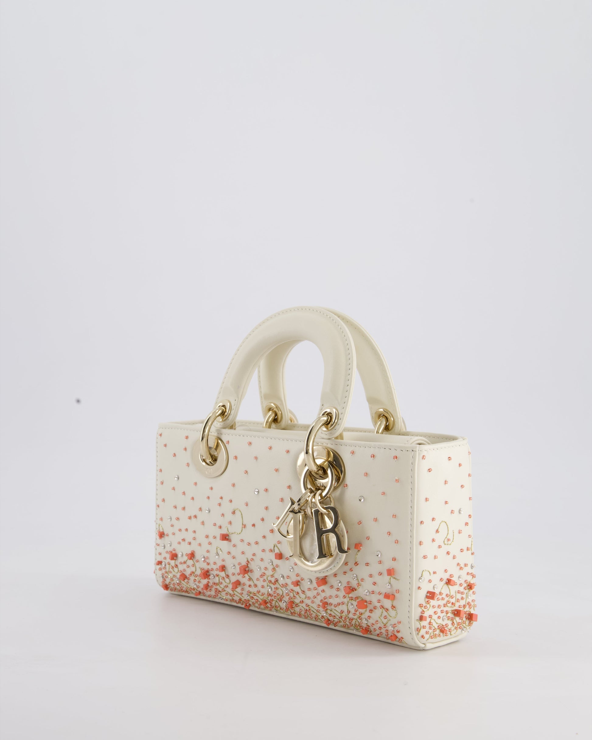Christian Dior White Coral Embroidery Gradient Lady D-Joy Bag with Gold Hardware