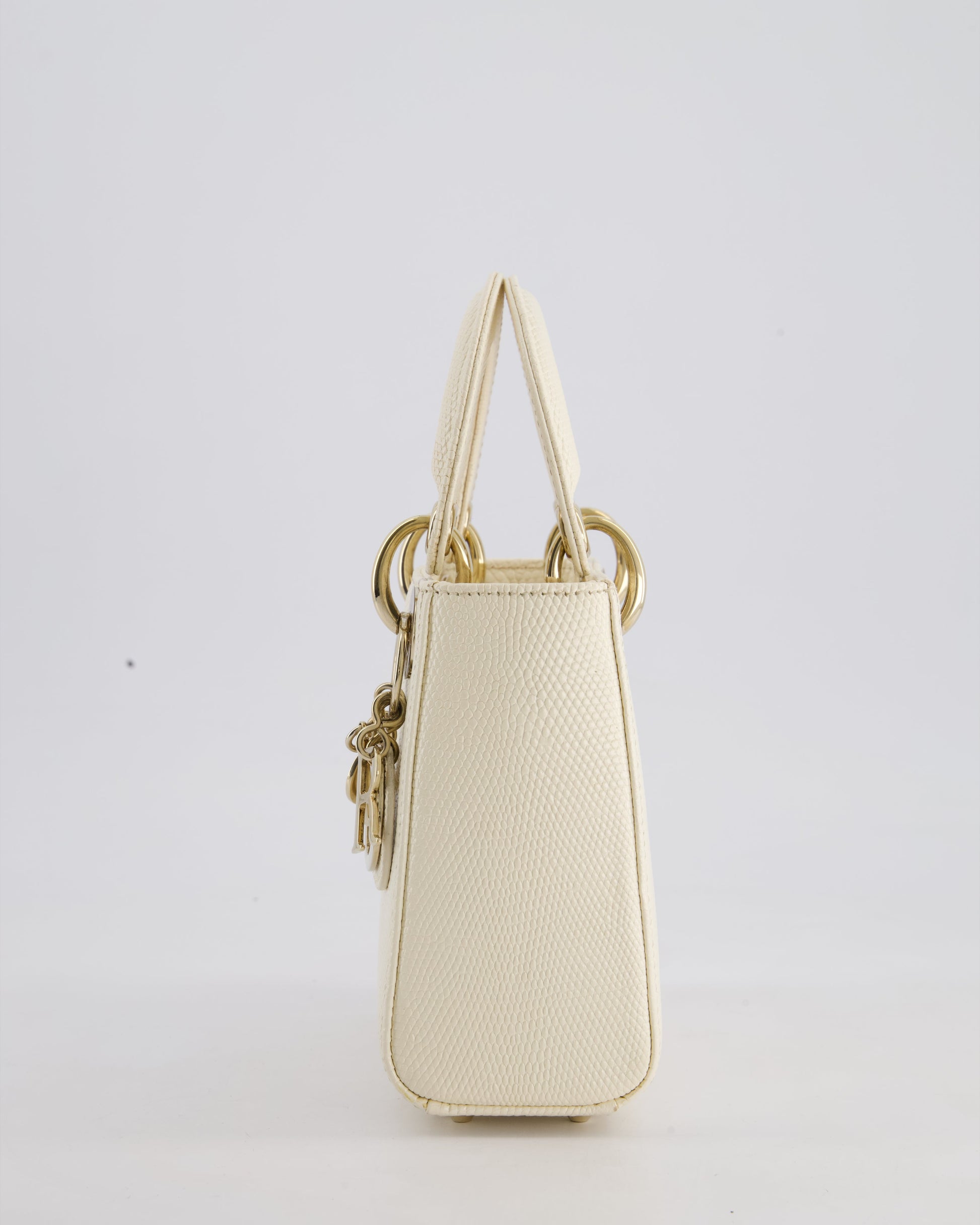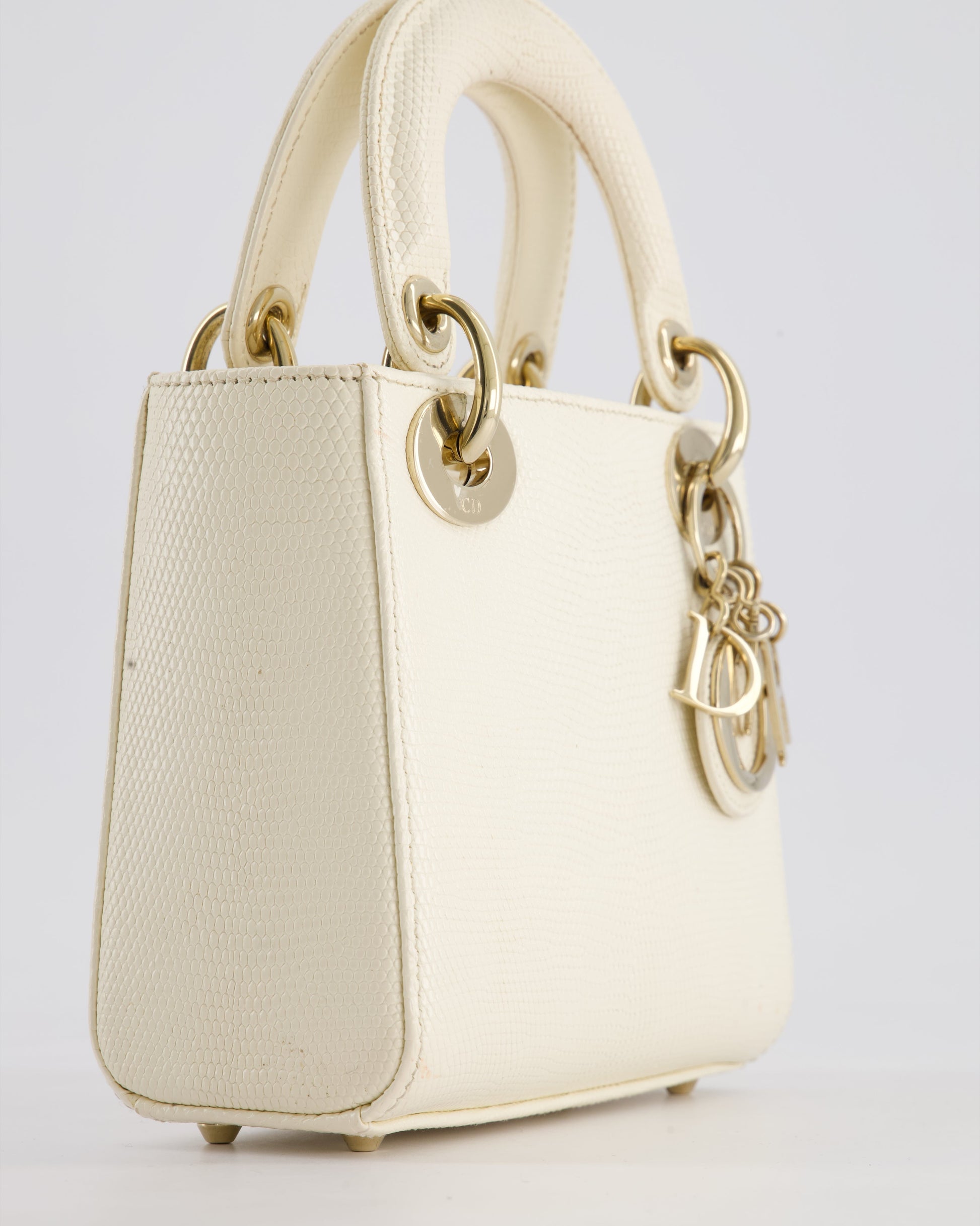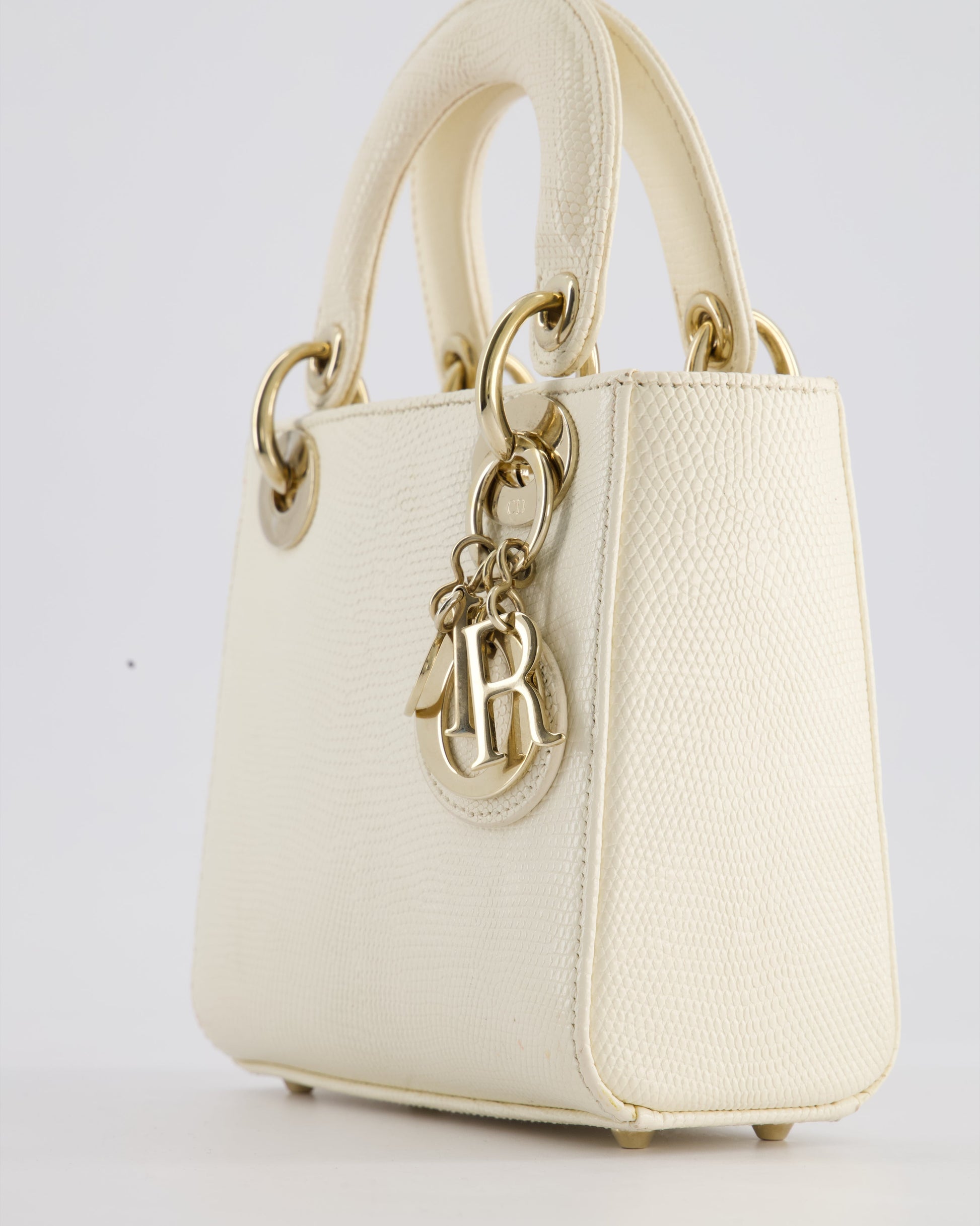 Christian Dior White Lizard Mini Lady Dior Bag with Gold Hardware