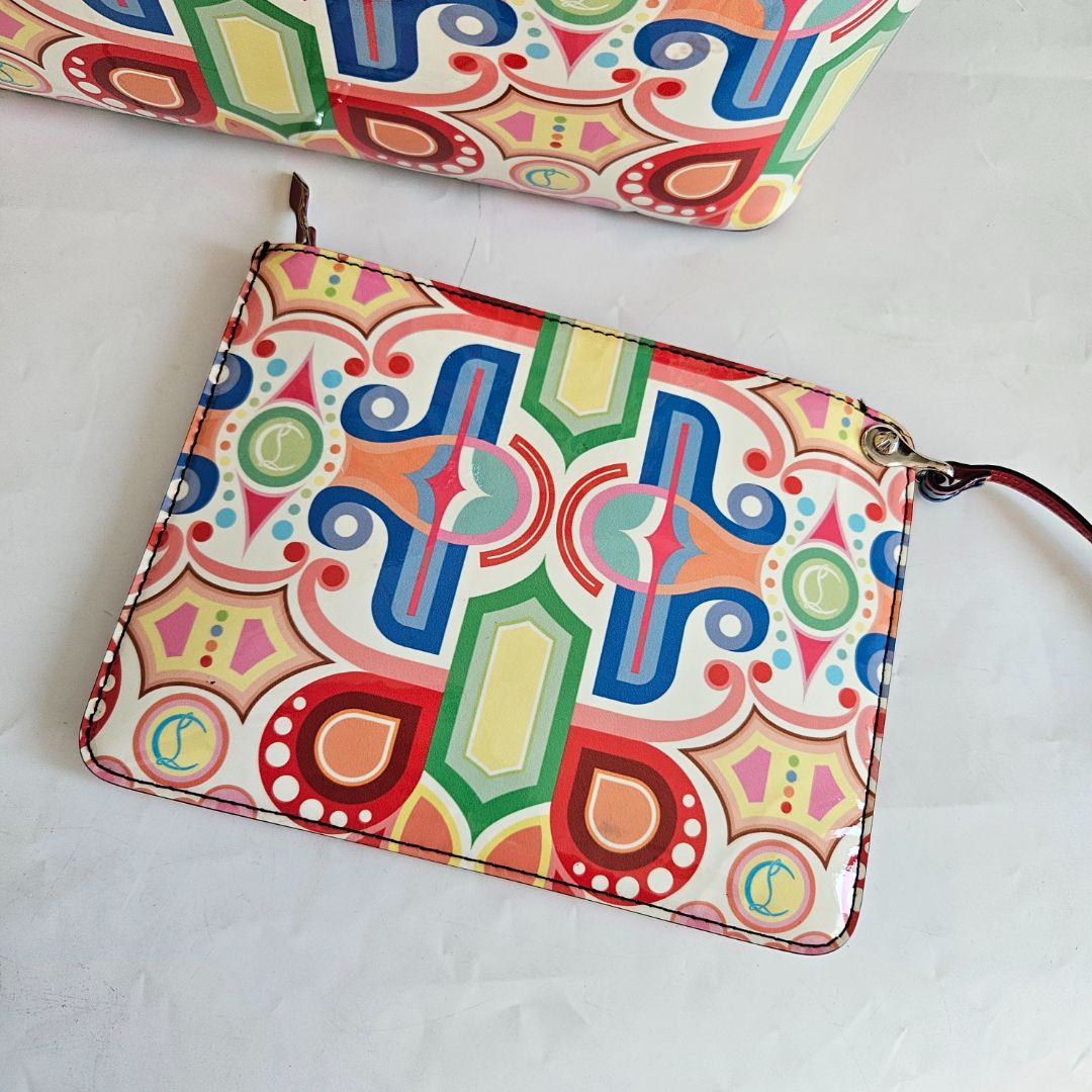 Christian Louboutin printed patent multicolor tote bag, featuring studded detail, two top handles and a removable zip pouch