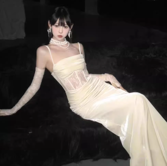 Christmas atmosphere herringbone sling lace splicing velvet long skirt ED0802
