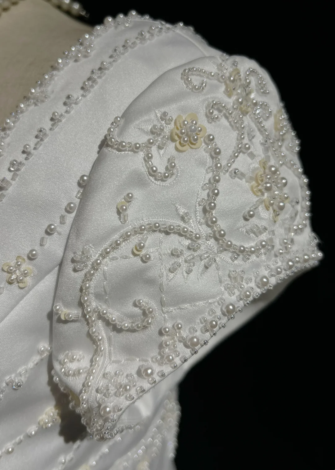 Classic Bridal Gown A line Square Neck Short Sleeves Satin White Wedding Dresses Minimalist Bridal Gowns DH648