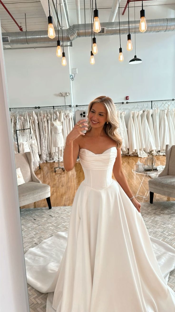 Classic Bridal Gown A Line Sweetheart Satin White Wedding Dresses Minimalist Bridal Gowns DP1319