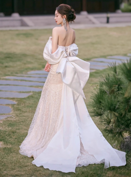 Classic Bridal Gown Mermaid Off The Shoulder Sequin White Wedding Dresses Minimalist Bridal Gowns DP1660