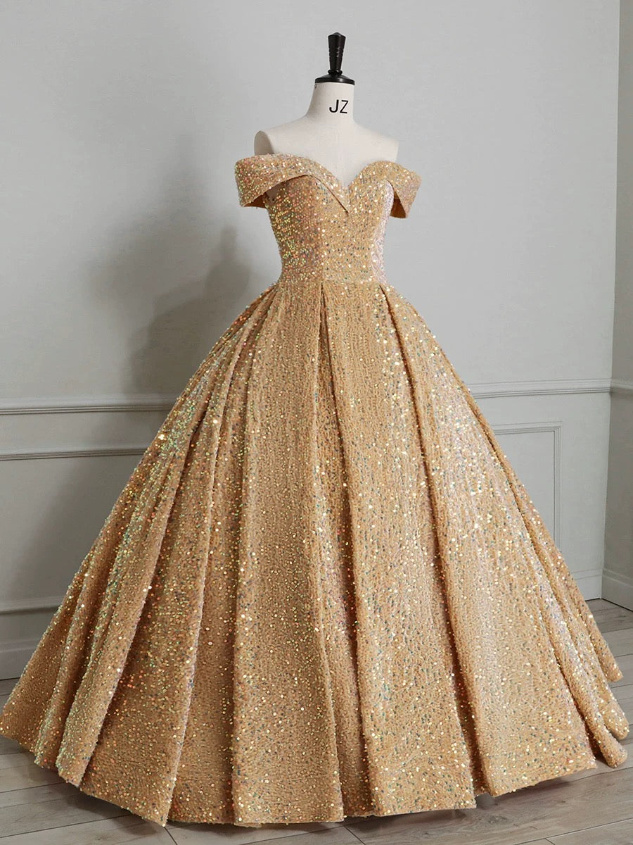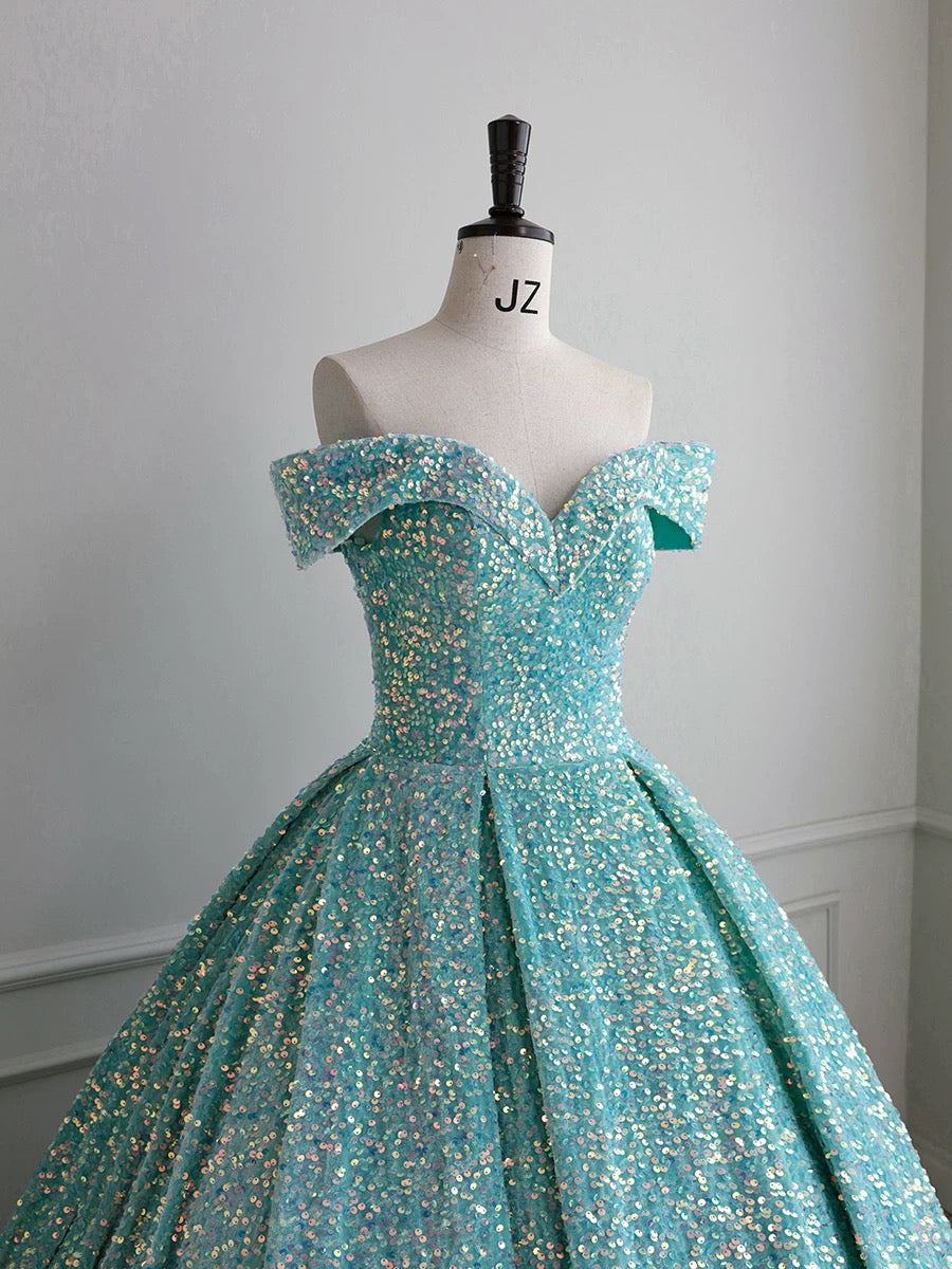 Classy Ball Gown Off The Shoulder Blue Sequin Evening Dress Long Prom Dresses H2889