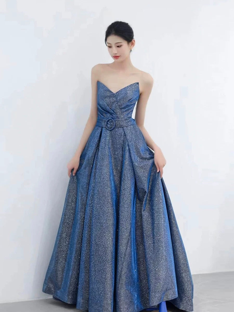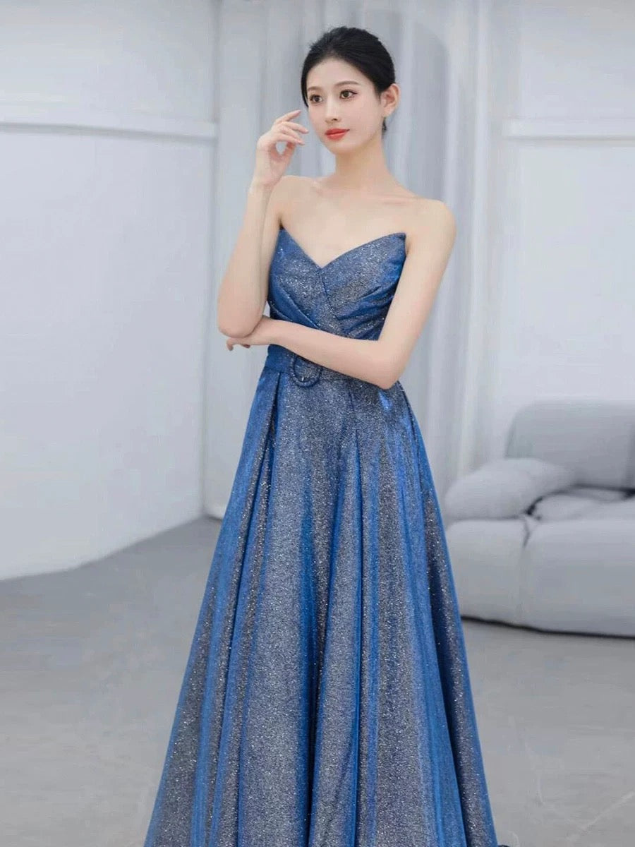 Classy Ball Gown Sweetheart Blue Sequin Evening Dress Long Prom Dresses H2871