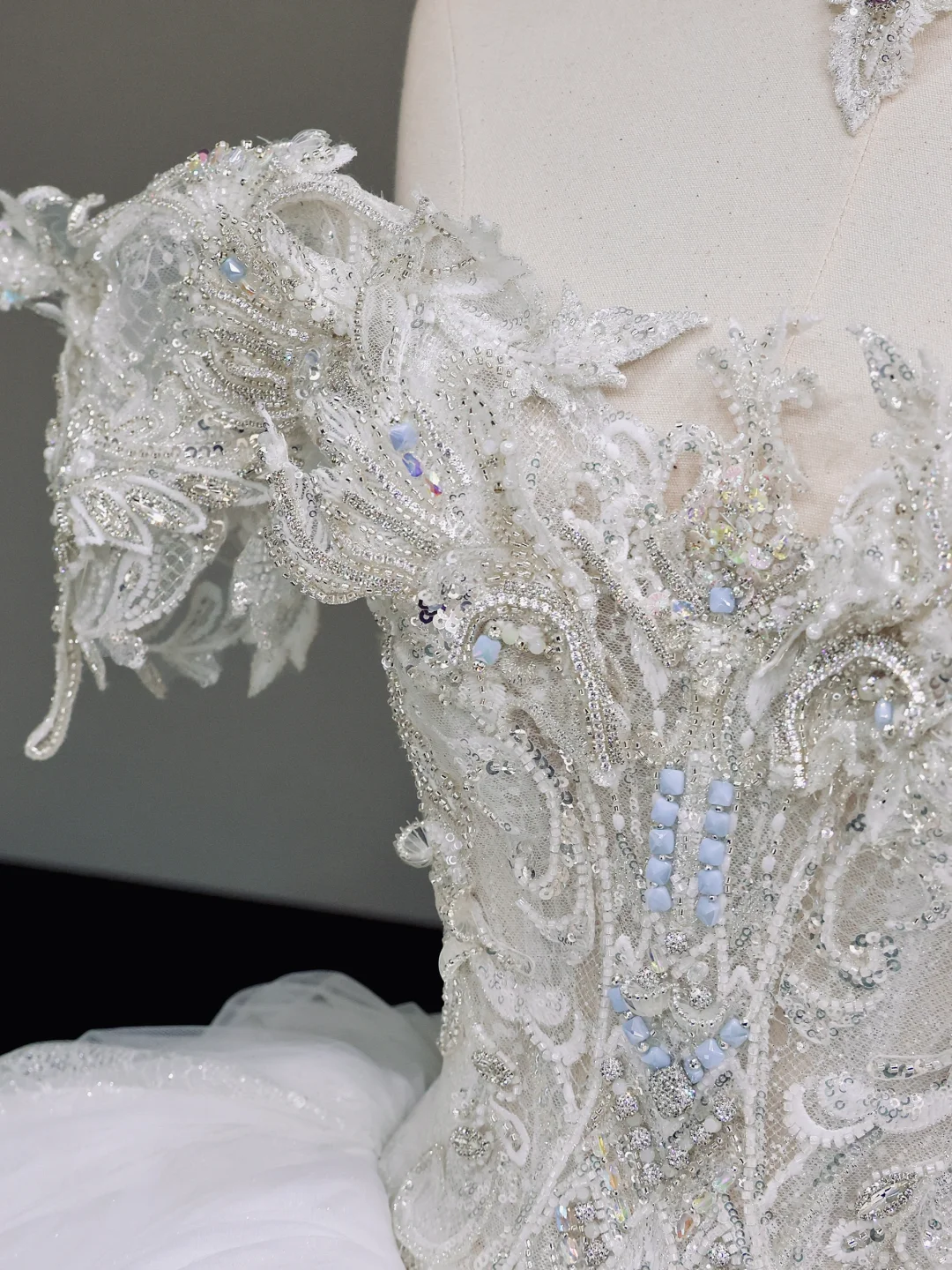 Classy Elegant Ball Gown Off The Shoulder Sequin White Short Sleeves Wedding Dress Brides Dress DP832