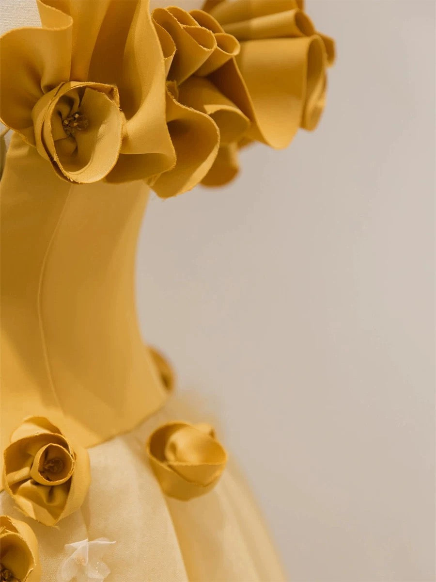 Classy Elegant Ball Gown Strapless Yellow Sleeveless Tulle Long Prom Dresses H2893