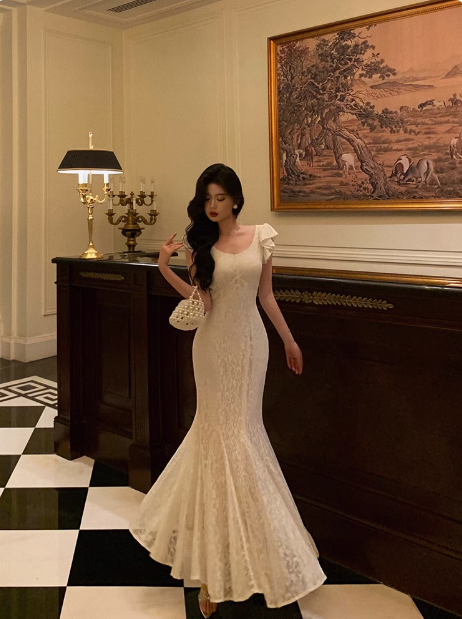 Classy Mermaid Lace White Long 18th Birthday Dress Party Gown 21st Birthday Outfits Birthday Dress Ideas For Women DP600