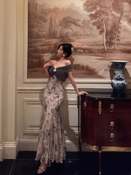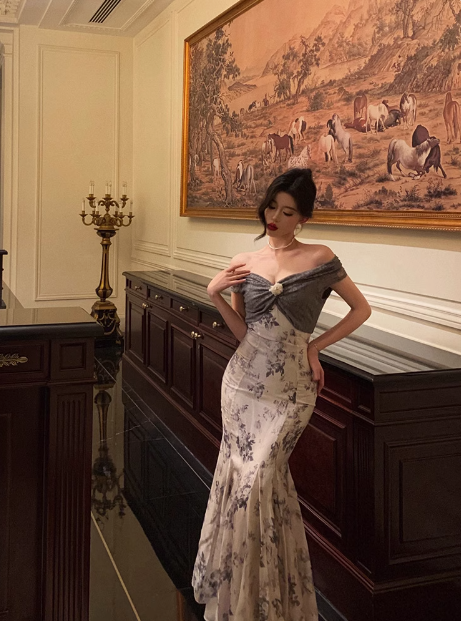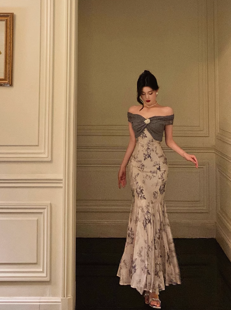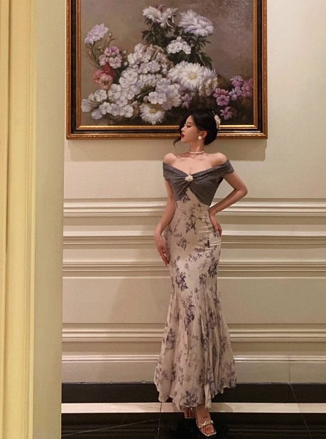Classy Mermaid Off The Shoulder Floral Long 18th Birthday Dress Party Gown 21st Birthday Outfits Birthday Dress Ideas For Women DP1304