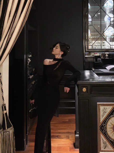 Classy Mermaid One Shoulder Black Long Sleeves 18th Birthday Dress Party Gown 21st Birthday Outfits Birthday Dress Ideas For Women DP571