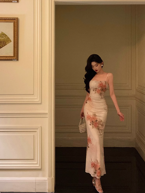 Classy Mermaid Spaghetti Straps Floral Chiffon Long 18th Birthday Dress Party Gown 21st Birthday Outfits Birthday Dress Ideas For Women DP1309